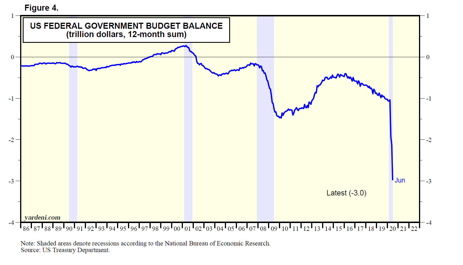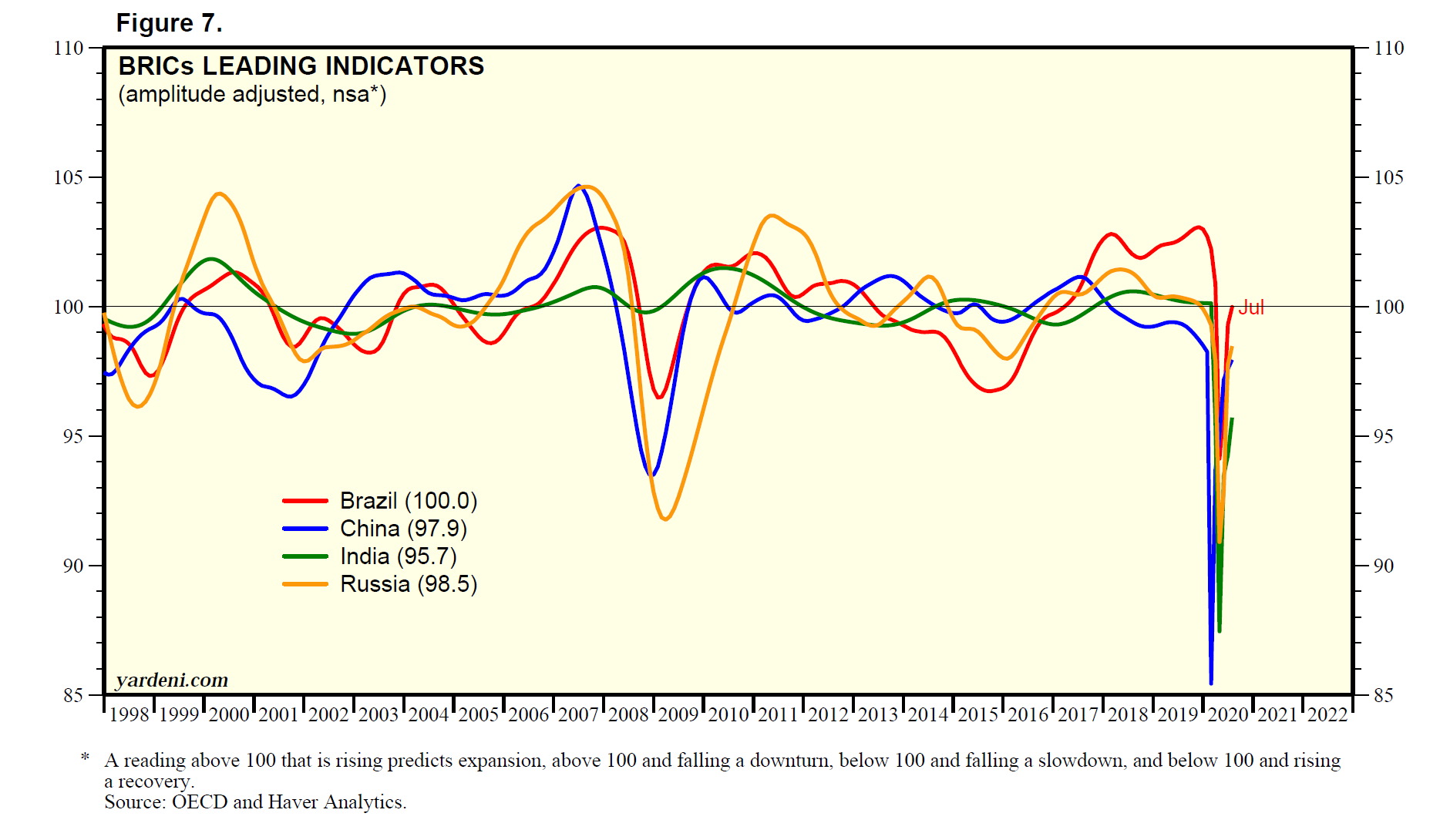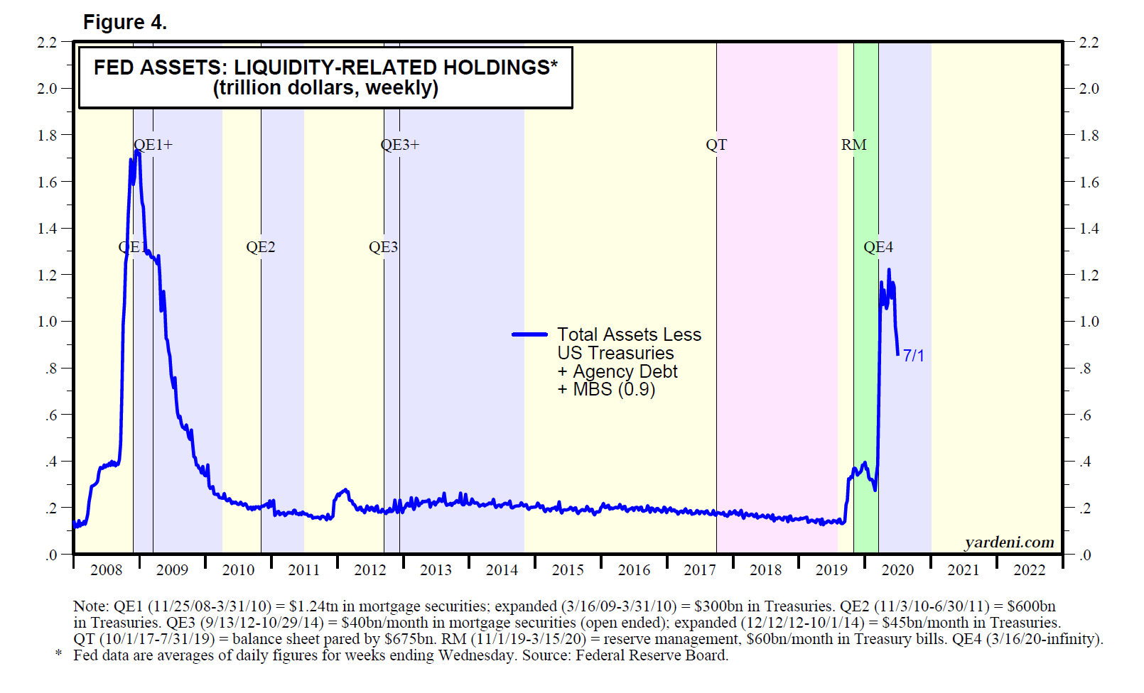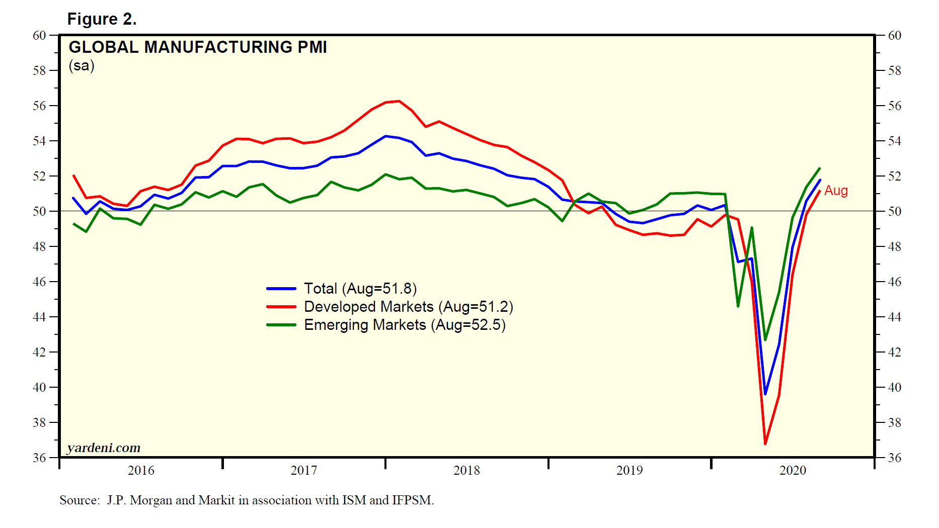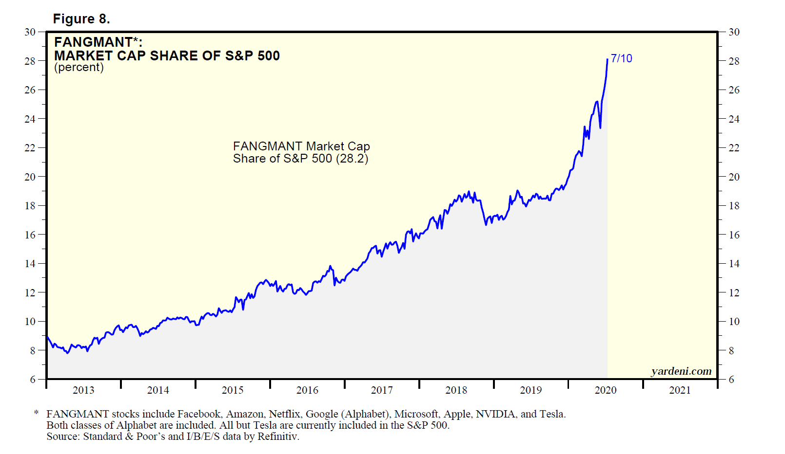 We will become more concerned about the latter scenarios if the market continues to go straight up and investors “party like it’s 1999” all over again, to quote the singer Prince. Following the LTCM crisis, the S&P 500 and the Nasdaq soared 59.6% and 236.7% from the end of August 1998 through March 2000. So far, since the pandemic low on March 23, they are up 63.7% and 80.4% through Friday’s close (Fig. 3).