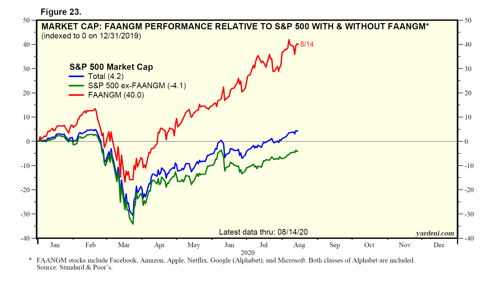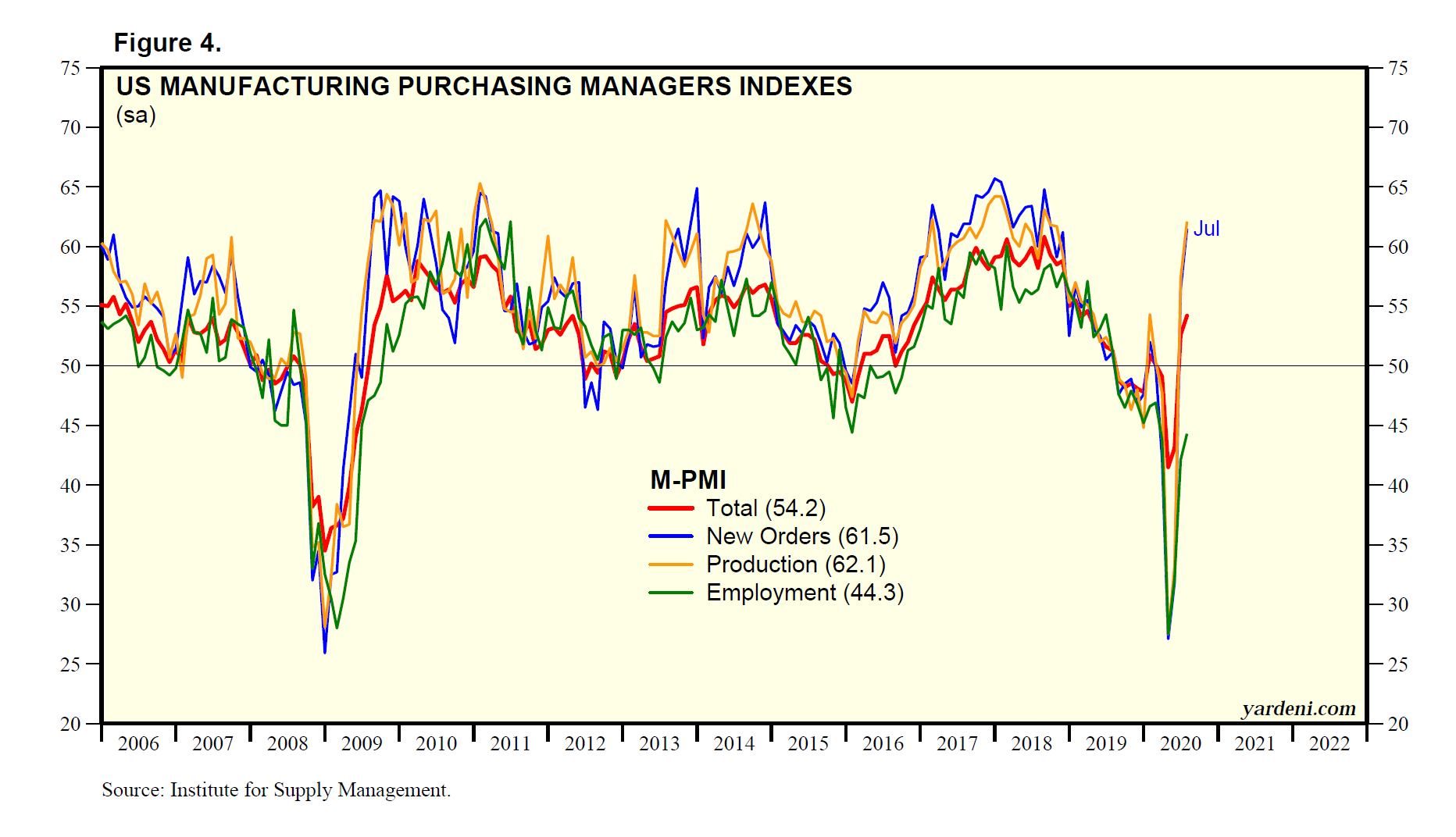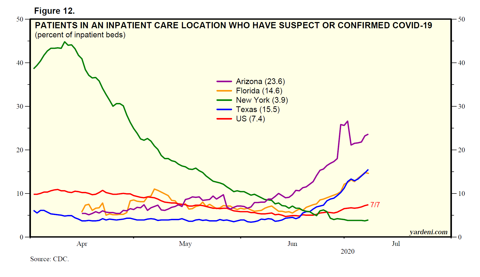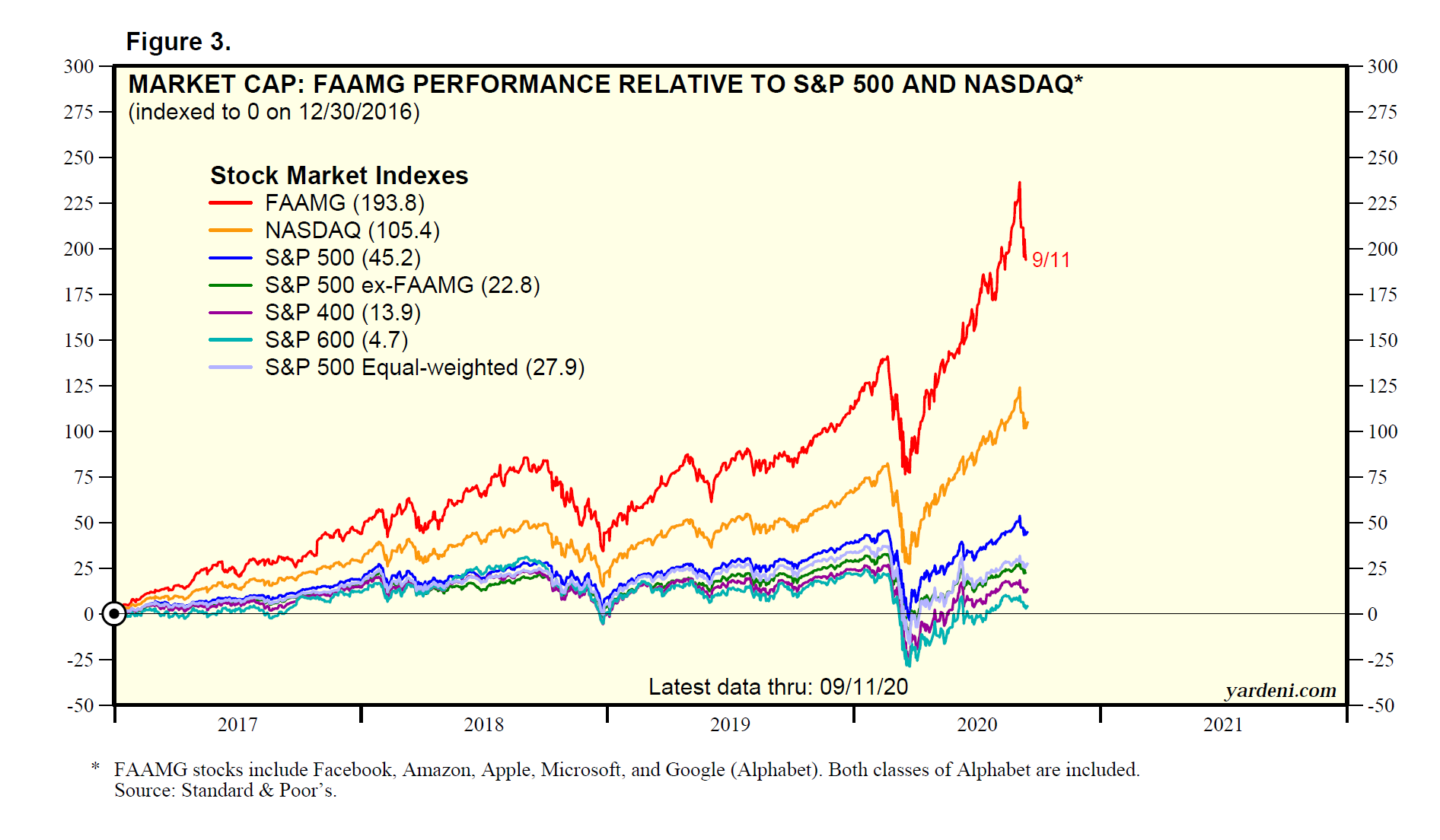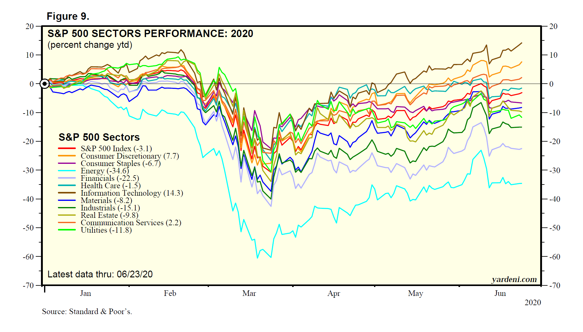 We will become more concerned about the latter scenarios if the market continues to go straight up and investors “party like it’s 1999” all over again, to quote the singer Prince. Following the LTCM crisis, the S&P 500 and the Nasdaq soared 59.6% and 236.7% from the end of August 1998 through March 2000. So far, since the pandemic low on March 23, they are up 63.7% and 80.4% through Friday’s close (Fig. 3).