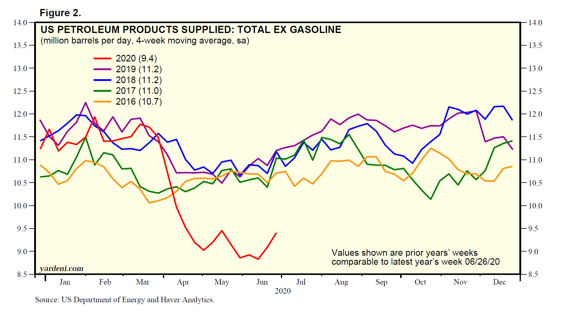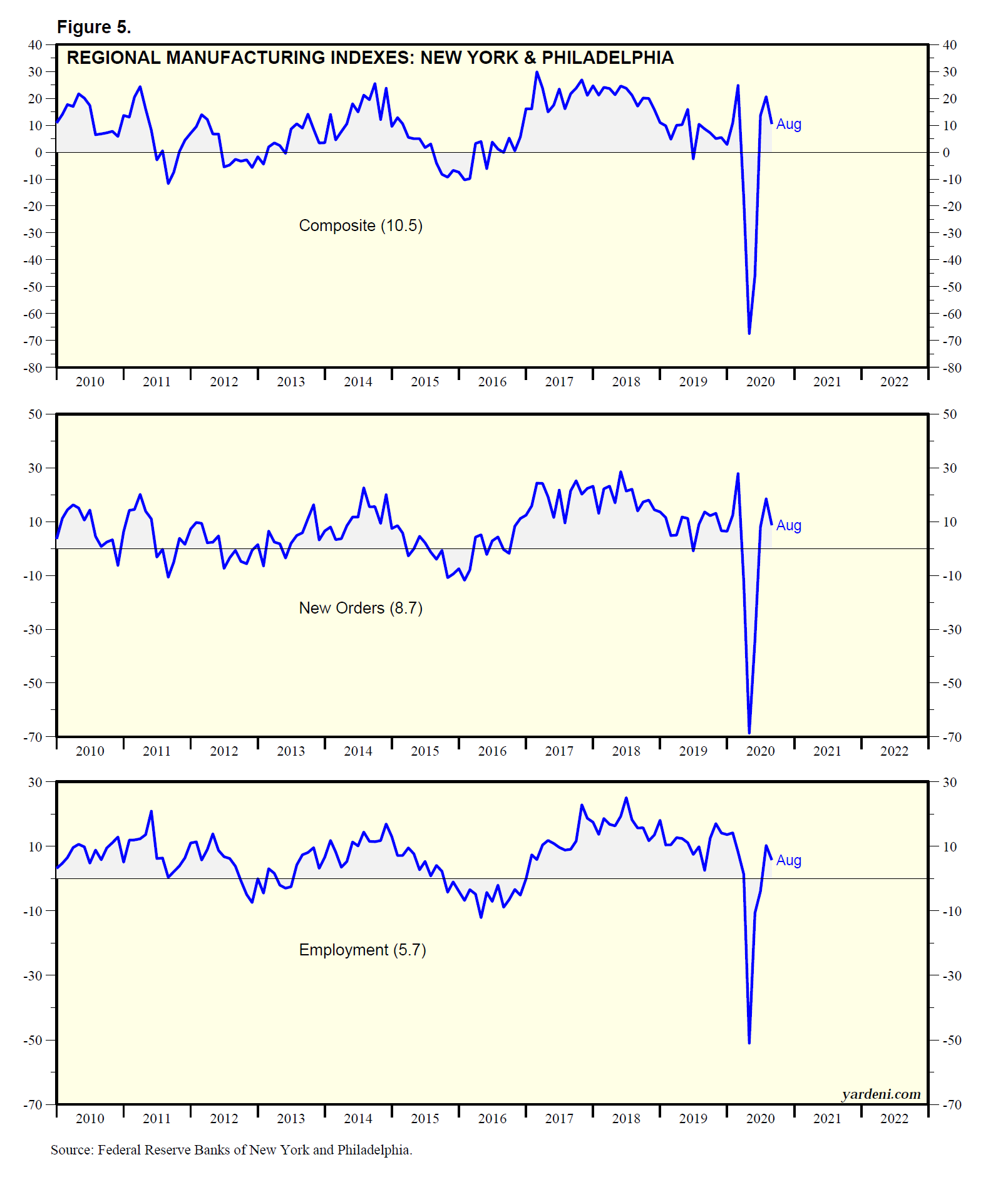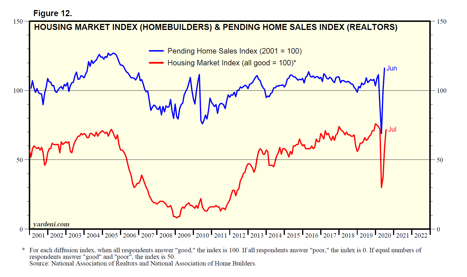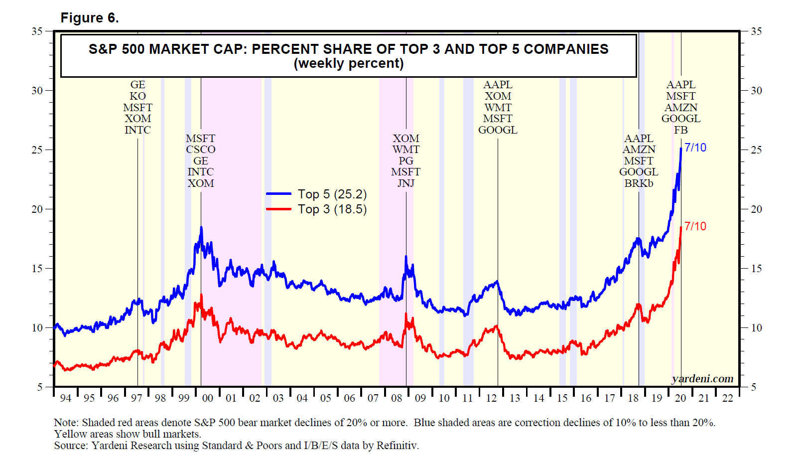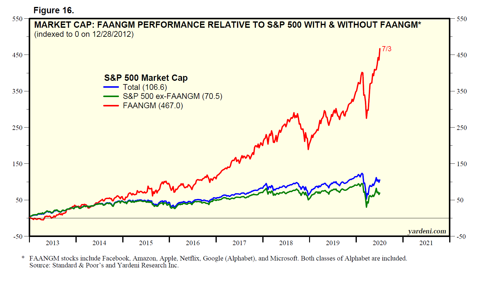We will become more concerned about the latter scenarios if the market continues to go straight up and investors “party like it’s 1999” all over again, to quote the singer Prince. Following the LTCM crisis, the S&P 500 and the Nasdaq soared 59.6% and 236.7% from the end of August 1998 through March 2000. So far, since the pandemic low on March 23, they are up 63.7% and 80.4% through Friday’s close (Fig. 3).