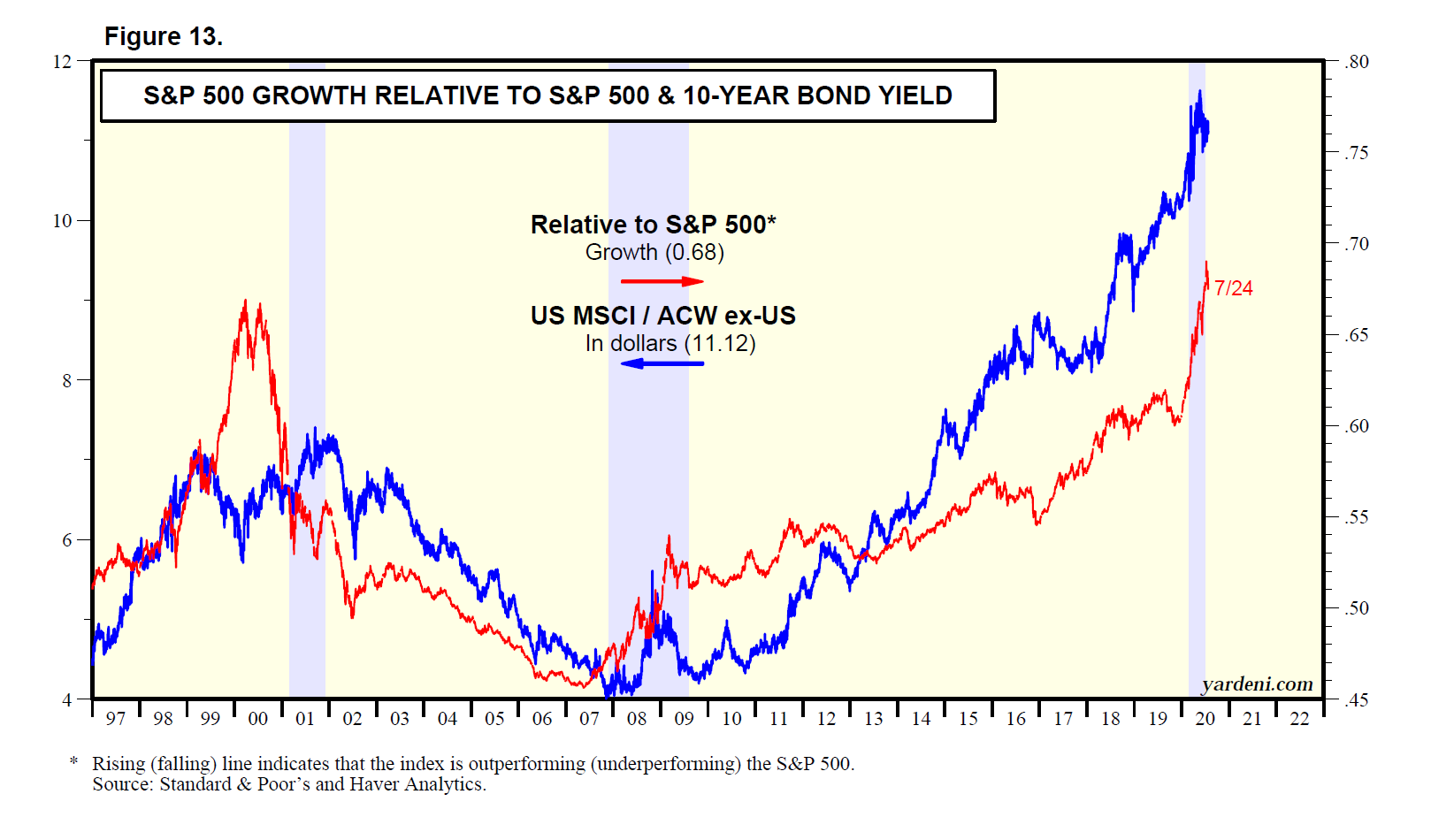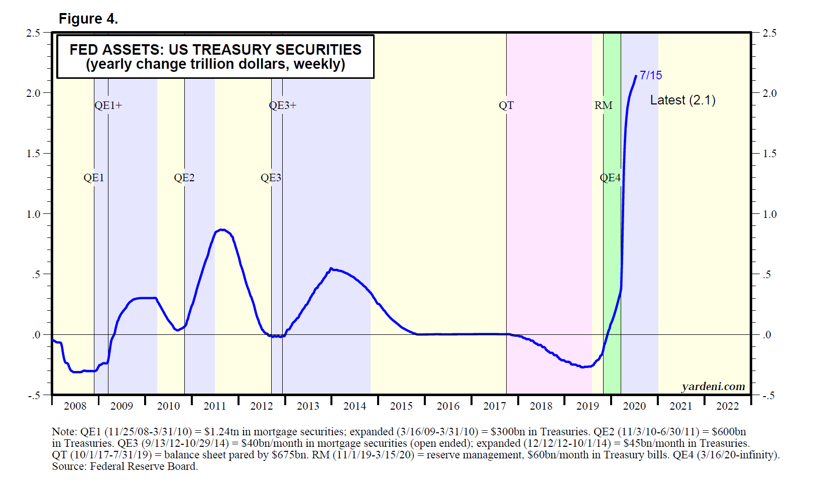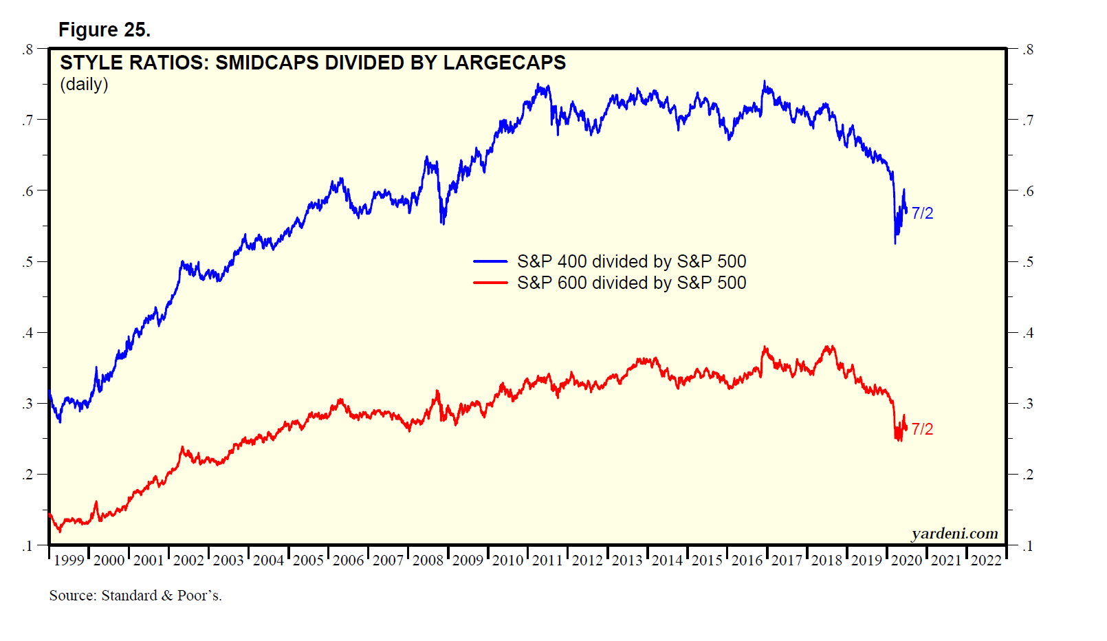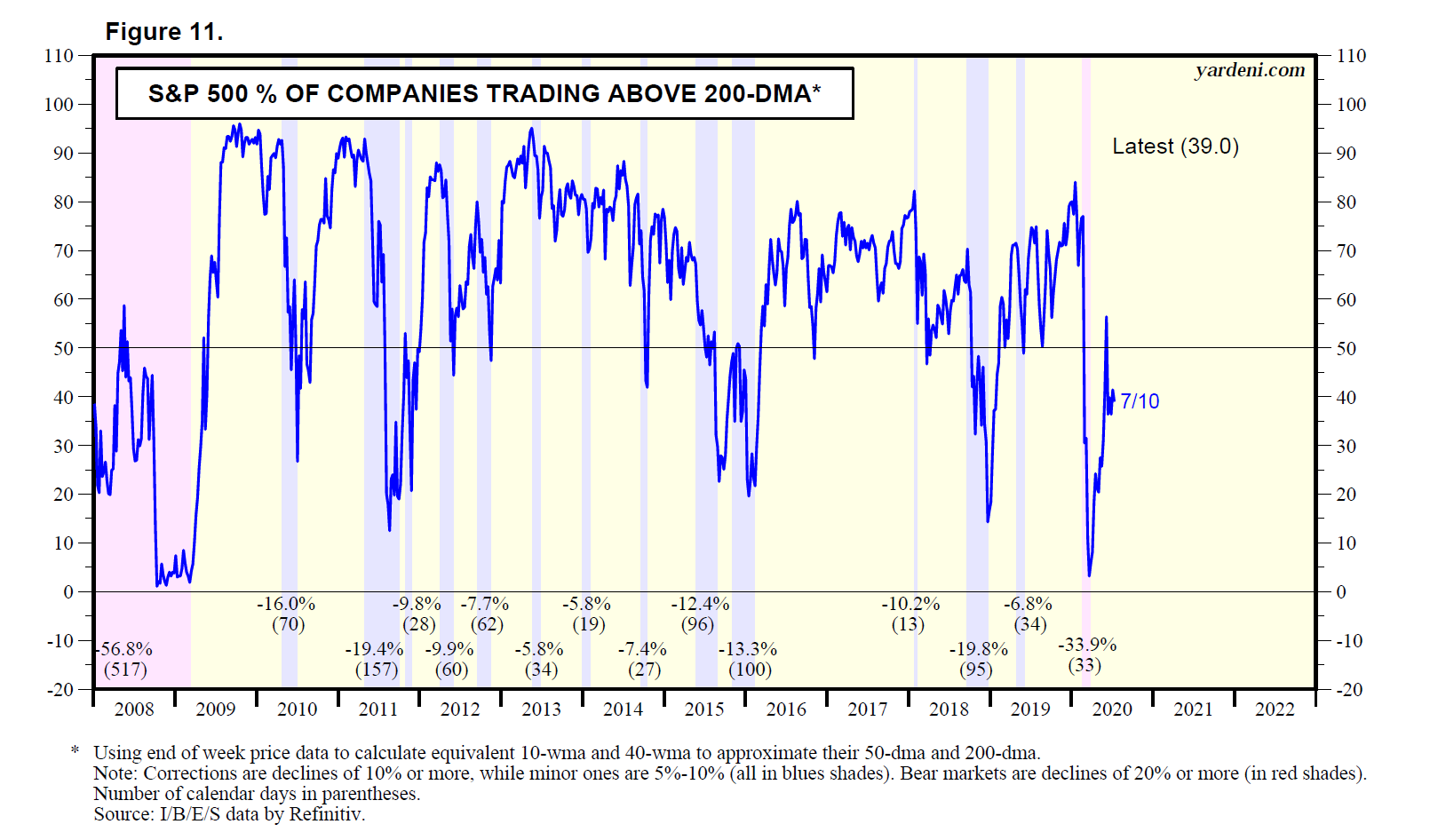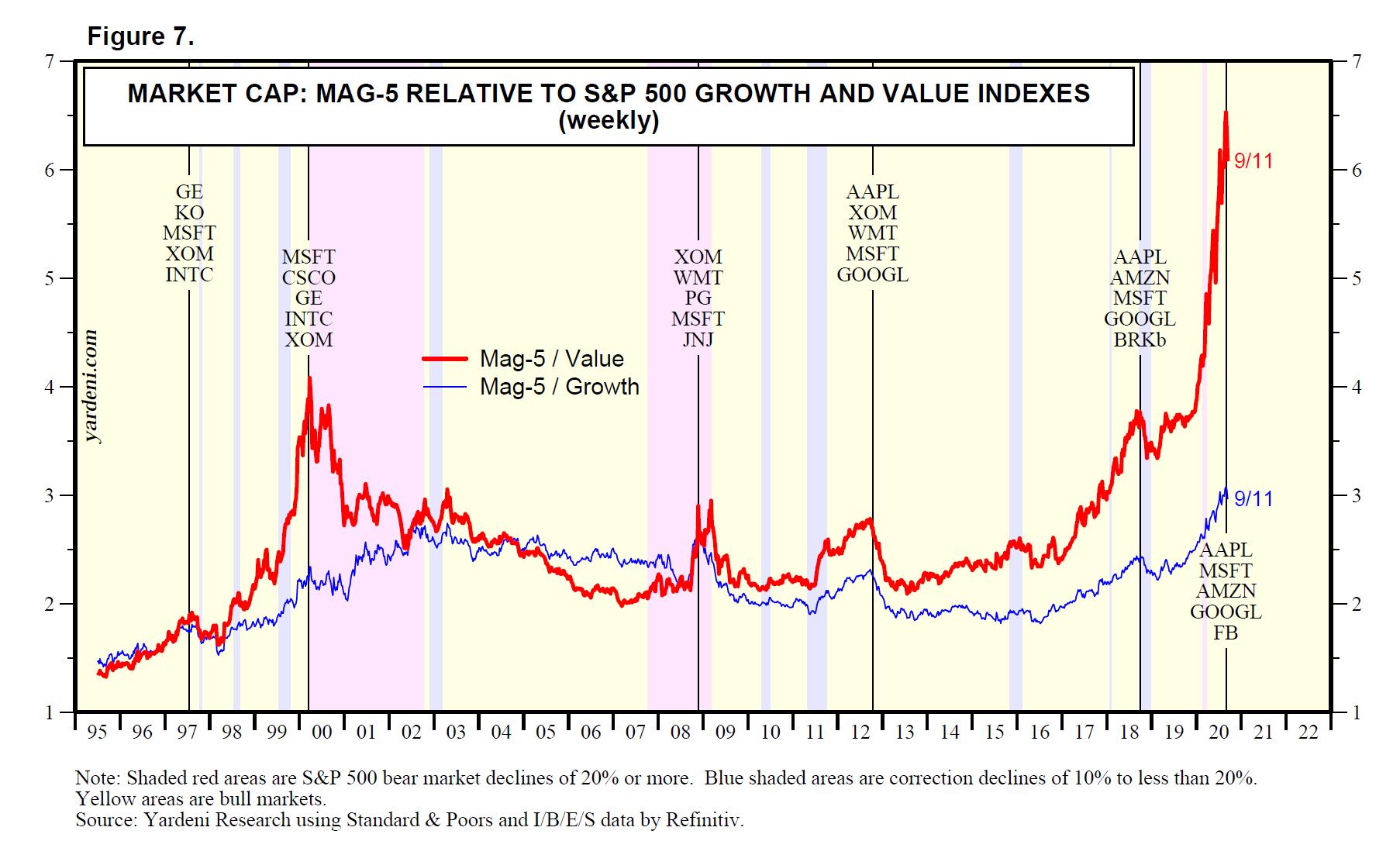We will become more concerned about the latter scenarios if the market continues to go straight up and investors “party like it’s 1999” all over again, to quote the singer Prince. Following the LTCM crisis, the S&P 500 and the Nasdaq soared 59.6% and 236.7% from the end of August 1998 through March 2000. So far, since the pandemic low on March 23, they are up 63.7% and 80.4% through Friday’s close (Fig. 3).