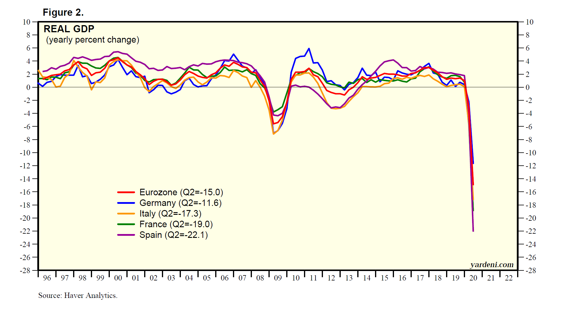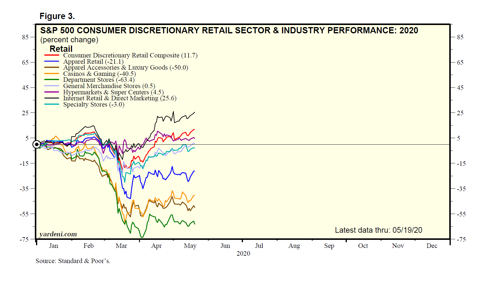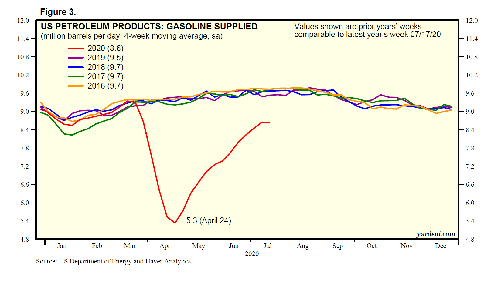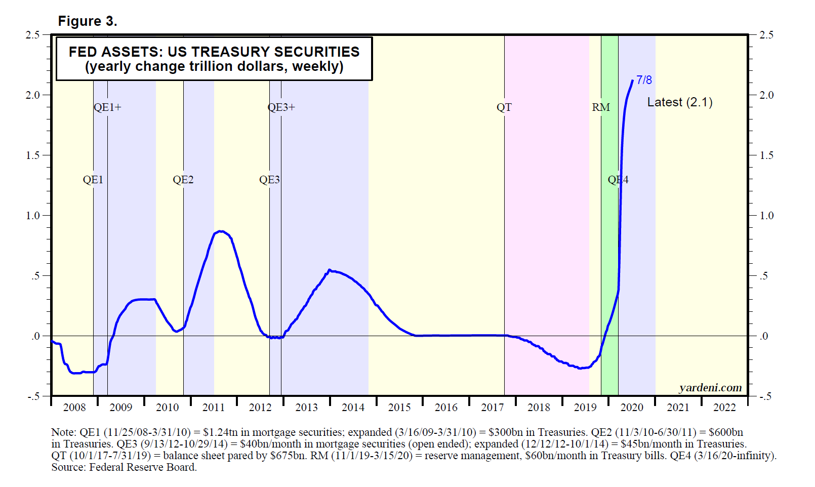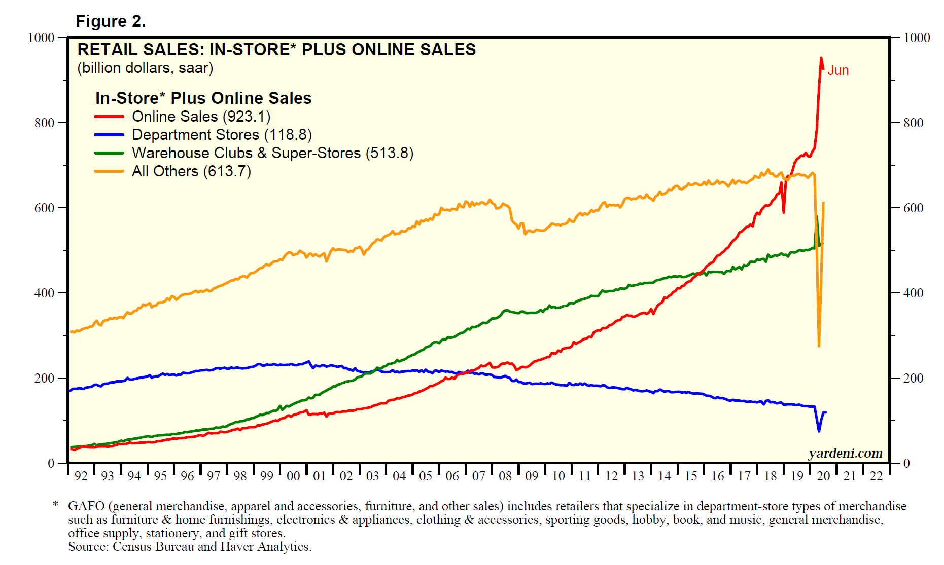 We will become more concerned about the latter scenarios if the market continues to go straight up and investors “party like it’s 1999” all over again, to quote the singer Prince. Following the LTCM crisis, the S&P 500 and the Nasdaq soared 59.6% and 236.7% from the end of August 1998 through March 2000. So far, since the pandemic low on March 23, they are up 63.7% and 80.4% through Friday’s close (Fig. 3).