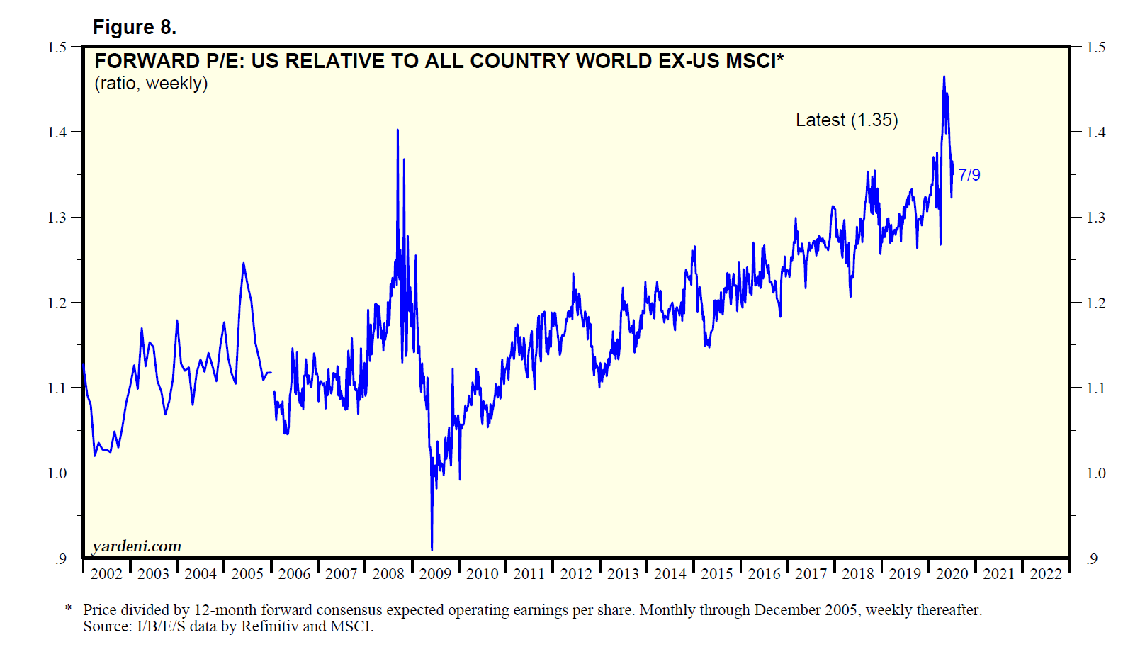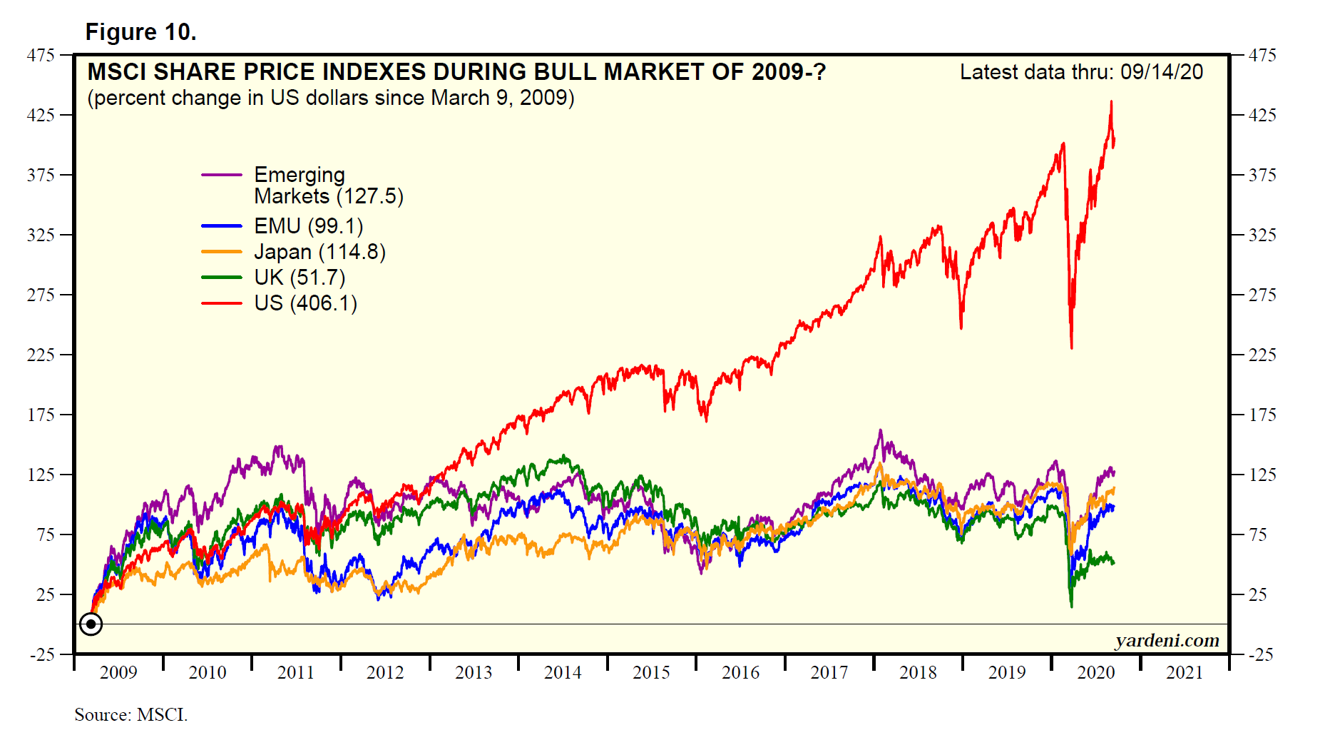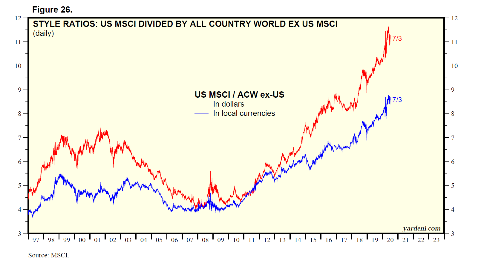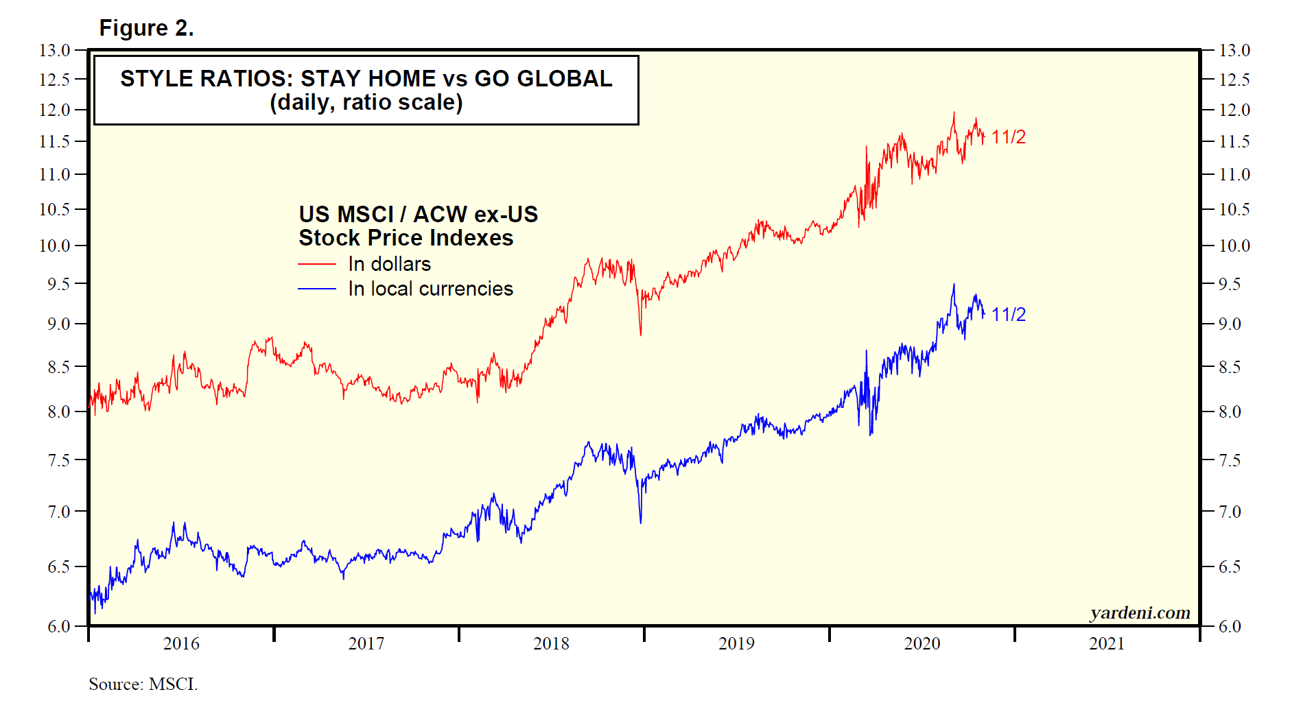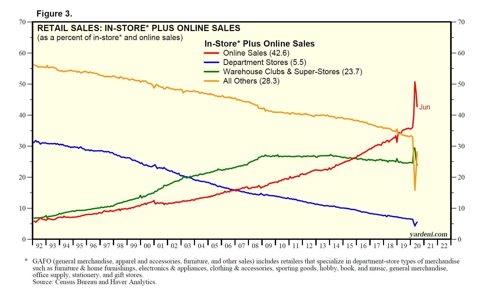 We will become more concerned about the latter scenarios if the market continues to go straight up and investors “party like it’s 1999” all over again, to quote the singer Prince. Following the LTCM crisis, the S&P 500 and the Nasdaq soared 59.6% and 236.7% from the end of August 1998 through March 2000. So far, since the pandemic low on March 23, they are up 63.7% and 80.4% through Friday’s close (Fig. 3).
