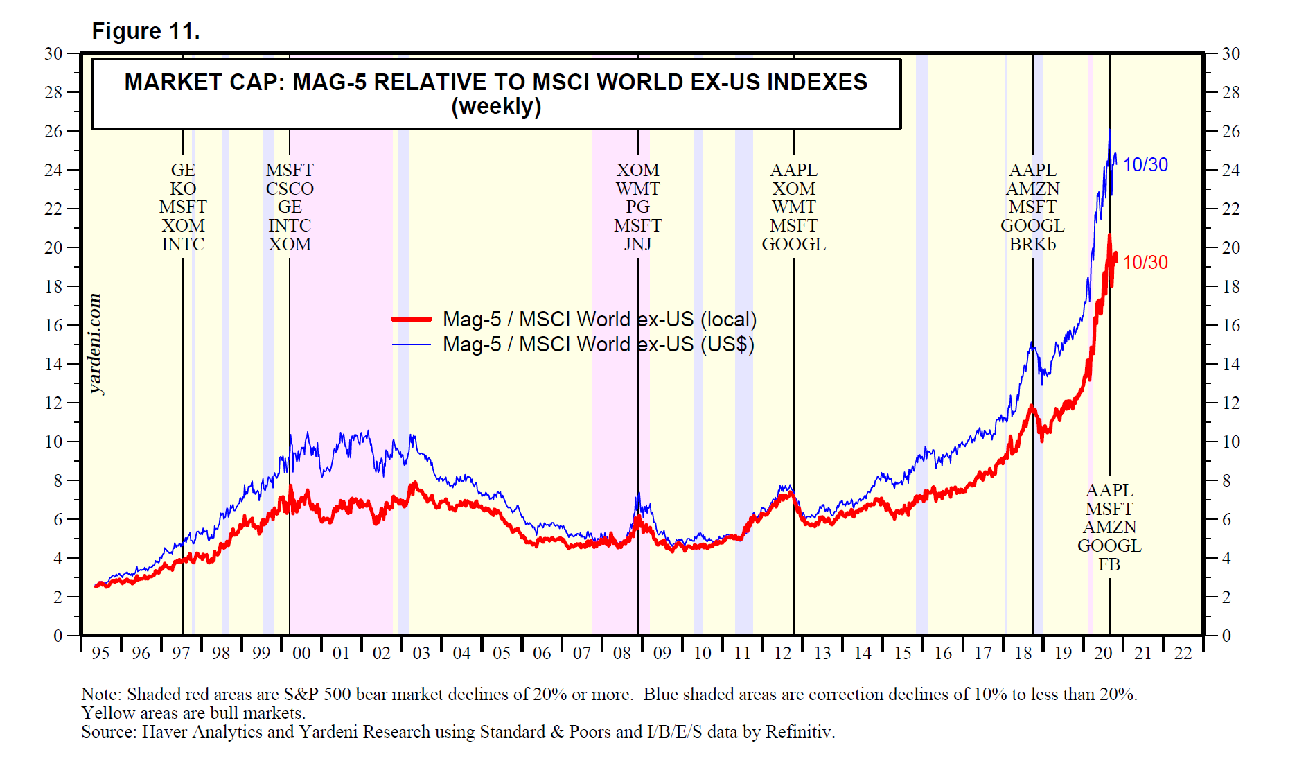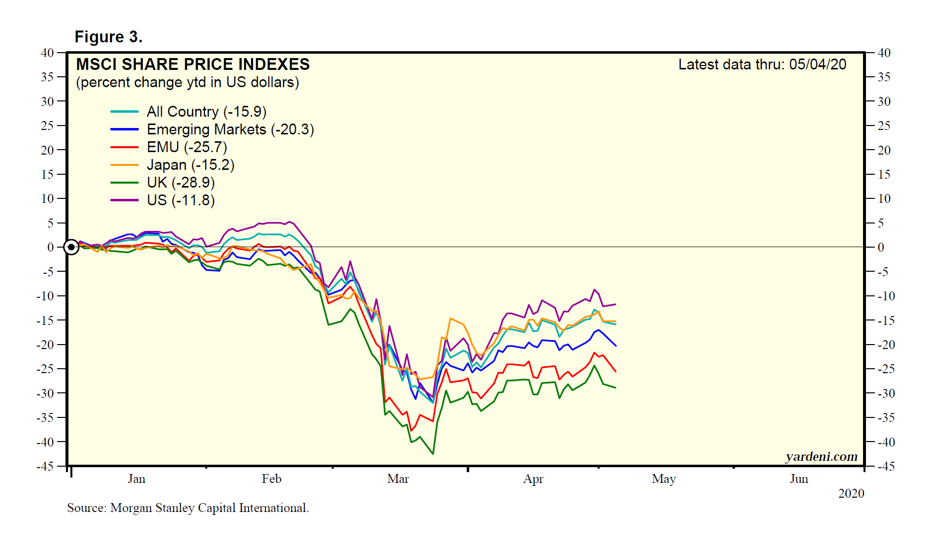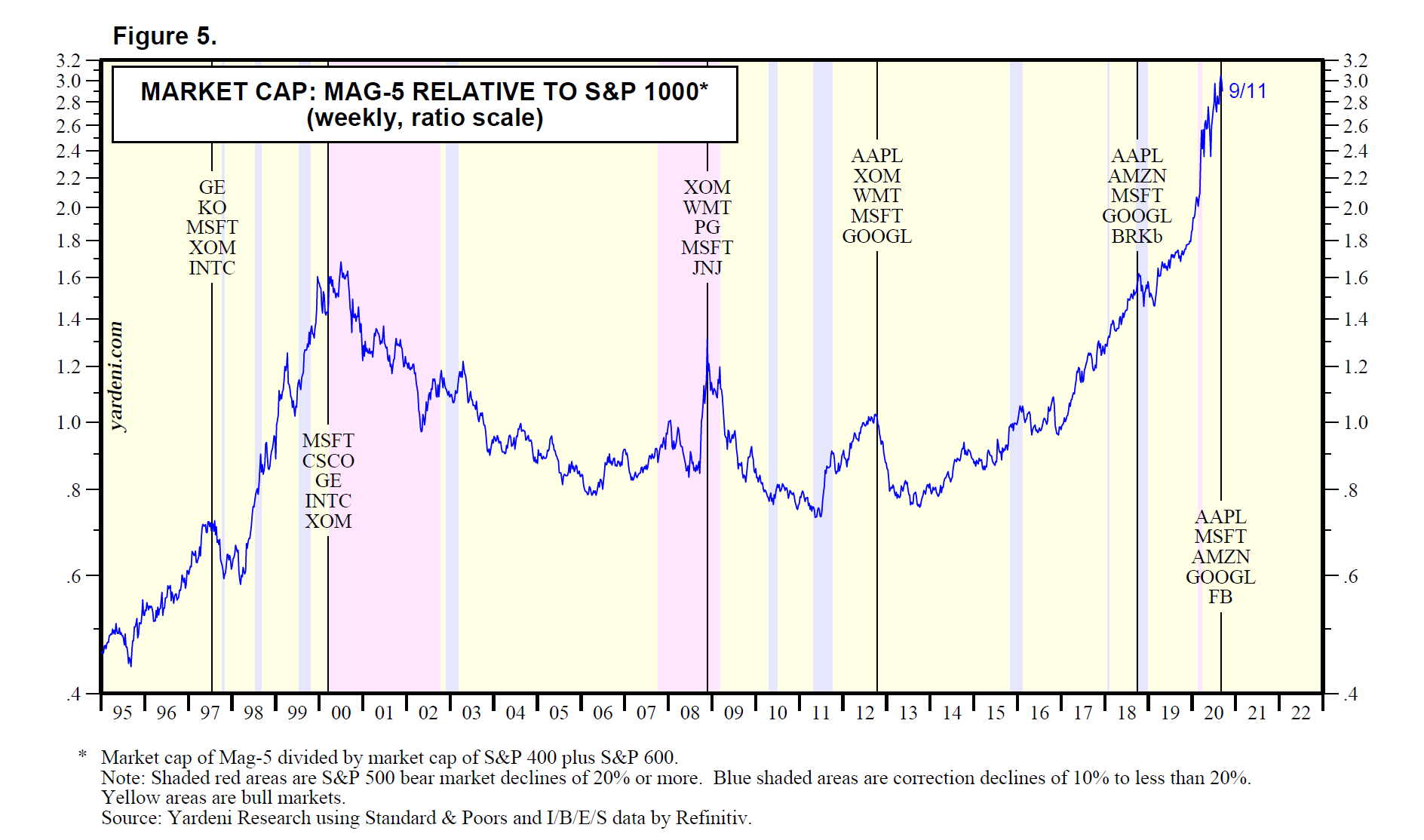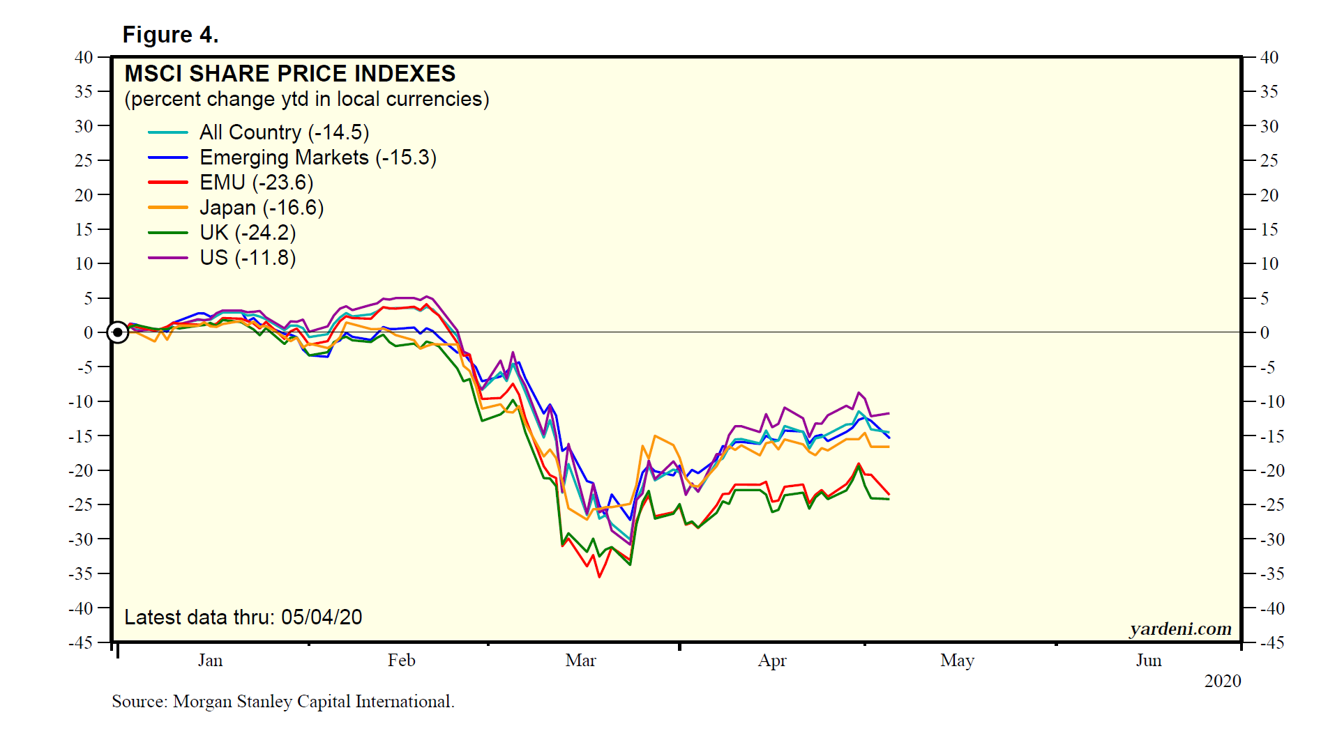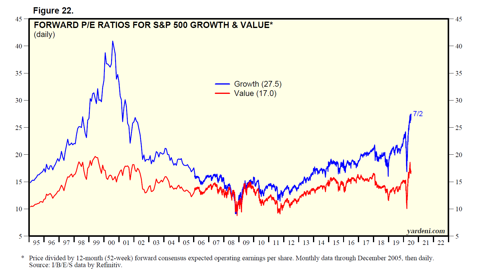 We will become more concerned about the latter scenarios if the market continues to go straight up and investors “party like it’s 1999” all over again, to quote the singer Prince. Following the LTCM crisis, the S&P 500 and the Nasdaq soared 59.6% and 236.7% from the end of August 1998 through March 2000. So far, since the pandemic low on March 23, they are up 63.7% and 80.4% through Friday’s close (Fig. 3).