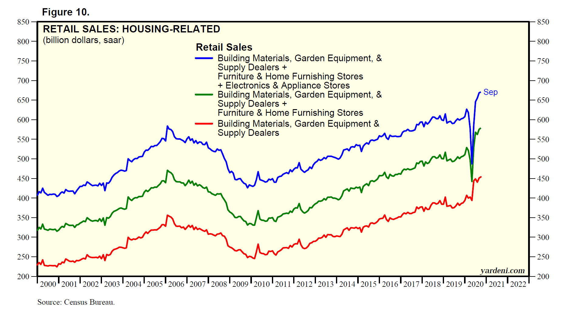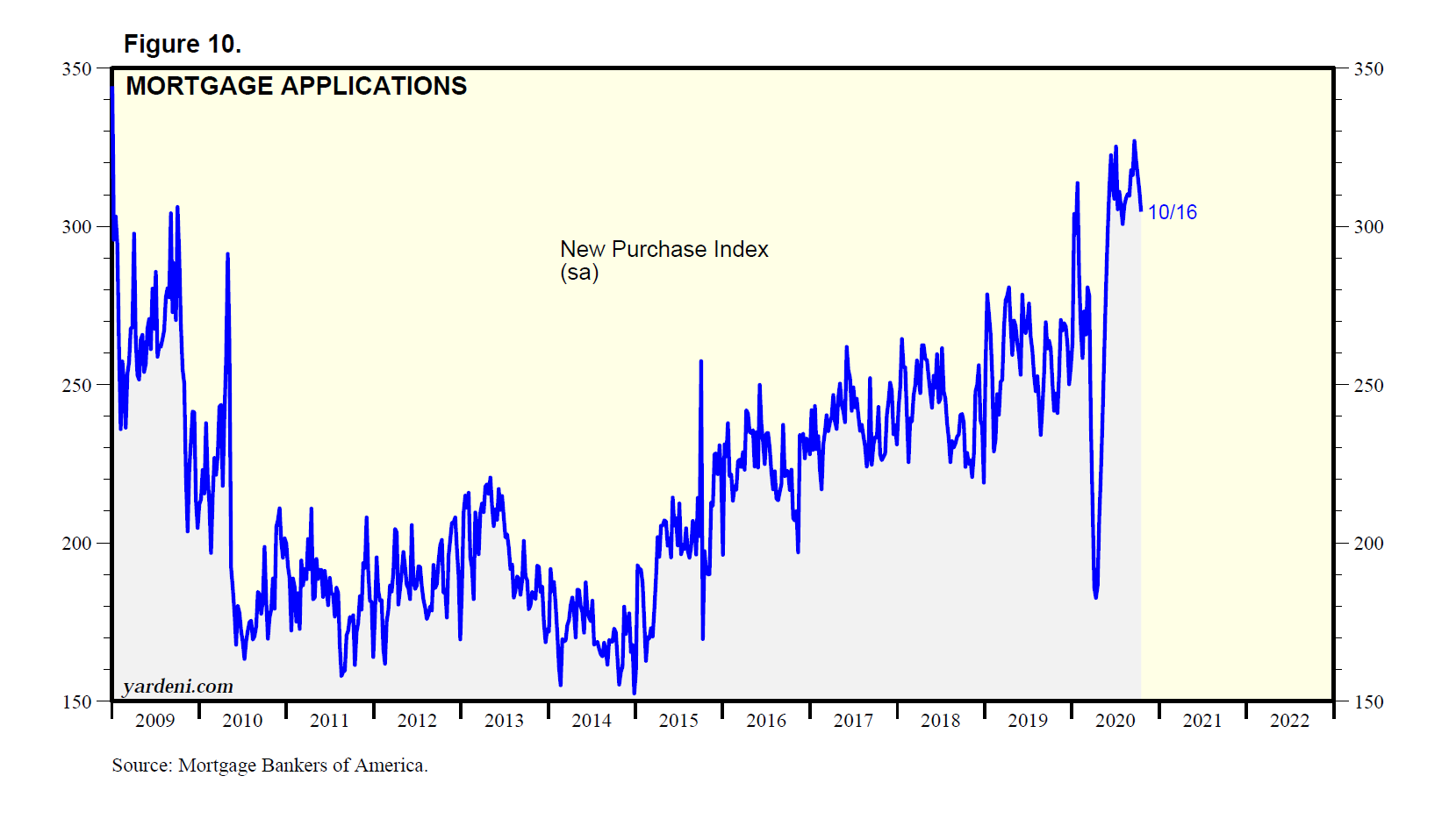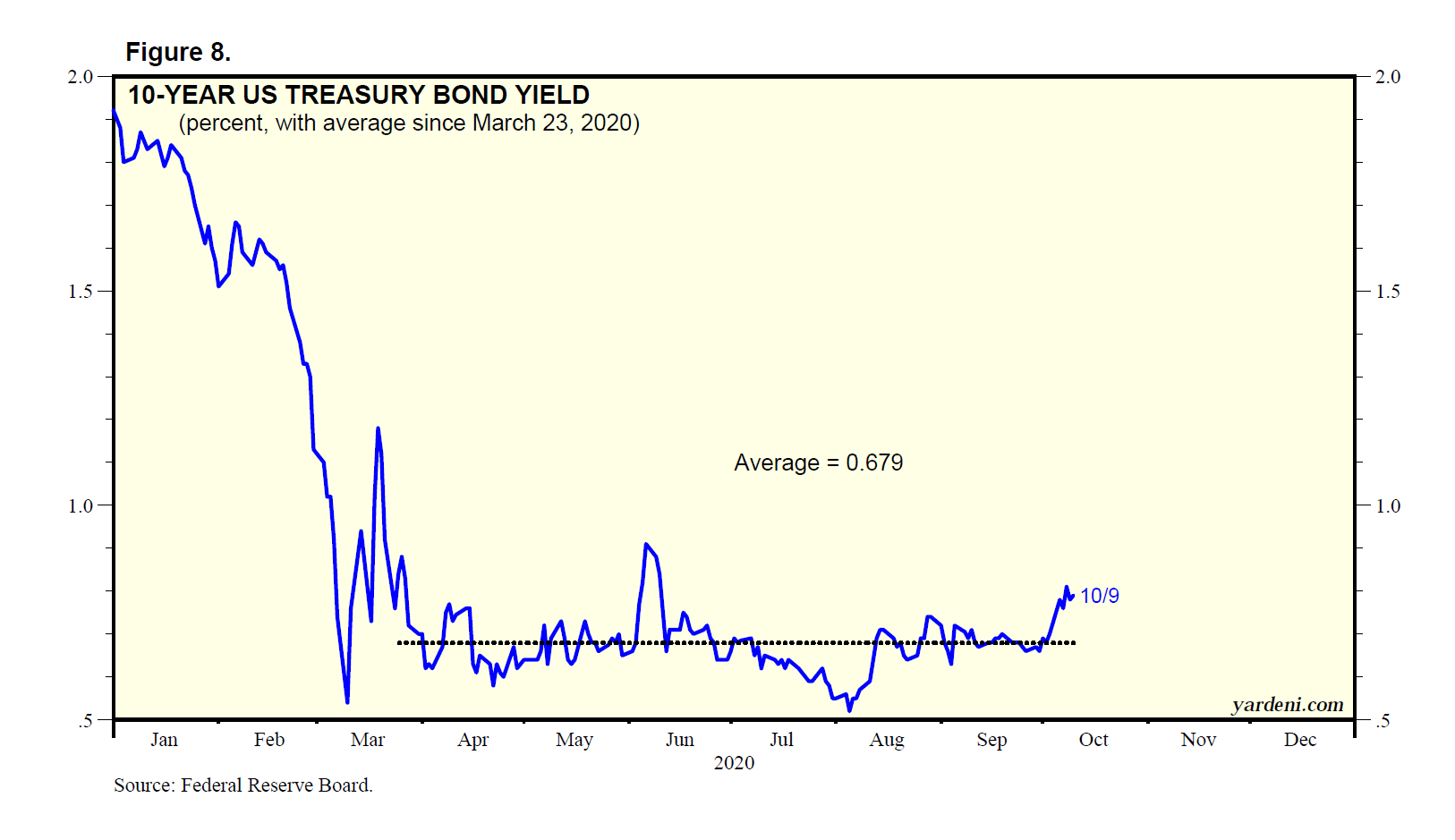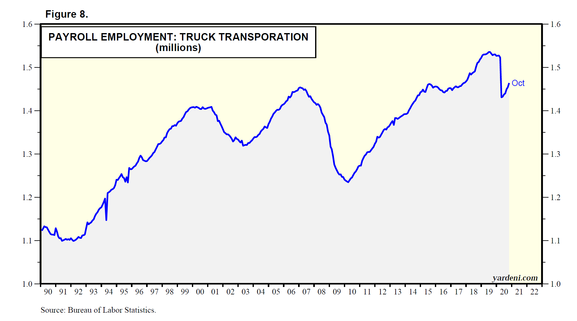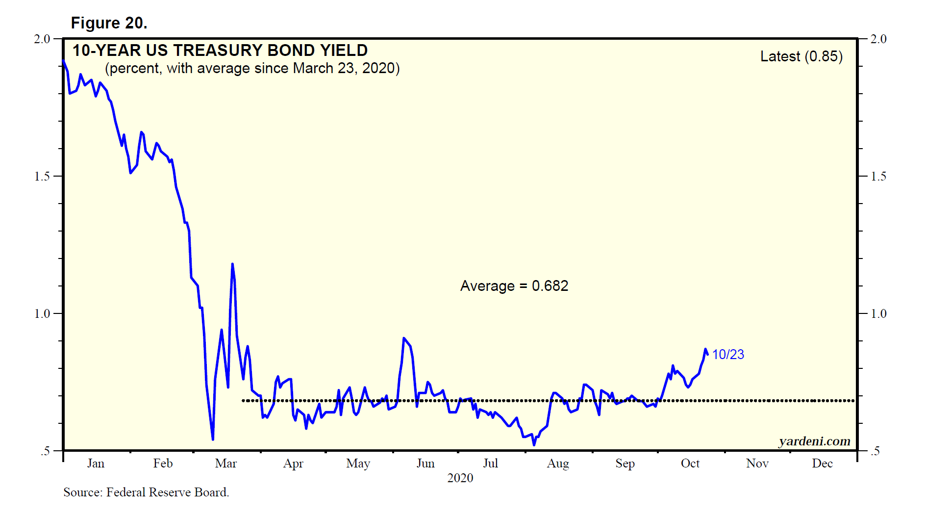 The bottom line is that during Q3 profits have recovered remarkably well from the lockdown recession during the first half of this year. On the other hand, corporate balance sheets are loaded up with more debt than ever. However, much of it has been refinanced at record-low interest rates. It’s all bullish for the economy and the stock market as long as interest rates stay low.