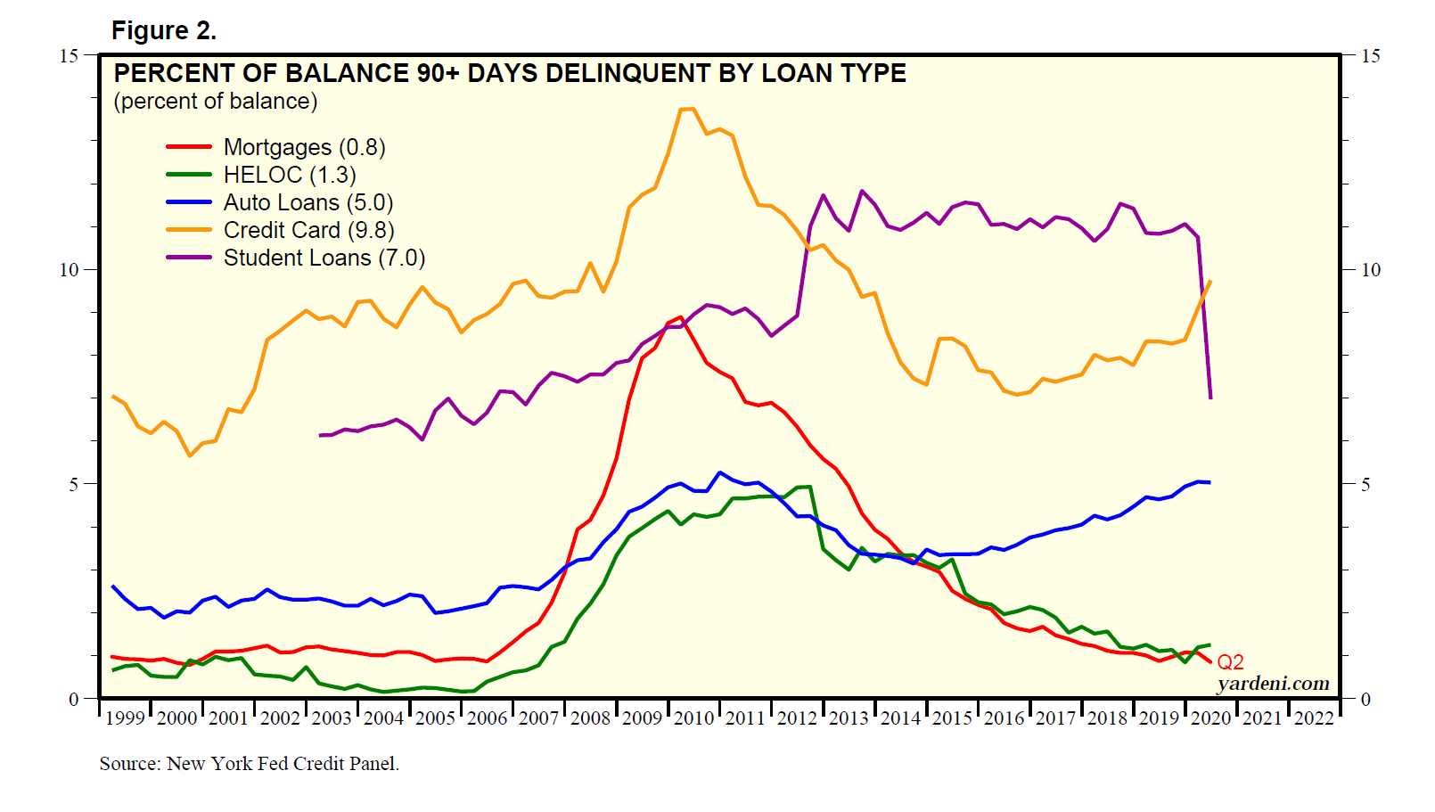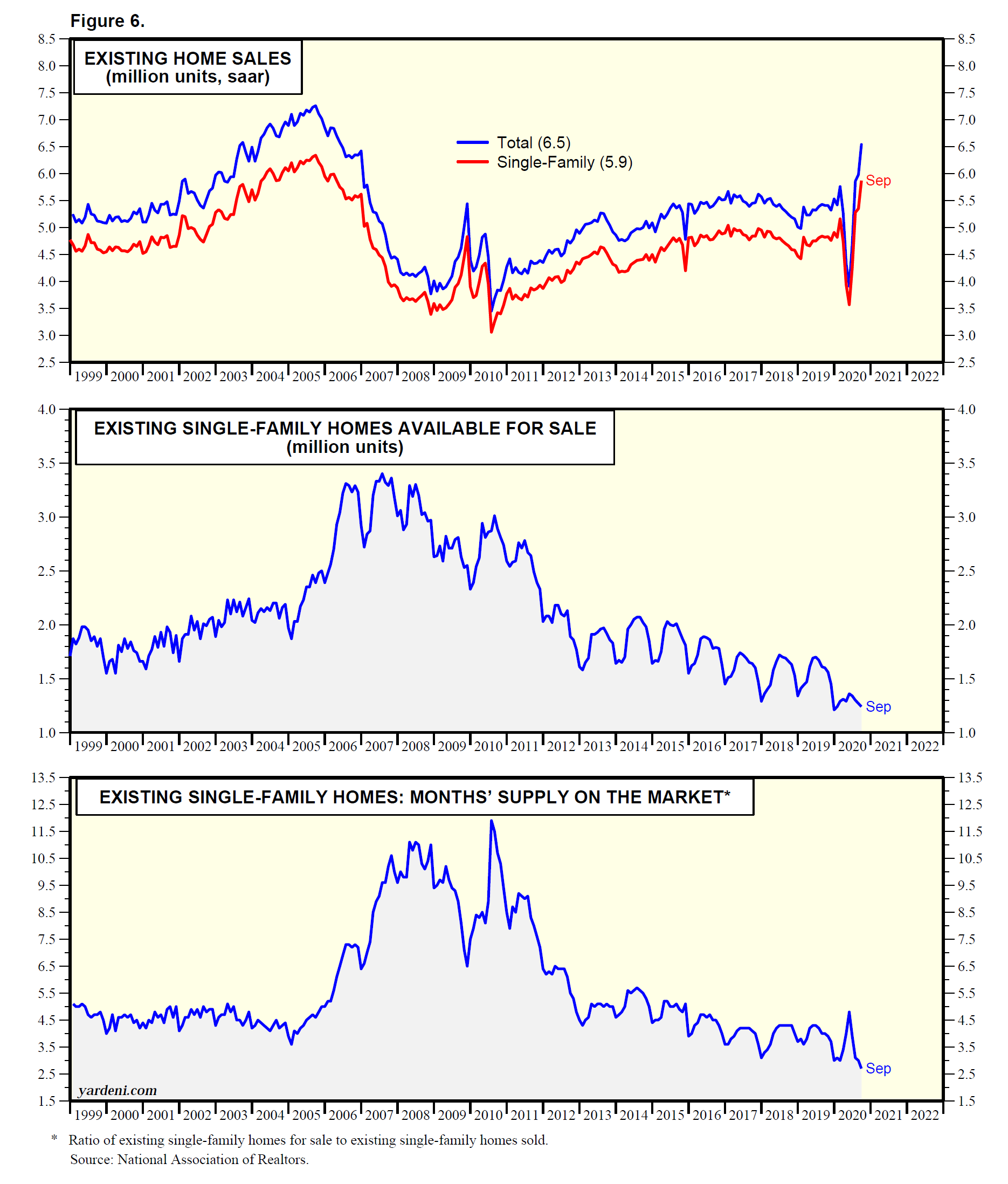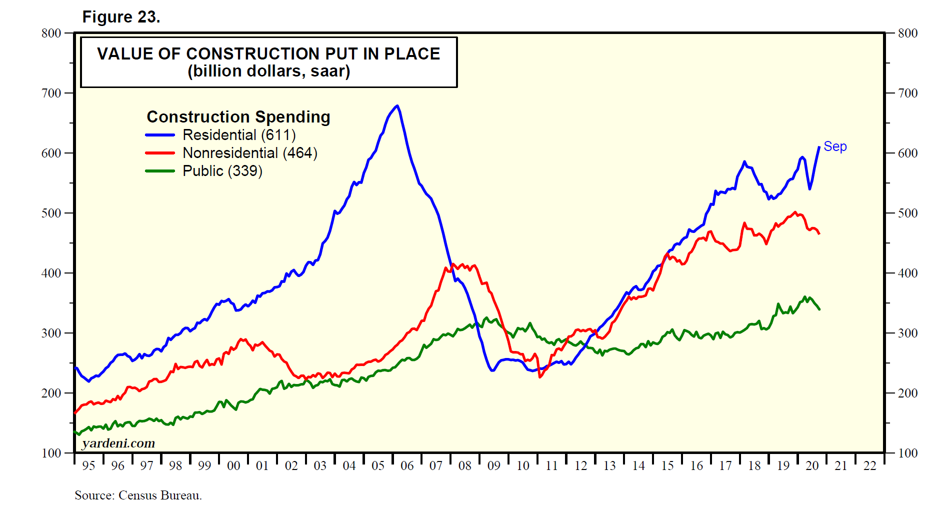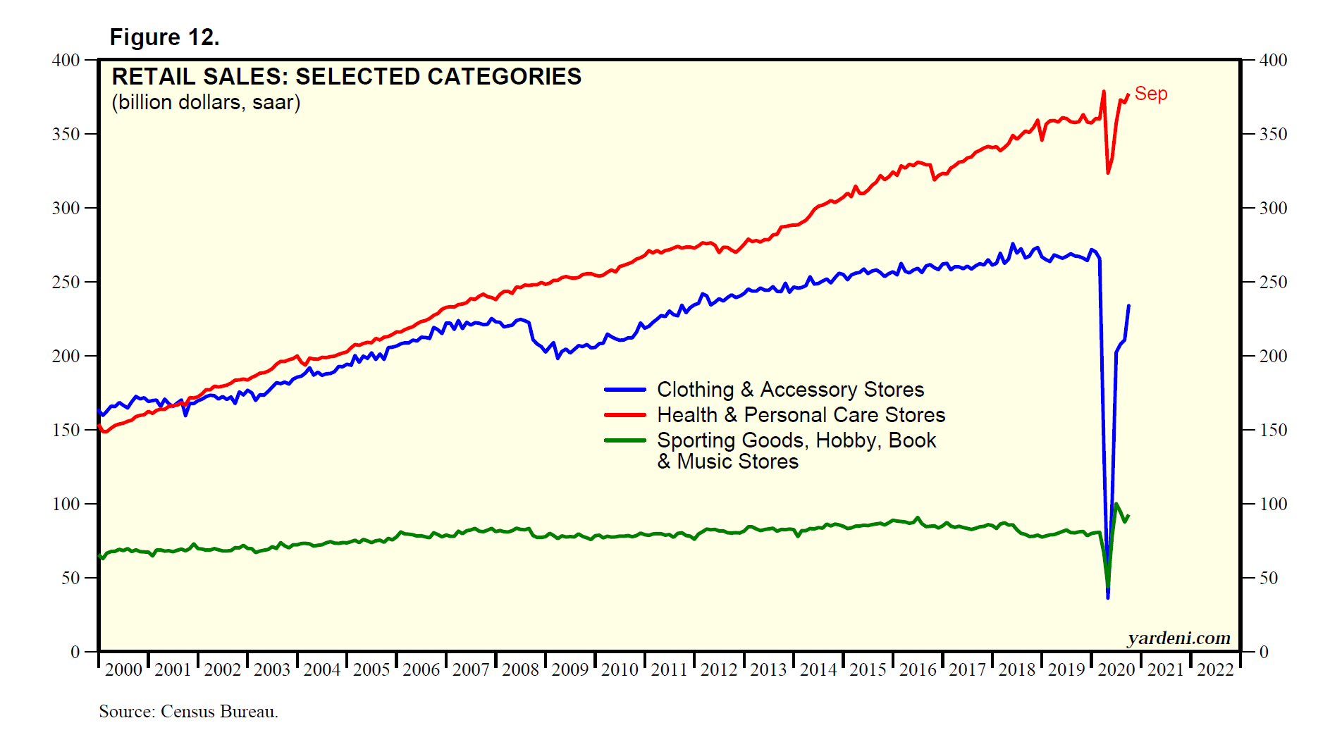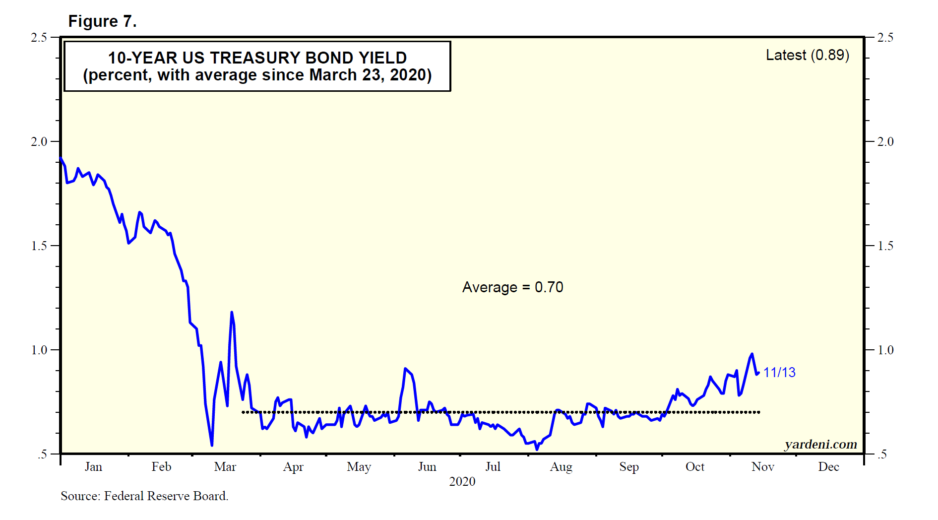 The bottom line is that during Q3 profits have recovered remarkably well from the lockdown recession during the first half of this year. On the other hand, corporate balance sheets are loaded up with more debt than ever. However, much of it has been refinanced at record-low interest rates. It’s all bullish for the economy and the stock market as long as interest rates stay low.