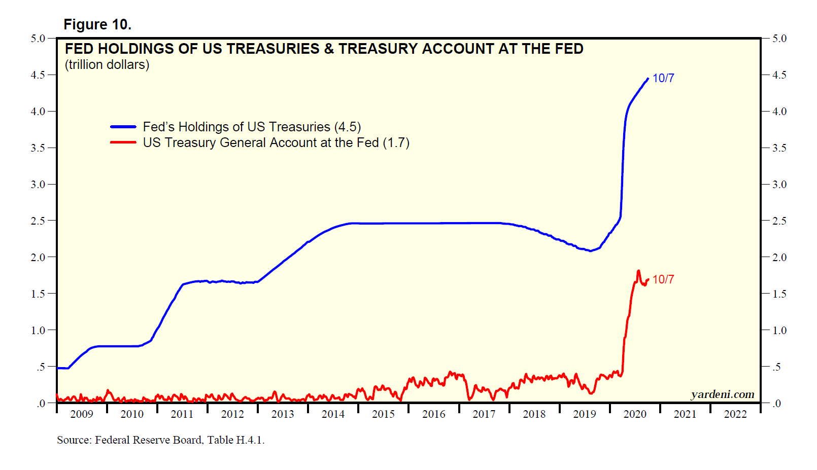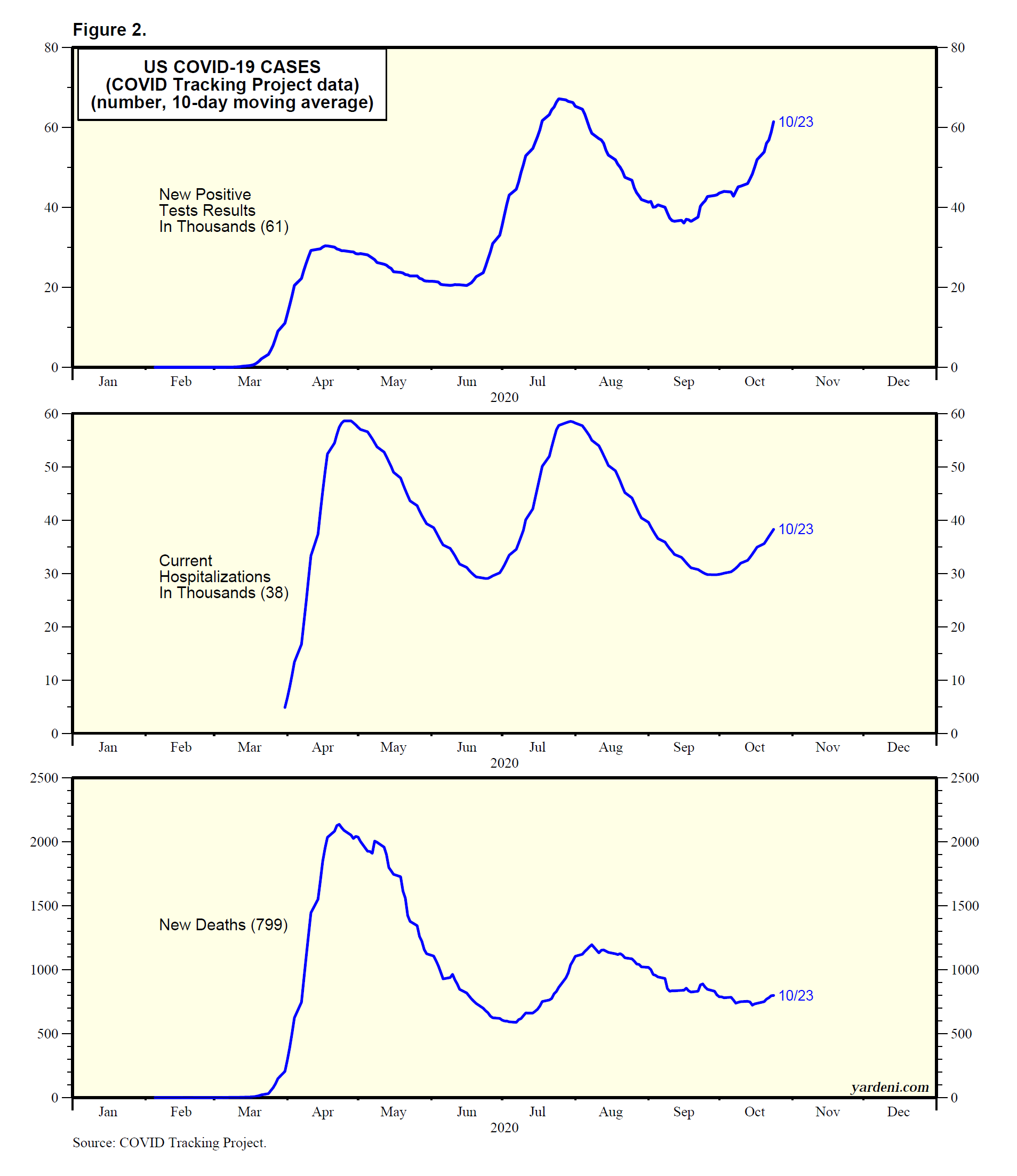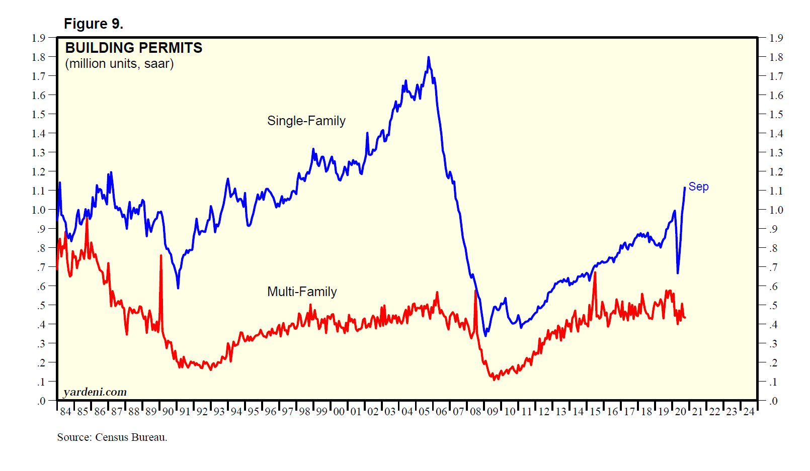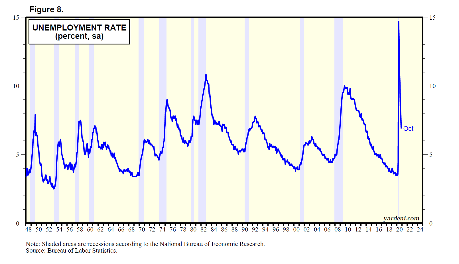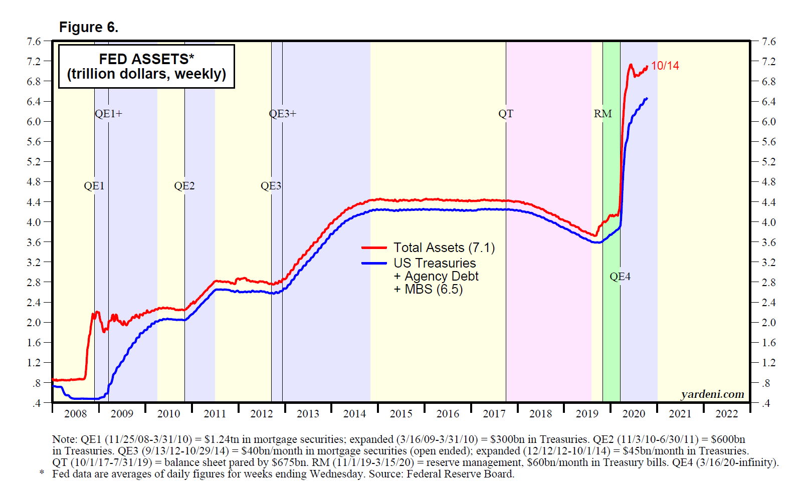 The bottom line is that during Q3 profits have recovered remarkably well from the lockdown recession during the first half of this year. On the other hand, corporate balance sheets are loaded up with more debt than ever. However, much of it has been refinanced at record-low interest rates. It’s all bullish for the economy and the stock market as long as interest rates stay low.