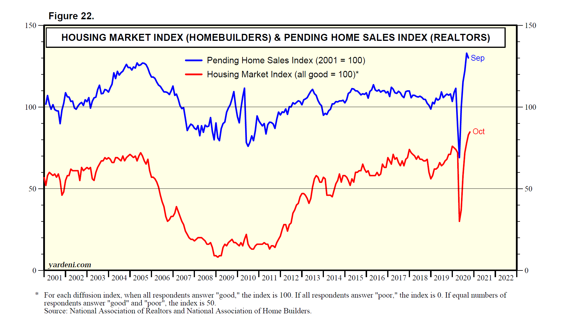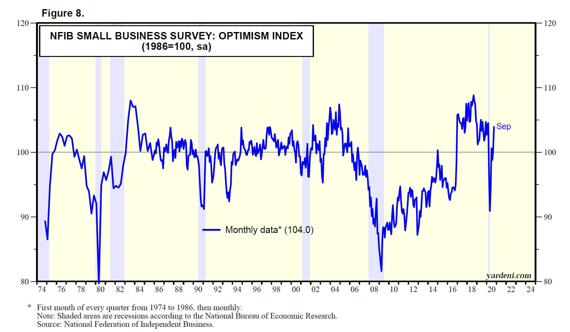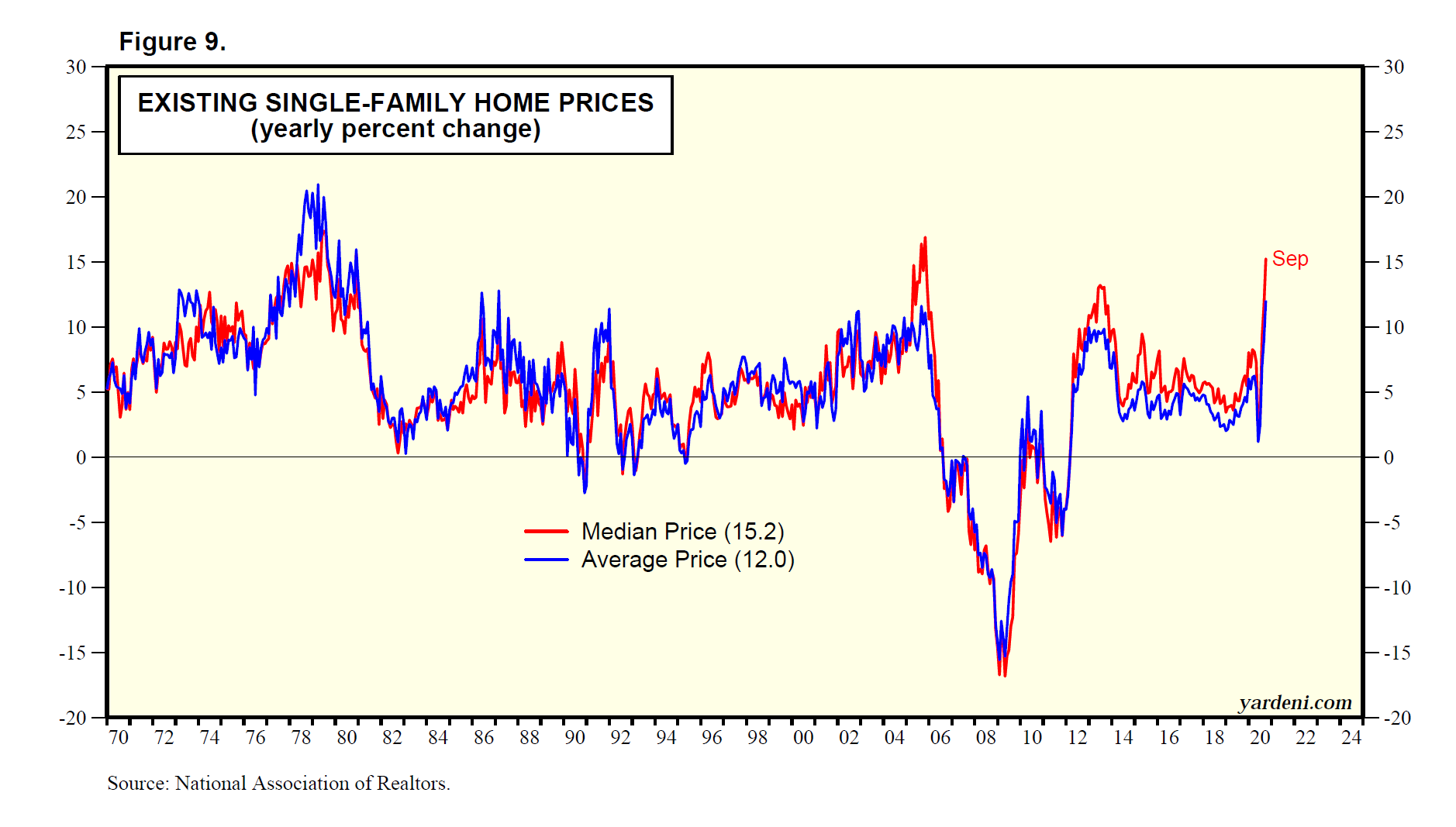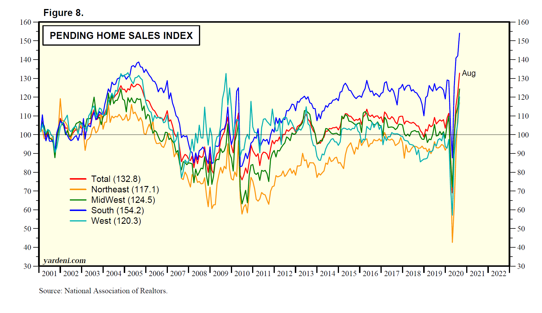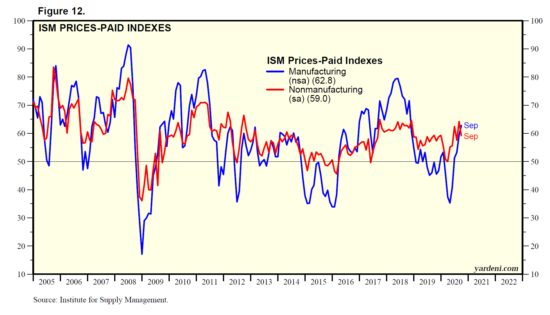 The bottom line is that during Q3 profits have recovered remarkably well from the lockdown recession during the first half of this year. On the other hand, corporate balance sheets are loaded up with more debt than ever. However, much of it has been refinanced at record-low interest rates. It’s all bullish for the economy and the stock market as long as interest rates stay low.