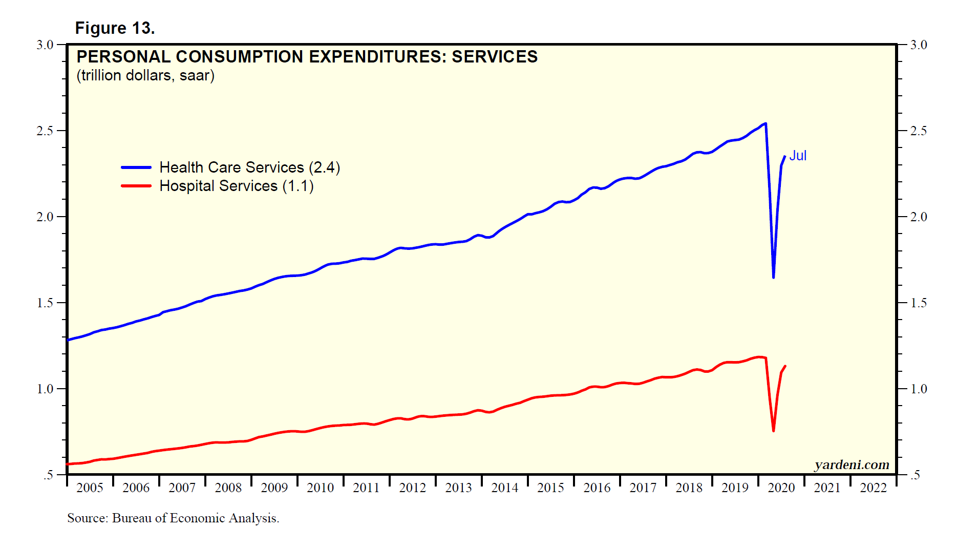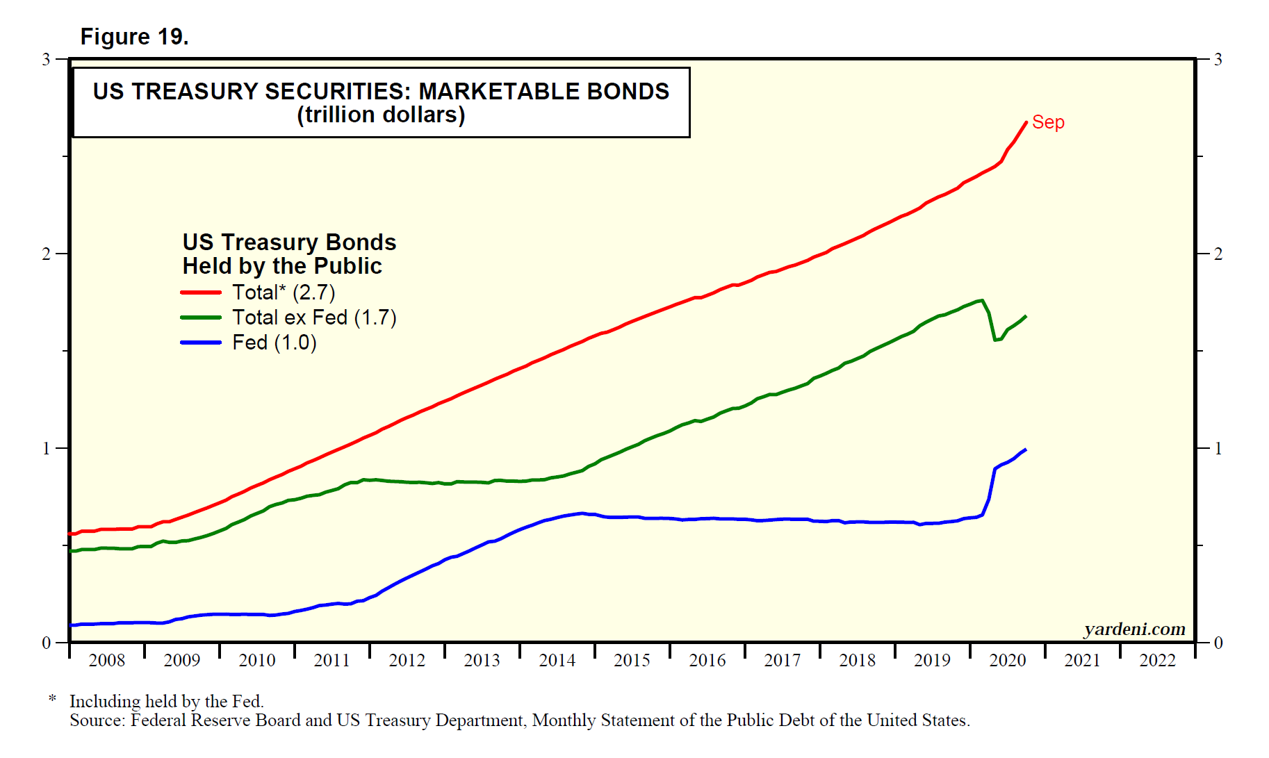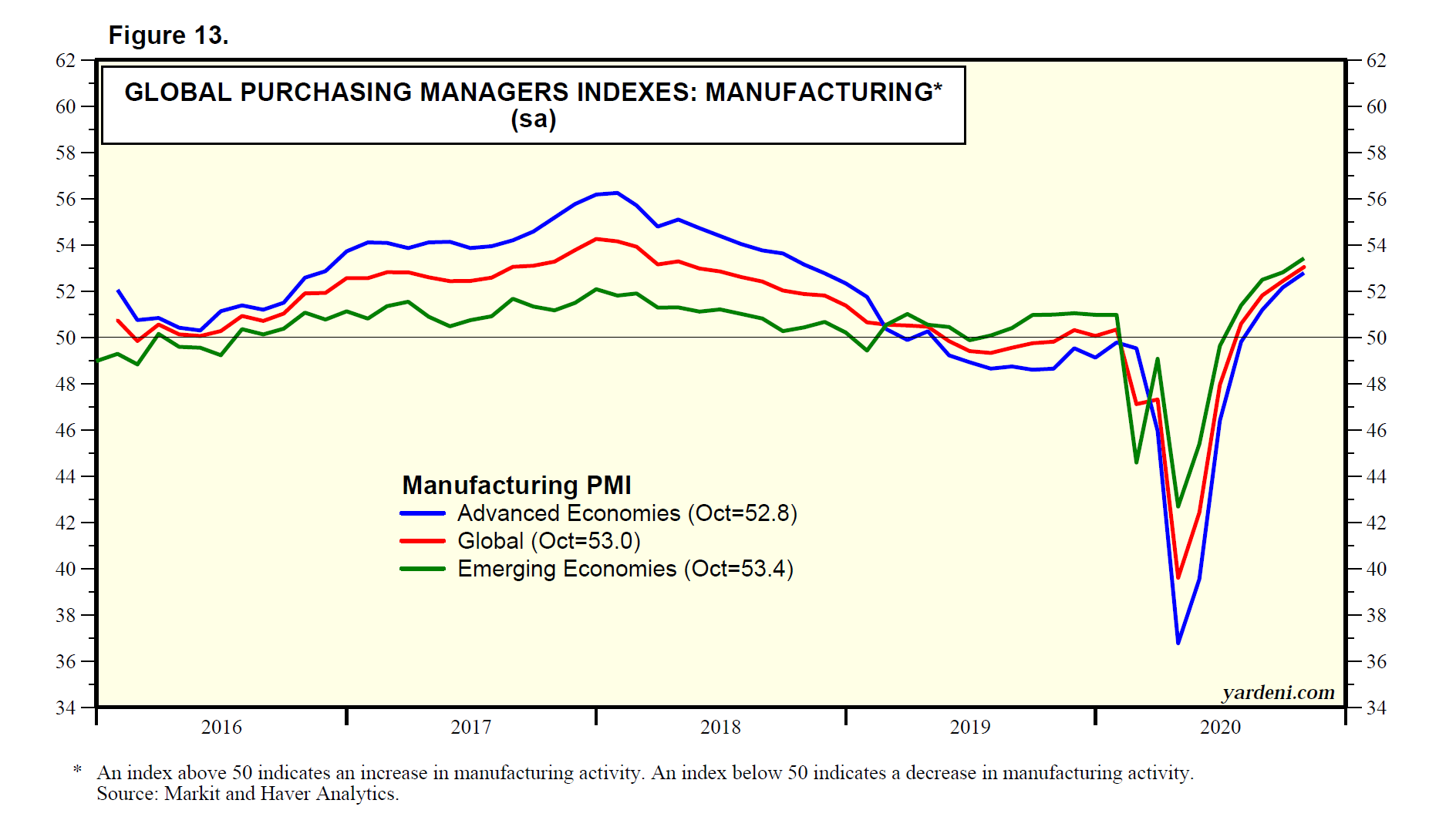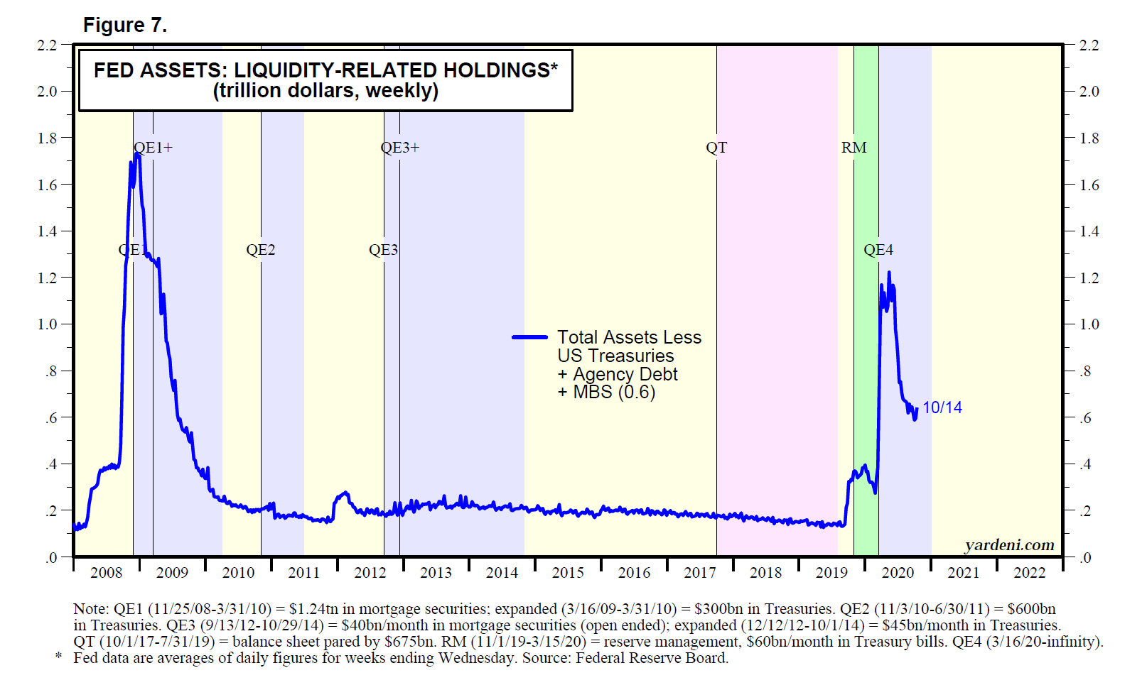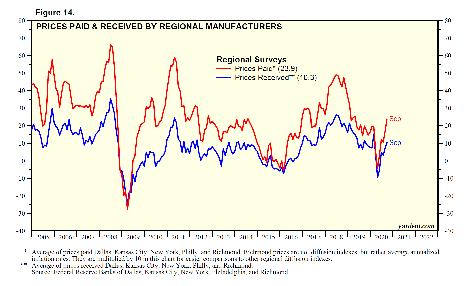 The bottom line is that during Q3 profits have recovered remarkably well from the lockdown recession during the first half of this year. On the other hand, corporate balance sheets are loaded up with more debt than ever. However, much of it has been refinanced at record-low interest rates. It’s all bullish for the economy and the stock market as long as interest rates stay low.