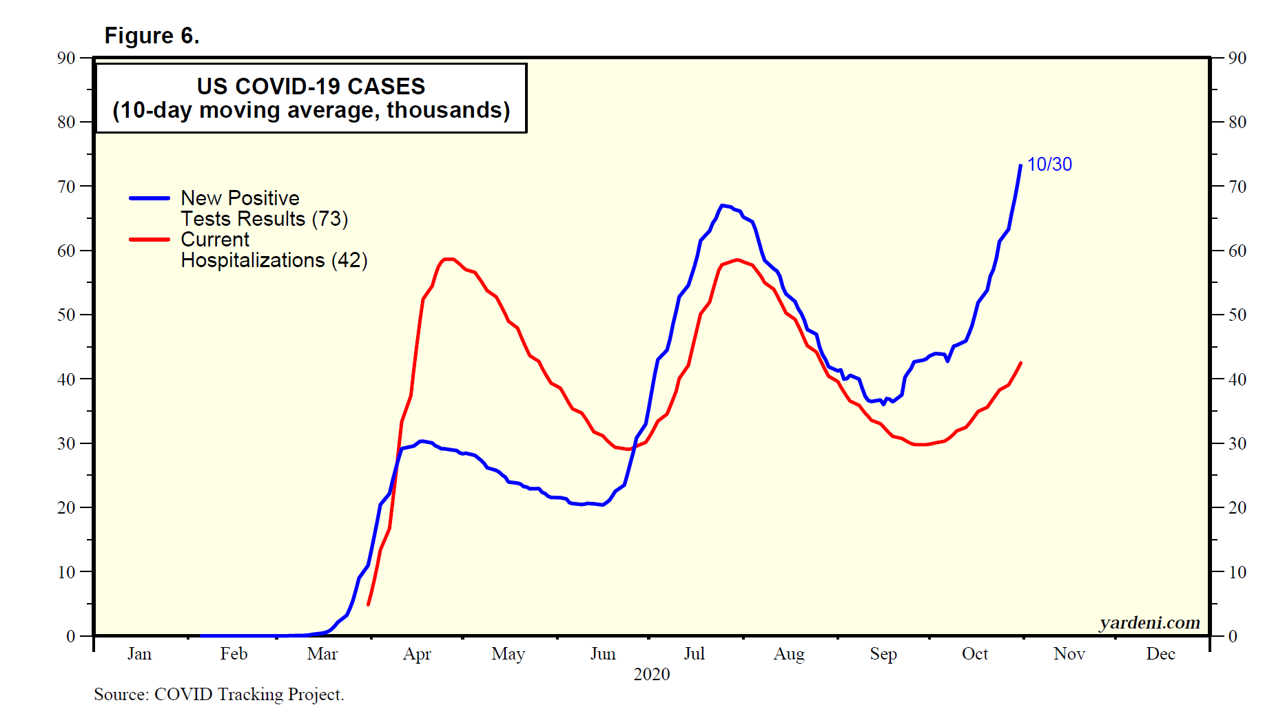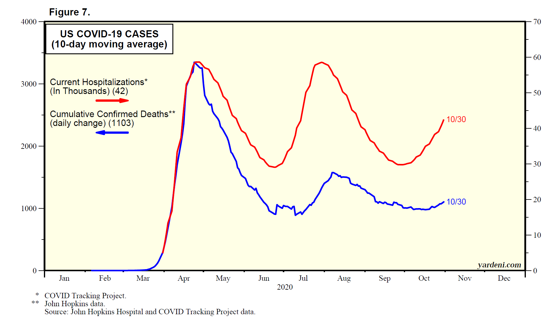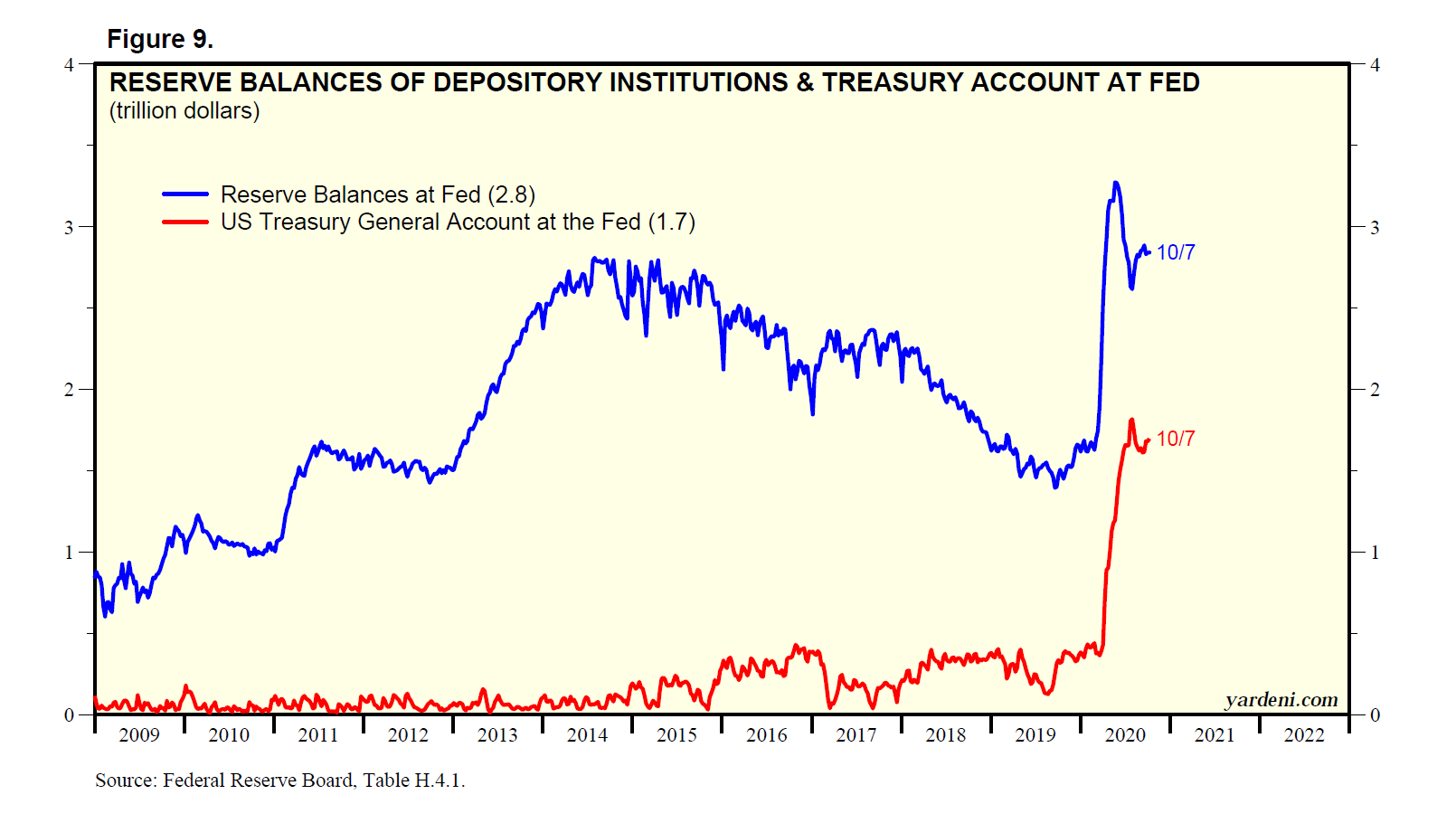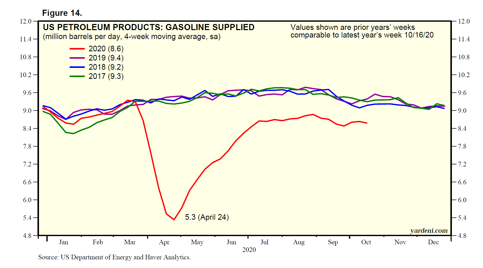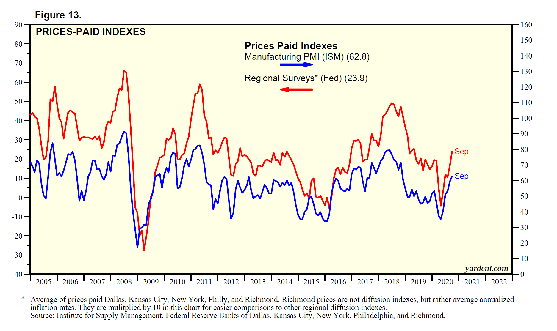 The bottom line is that during Q3 profits have recovered remarkably well from the lockdown recession during the first half of this year. On the other hand, corporate balance sheets are loaded up with more debt than ever. However, much of it has been refinanced at record-low interest rates. It’s all bullish for the economy and the stock market as long as interest rates stay low.
