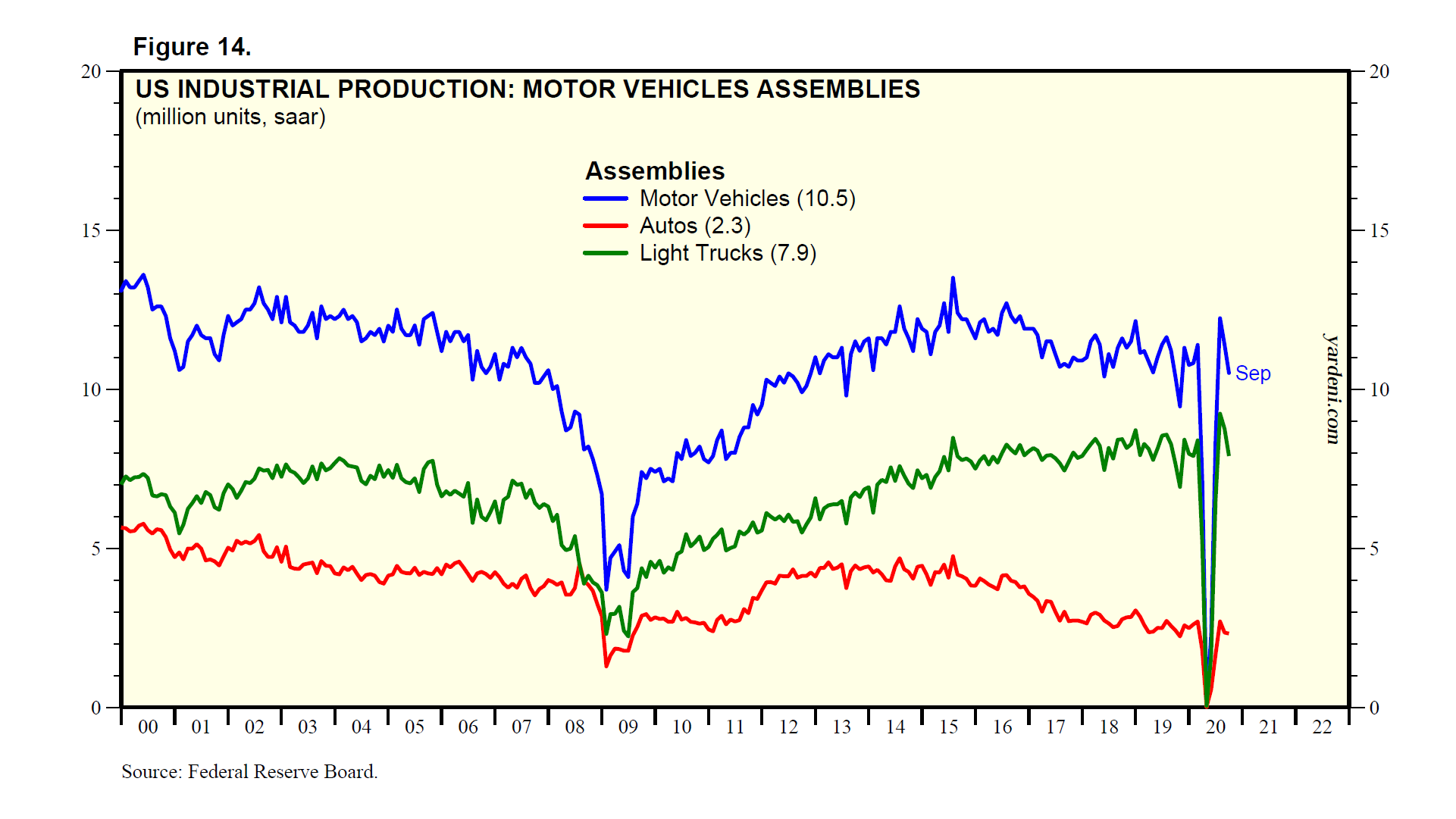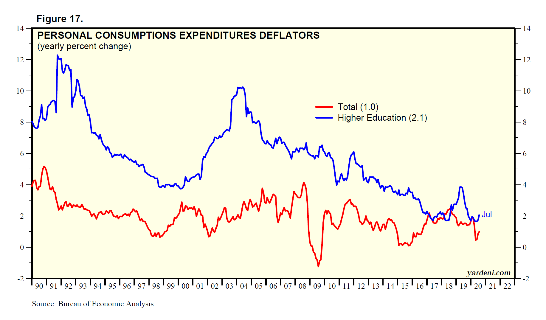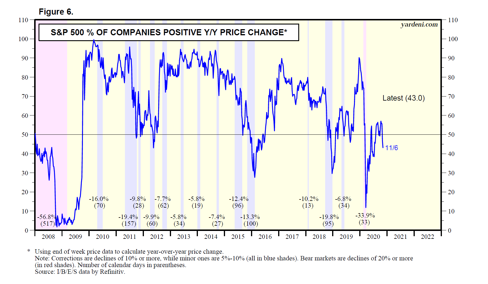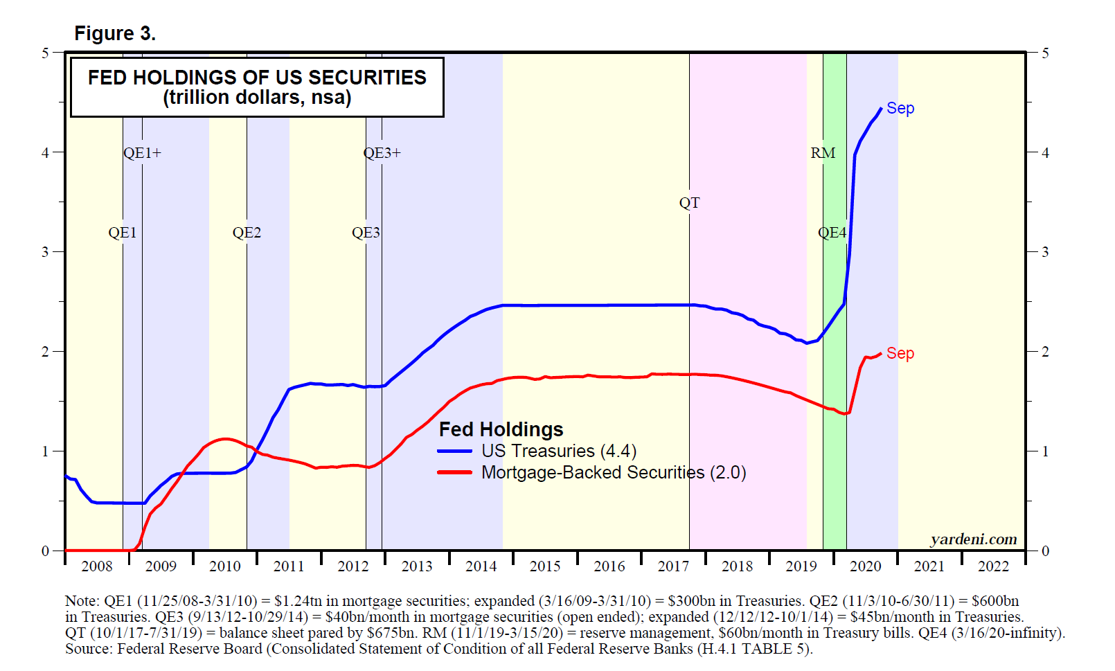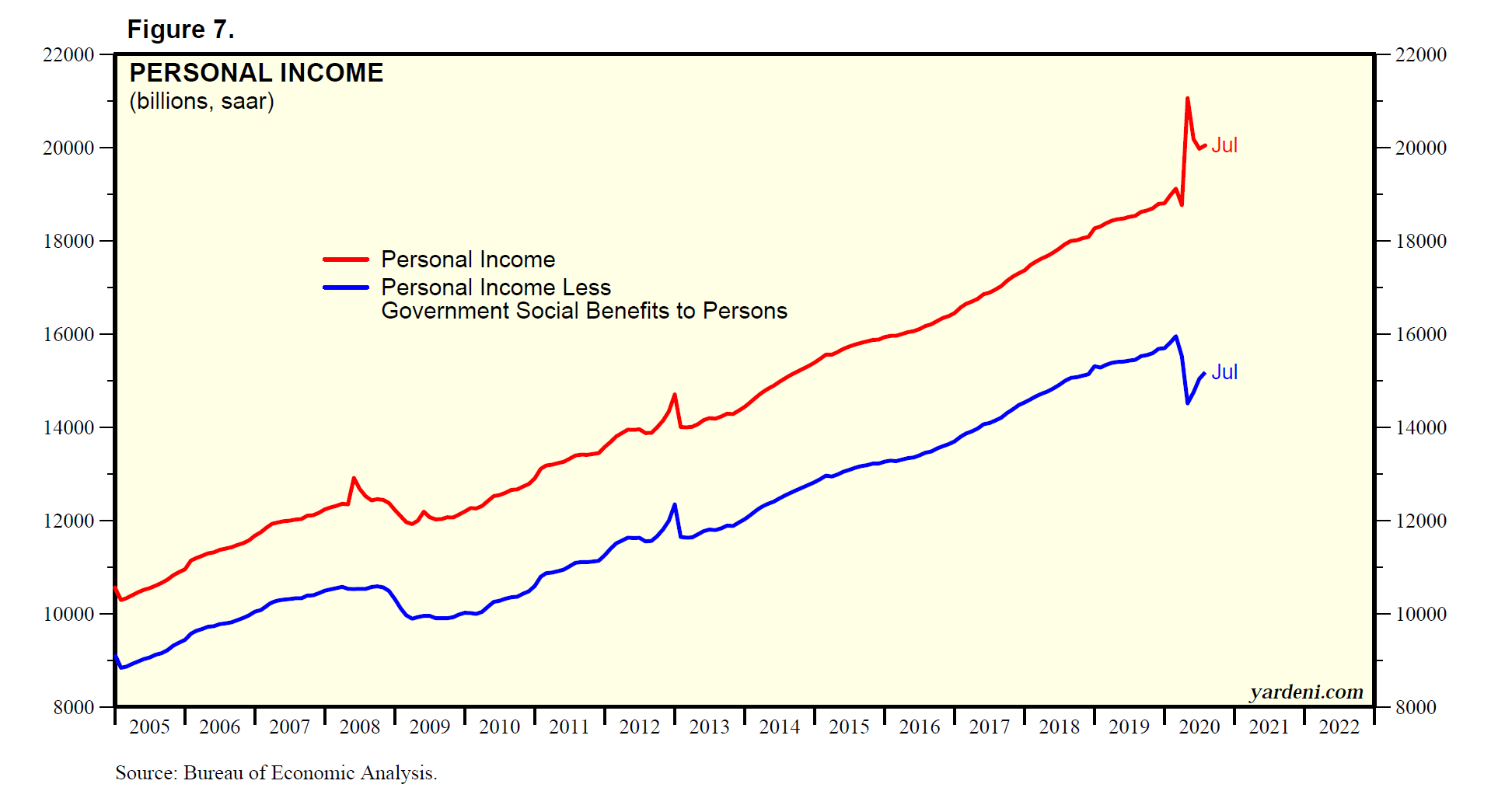 The bottom line is that during Q3 profits have recovered remarkably well from the lockdown recession during the first half of this year. On the other hand, corporate balance sheets are loaded up with more debt than ever. However, much of it has been refinanced at record-low interest rates. It’s all bullish for the economy and the stock market as long as interest rates stay low.