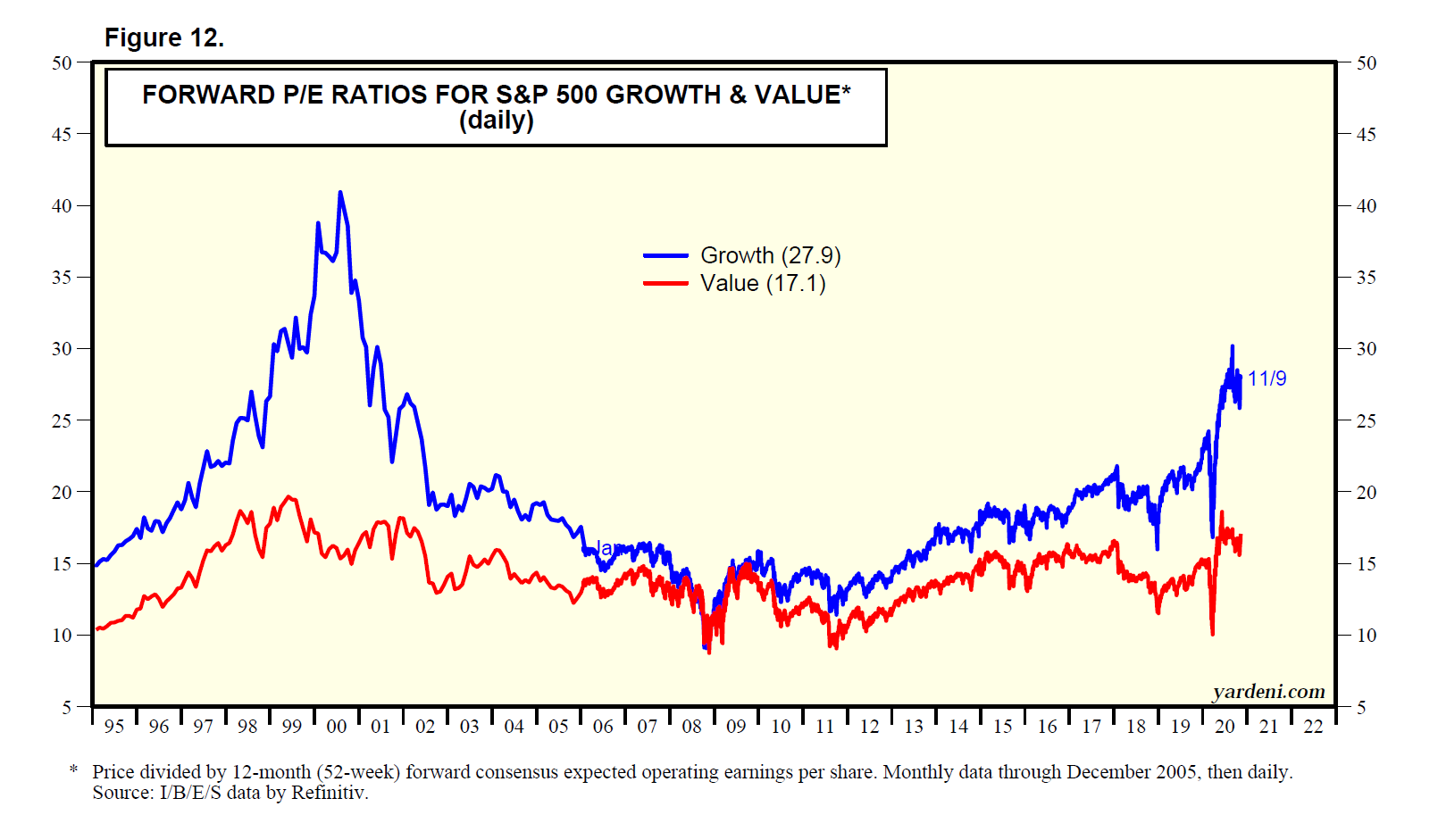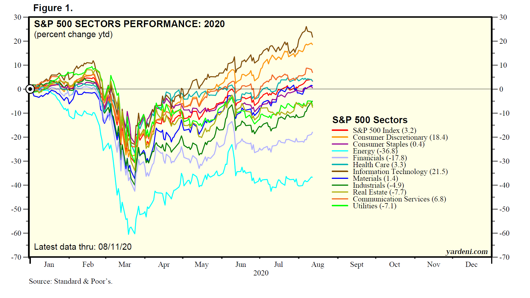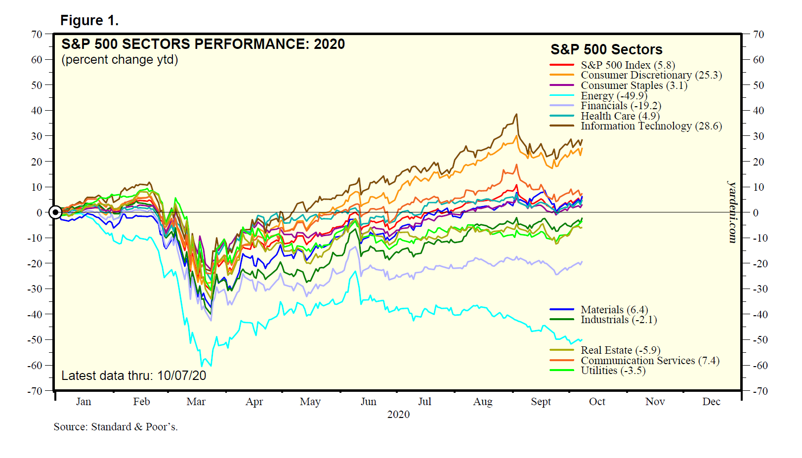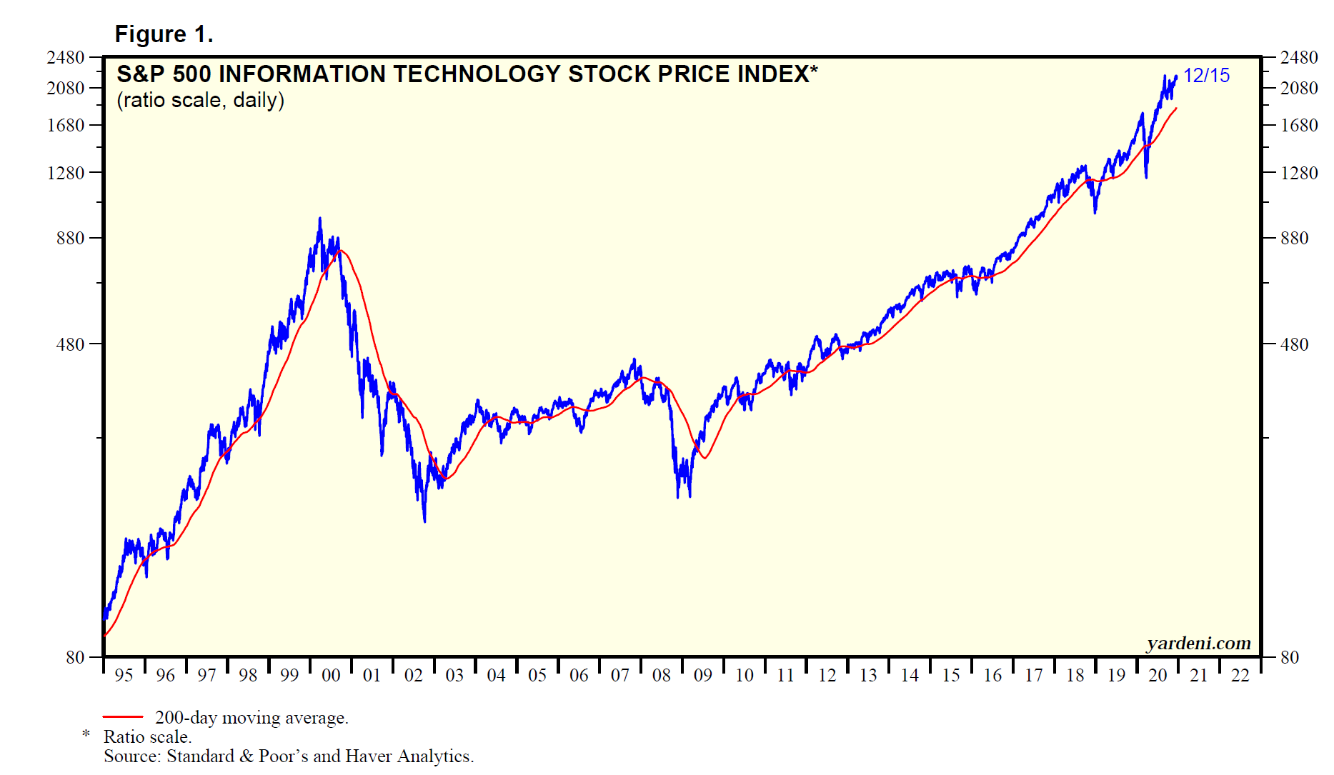 Strategy: The Day the Market Looked Ahead. Looking back on the year, September 2 was an unexpectedly important day. As summer was drawing to a close, the S&P 500 Information Technology stock price index made a high that it didn’t surpass until yesterday. In September, investors began looking ahead to 2021 with hopes of recovery from the pandemic and all the damage it has wrought during this terrible, horrible, no good, very bad year. Instead of buying tech names that benefitted from everyone working and shopping from home, investors began to snap up cyclical companies and those that would recover from a reopened economy.