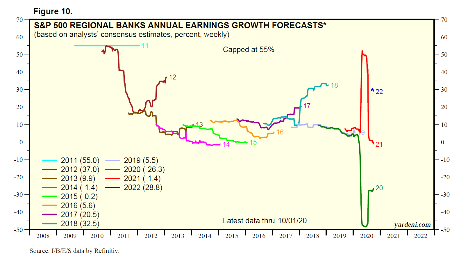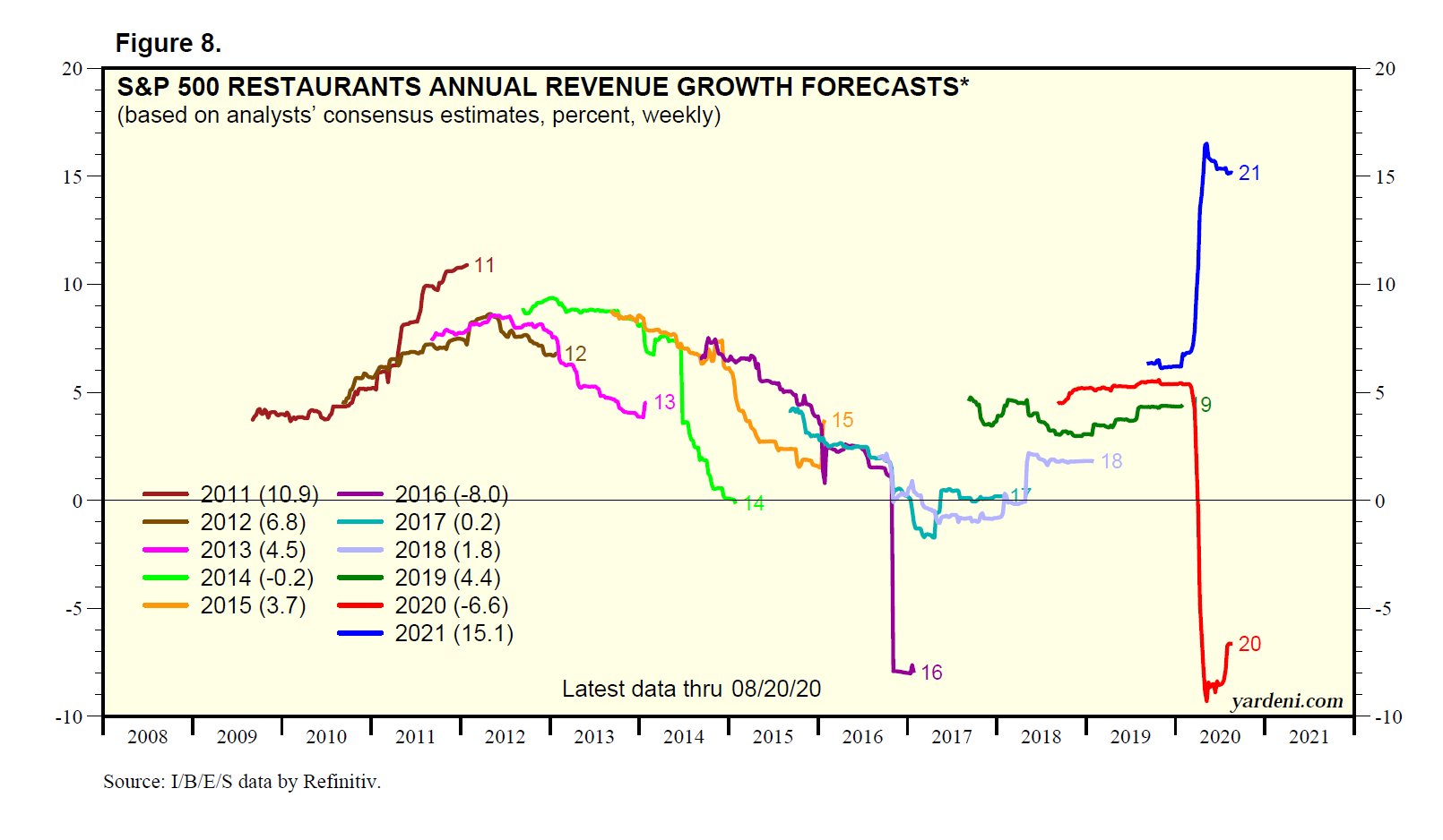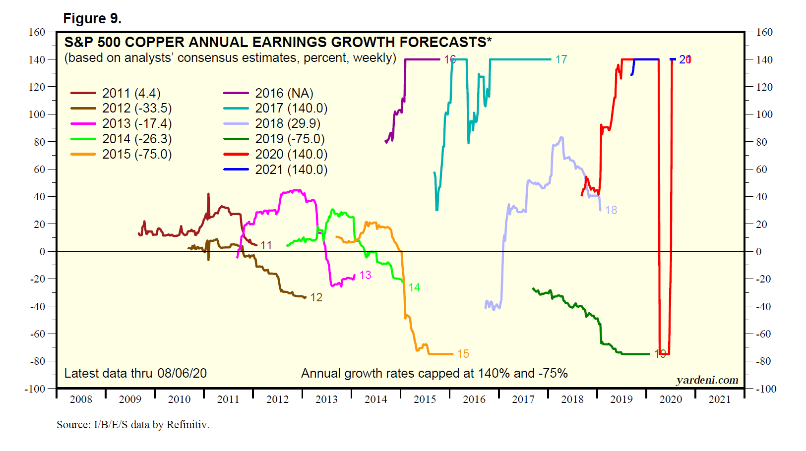 Strategy II: Raising Earnings Outlook. Joe and I have been infected with the bullish virus for quite some time. However, we are doing our best to avoid the deliriousness associated with Mad Bull Disease (MBD). Nevertheless, the stock market has been stampeding past bulls (like us) since it bottomed on March 23, and the economic fundamentals have been doing the same since they bottomed during April. As a result, we’ve had to raise our outlooks for both economic growth and S&P 500 earnings as well as our target for the S&P 500 index a few times since then. Here we go again: