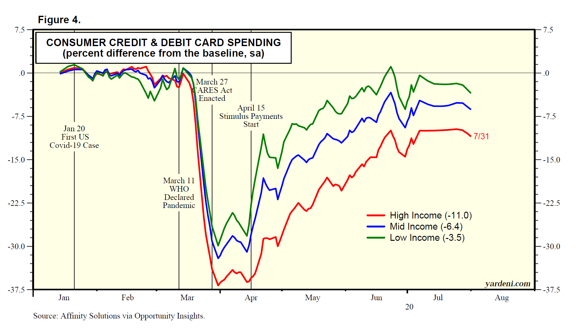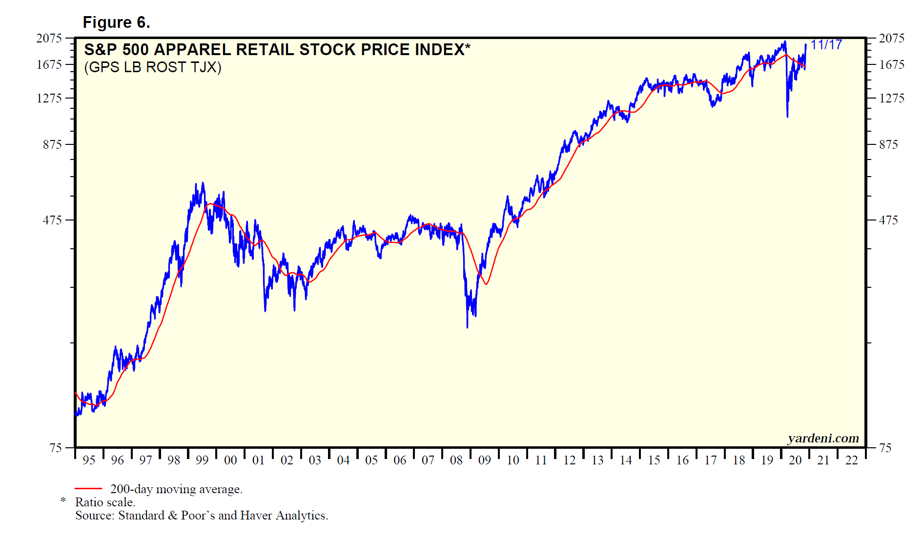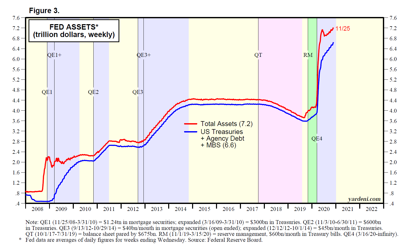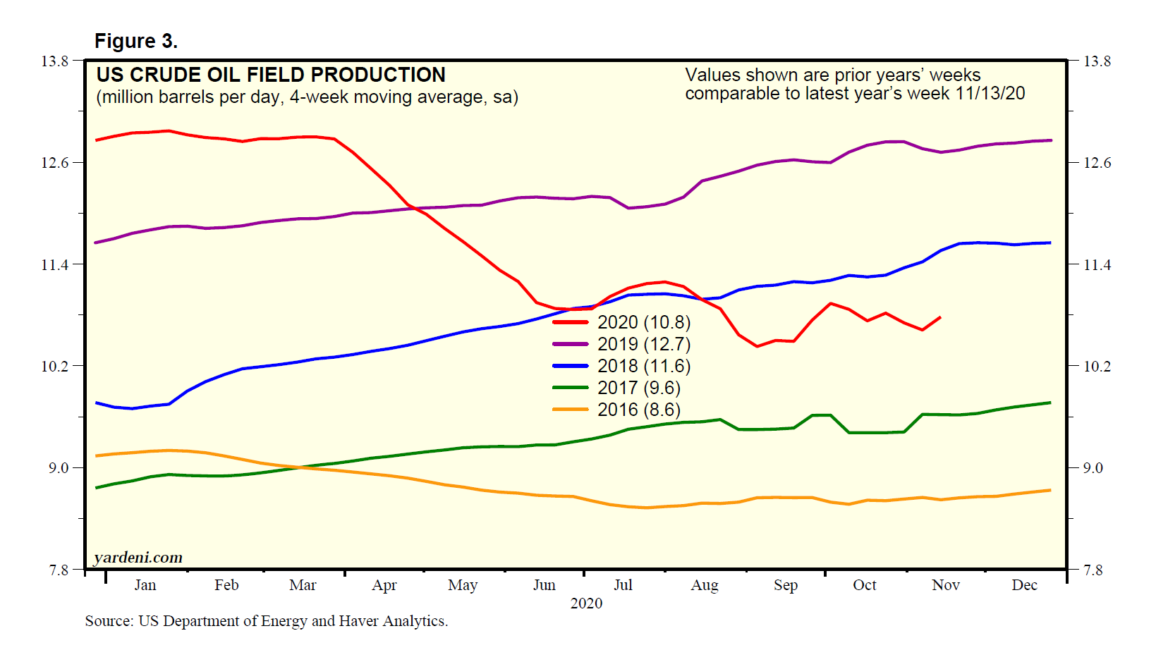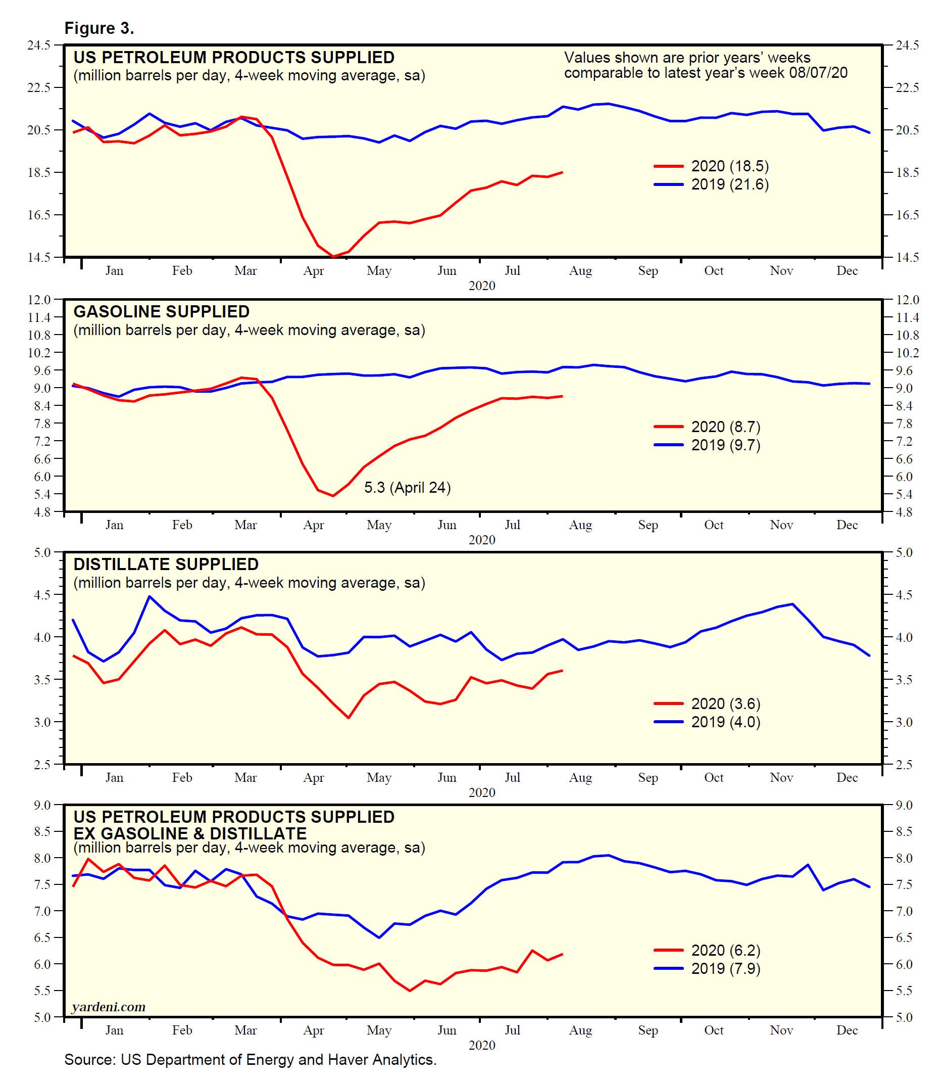 We also raised our real GDP forecast yesterday to 10% (saar) during Q4-2020 to reflect the strength in the Atlanta Fed’s GDPNow tracking model (currently showing 11.2%). We lowered our outlook for the first half of 2021 to reflect renewed lockdown restrictions during the third wave of the pandemic. We boosted the second half’s growth rates, assuming that widespread vaccinations during the first half will boost the lagging service providers significantly starting next summer. (See YRI Economic Forecasts.) As a result of our revisions, we see real GDP fully recovering by mid-2021 (Fig. 3).