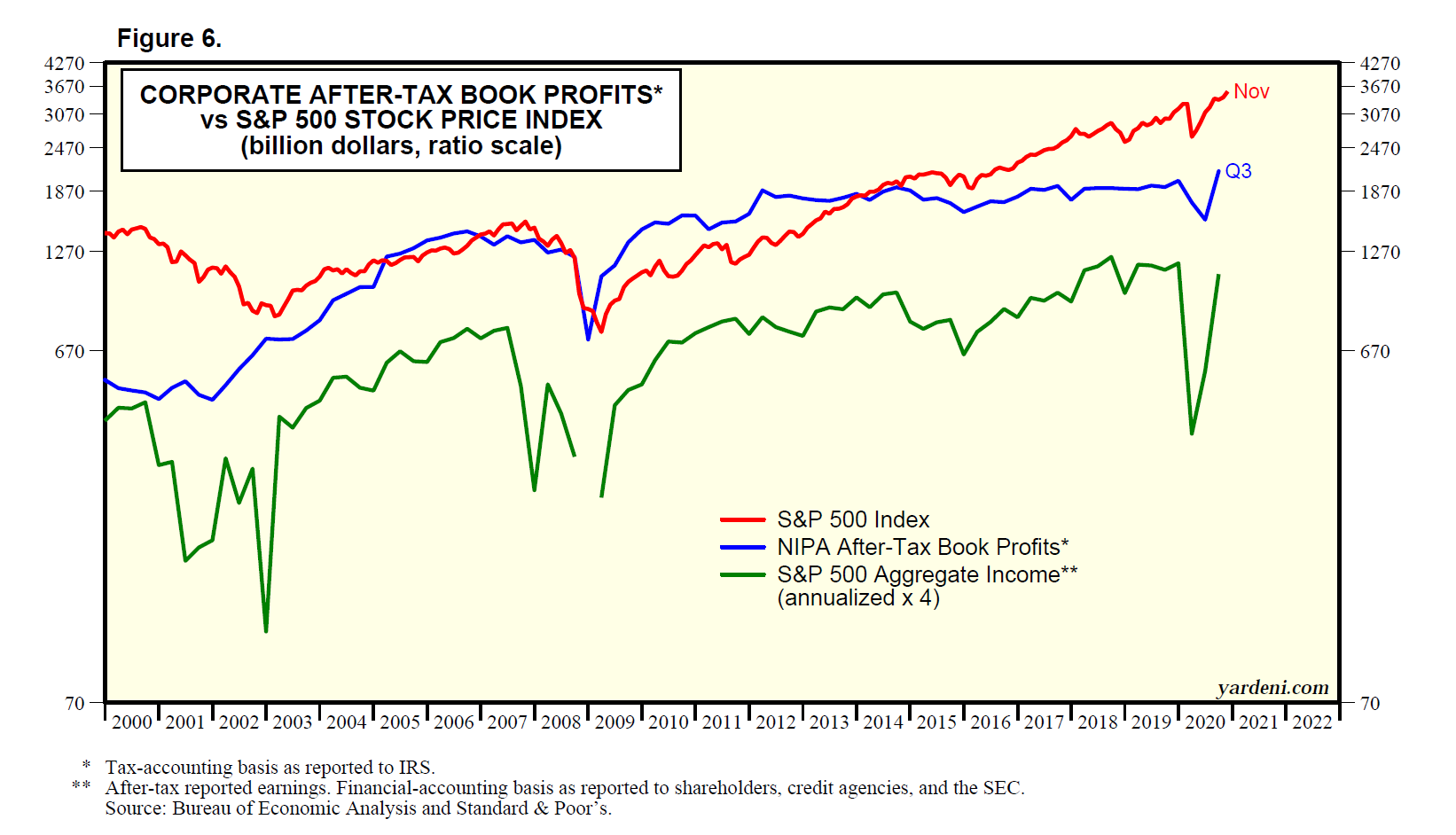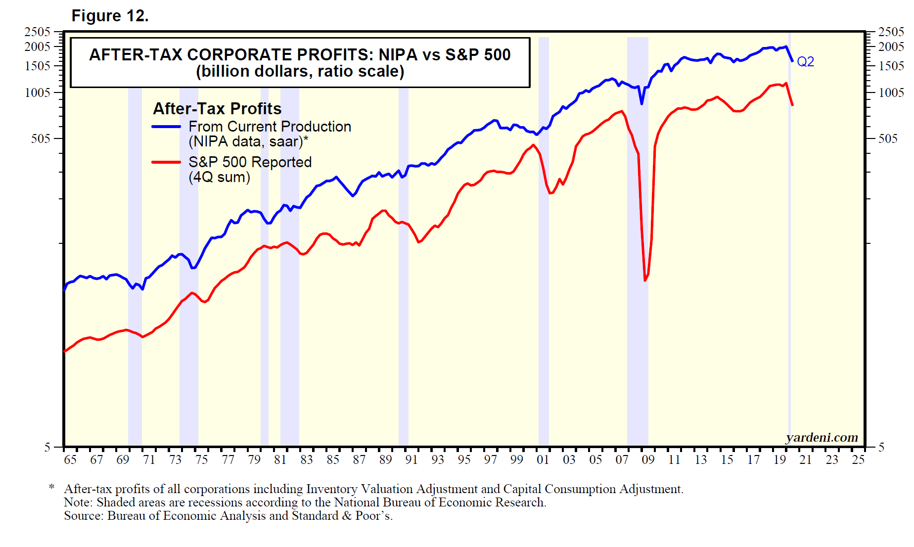 The S&P 500 accounts for roughly 50% of NIPA profits, which also includes S corporations, which are owned by no more than 100 shareholders. S corporations do not pay corporate taxes. Instead, their profits are paid and taxed as dividends to their shareholders. In other words, it doesn’t make much sense to use NIPA profits when thinking about and forecasting the S&P 500. (Perma-bears occasionally make that rookie’s mistake.)