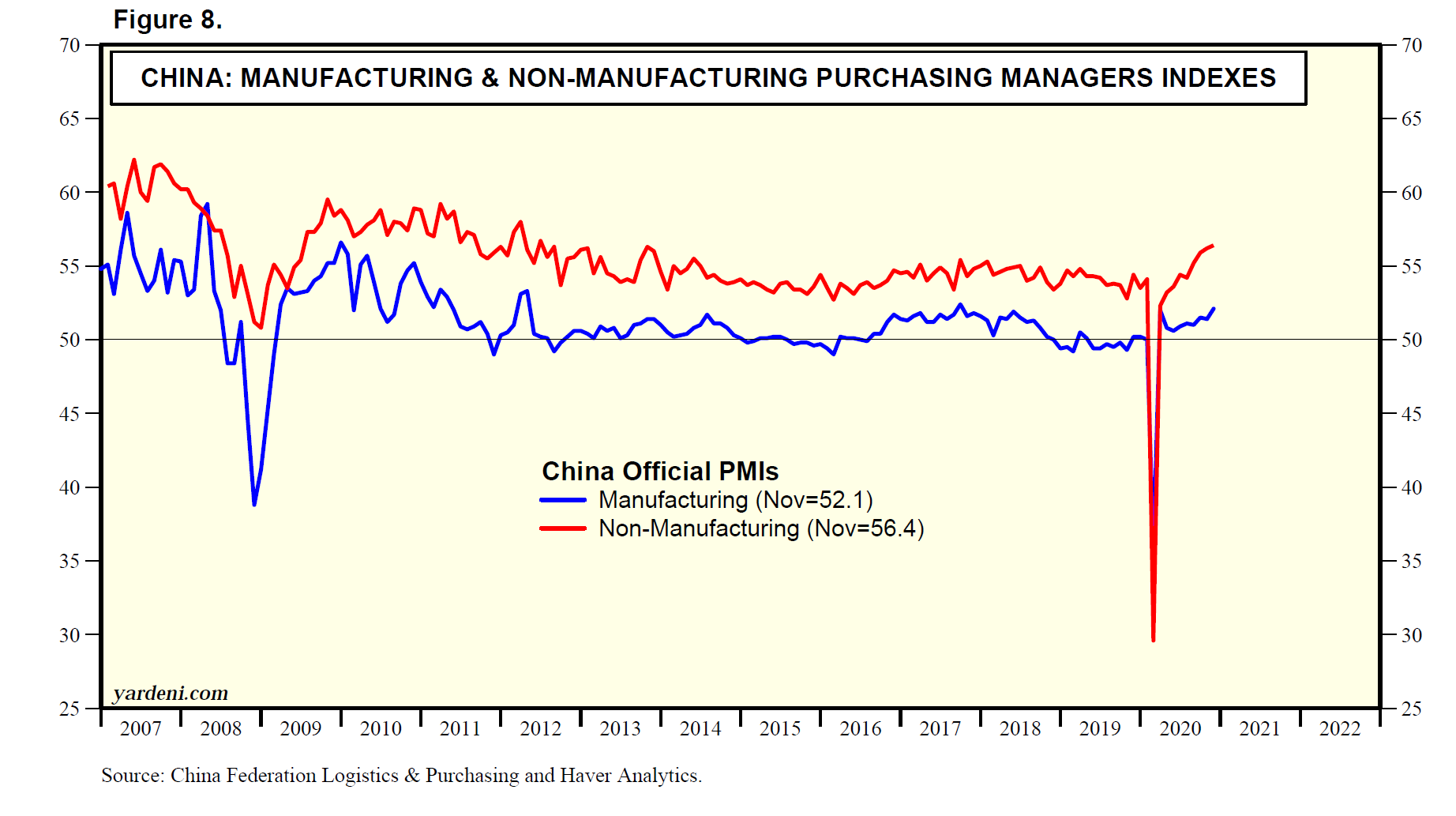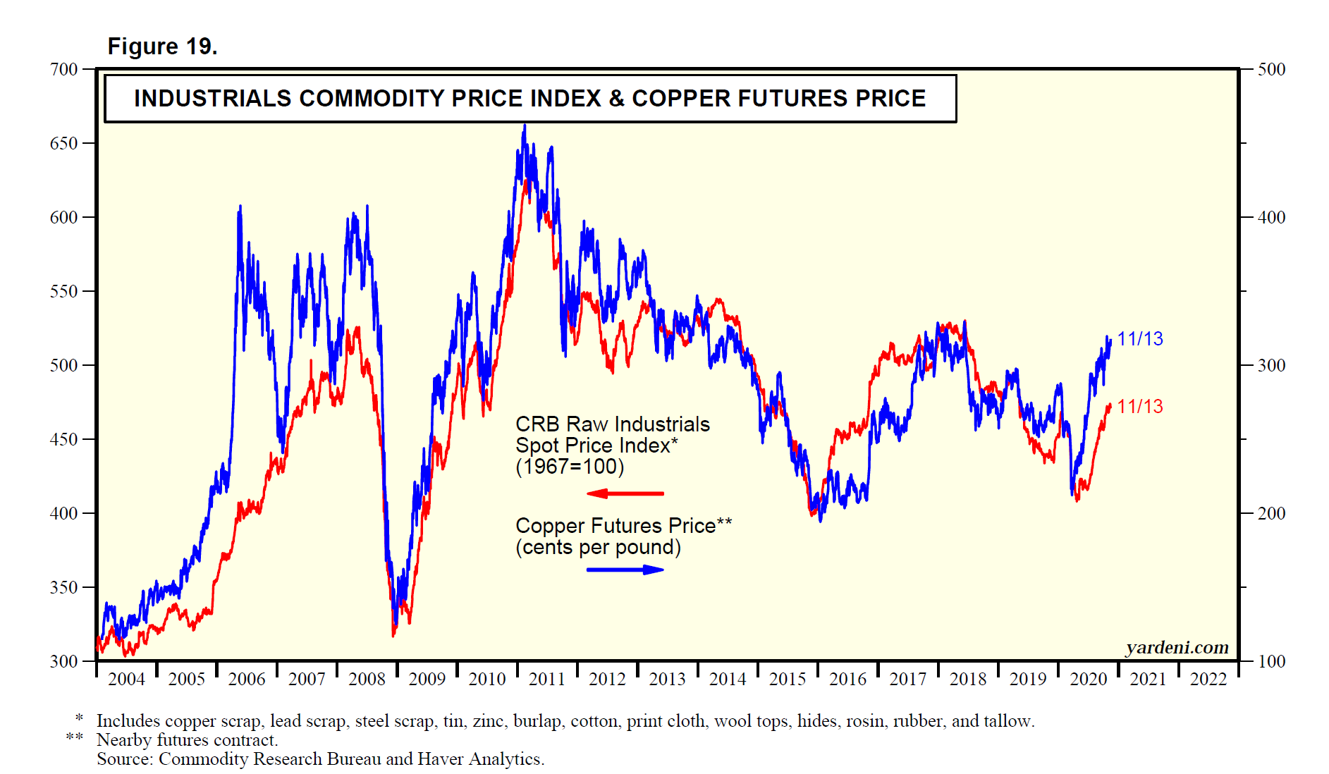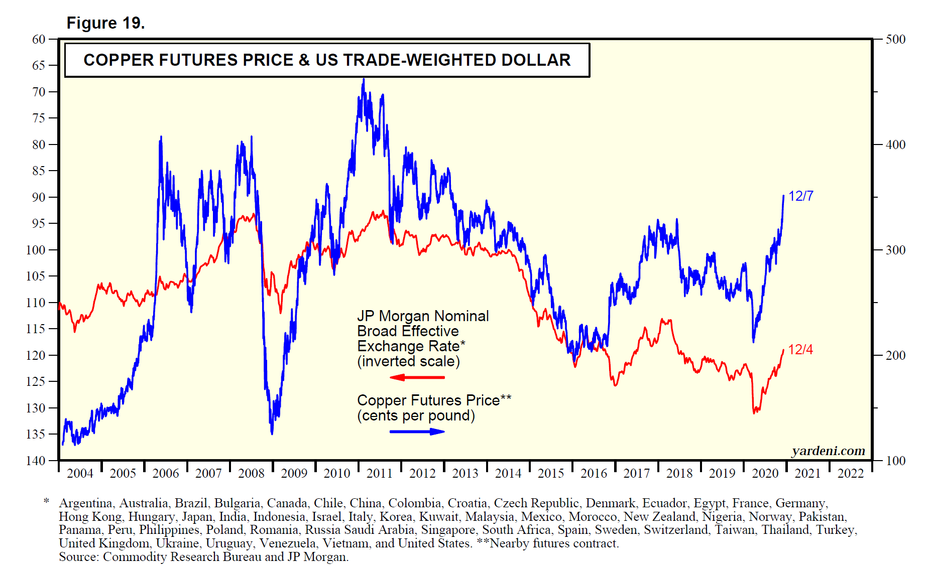 (1) Brighter days expected in 2021. (2) The S&P 500 Tech sector’s stock price index has gone sideways for three months, outpaced by cyclical sectors. (3) Copper shines and oil rebounds. (4) Cyclical earnings expected to have strongest growth next year as economy recovers. (5) US financials given access to China’s markets, but at what price? (6) New electric vehicles racing to dealerships in 2021. (7) Europe prods consumers and companies to embrace EVs. (8) Will solid-state batteries threaten Tesla’s dominance?