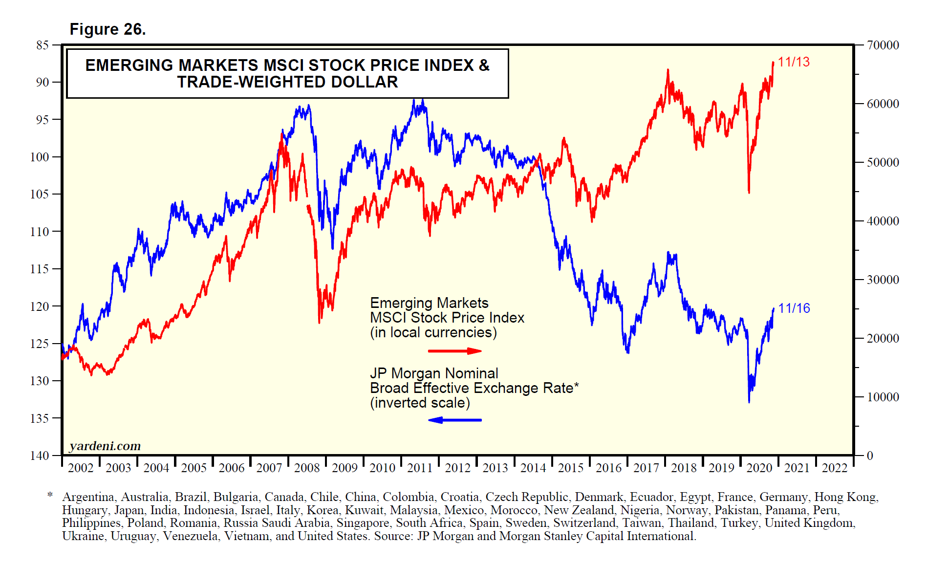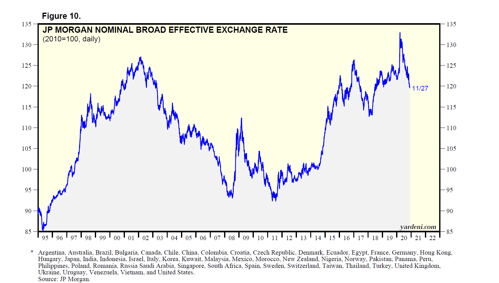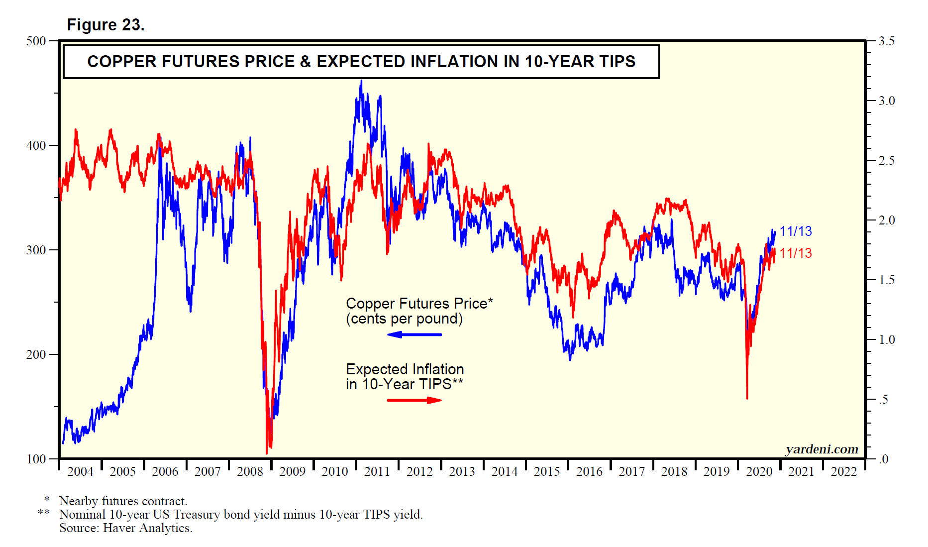(1) Brighter days expected in 2021. (2) The S&P 500 Tech sector’s stock price index has gone sideways for three months, outpaced by cyclical sectors. (3) Copper shines and oil rebounds. (4) Cyclical earnings expected to have strongest growth next year as economy recovers. (5) US financials given access to China’s markets, but at what price? (6) New electric vehicles racing to dealerships in 2021. (7) Europe prods consumers and companies to embrace EVs. (8) Will solid-state batteries threaten Tesla’s dominance?