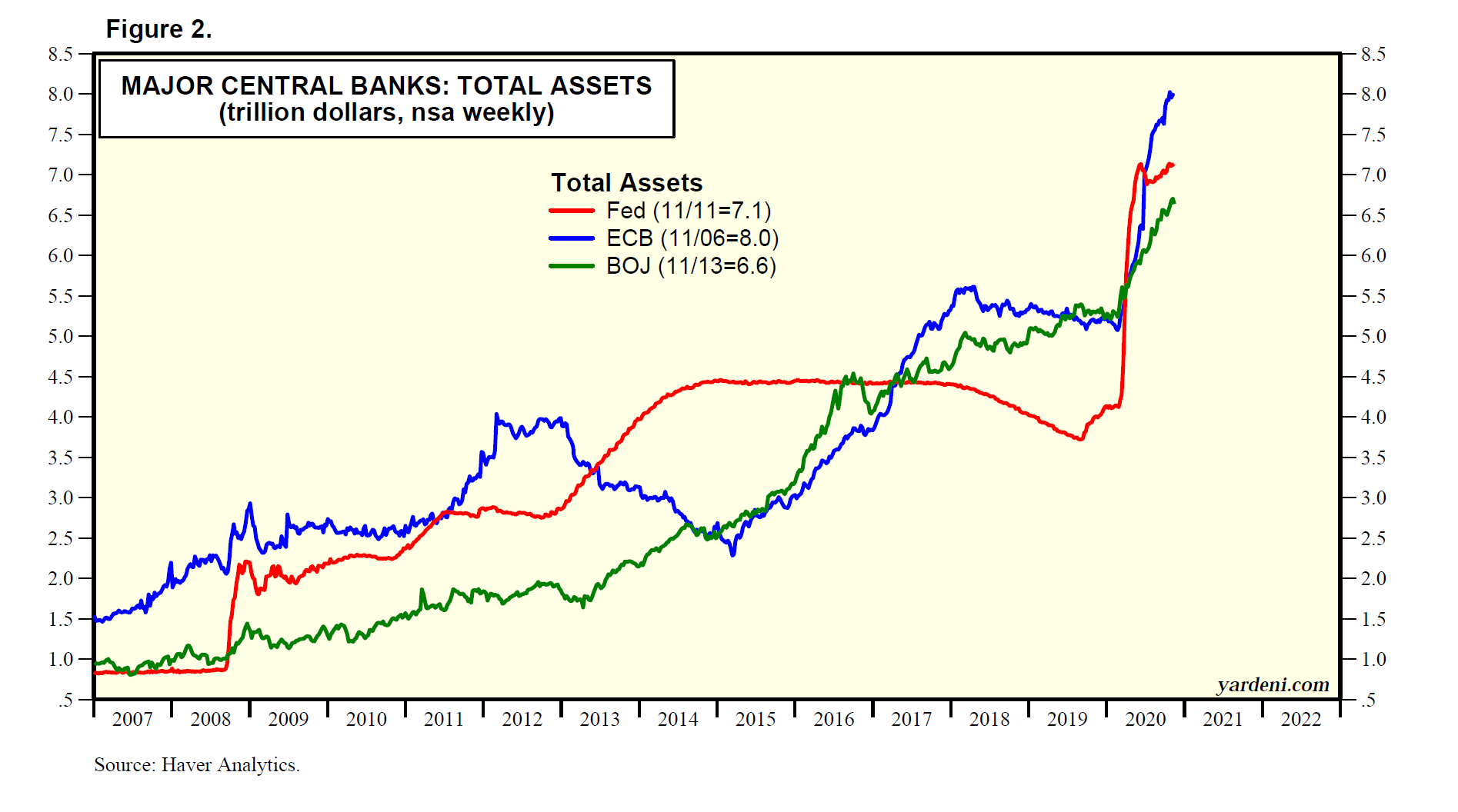 My response is: “So what’s your point?” The goal of investing is to make money, not to critique monetary policy. If you believe that the central banks are recklessly providing liquidity, thus pushing up stock prices, then you should be bullish until there is solid evidence that they’ve either run out of ammo or that their policies are starting to boost price inflation, which would force them to reverse course. That’s one of the main themes of my 2018 book Predicting the Markets and my forthcoming book Fed Watching for Fun & Profit. In other words, investing isn’t about morality (i.e., good versus bad). It is about bullish versus bearish. Investors should not be preachers.