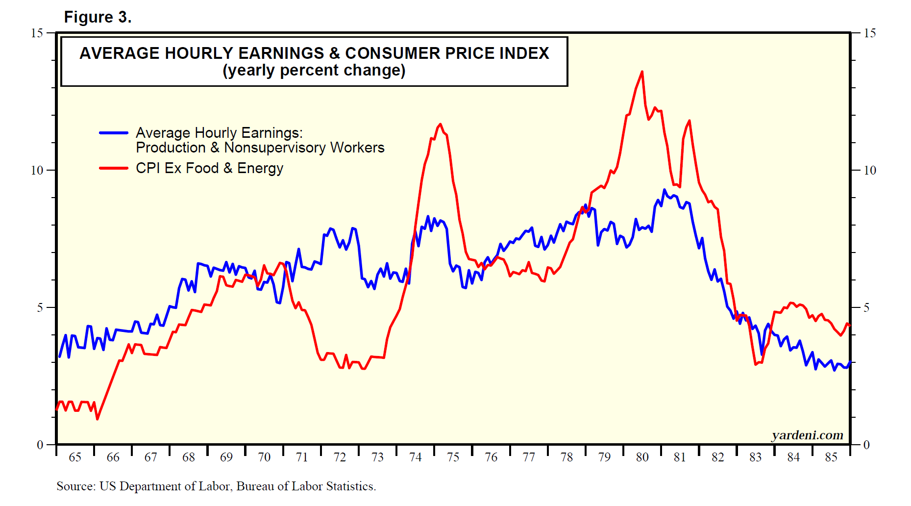 (2) Wage inflation by industry. Among goods-producing industries, wage inflation for production and nonsupervisory workers during November was only 2.7% in manufacturing and 2.0% in construction. However, it was 7.7% in natural resources.