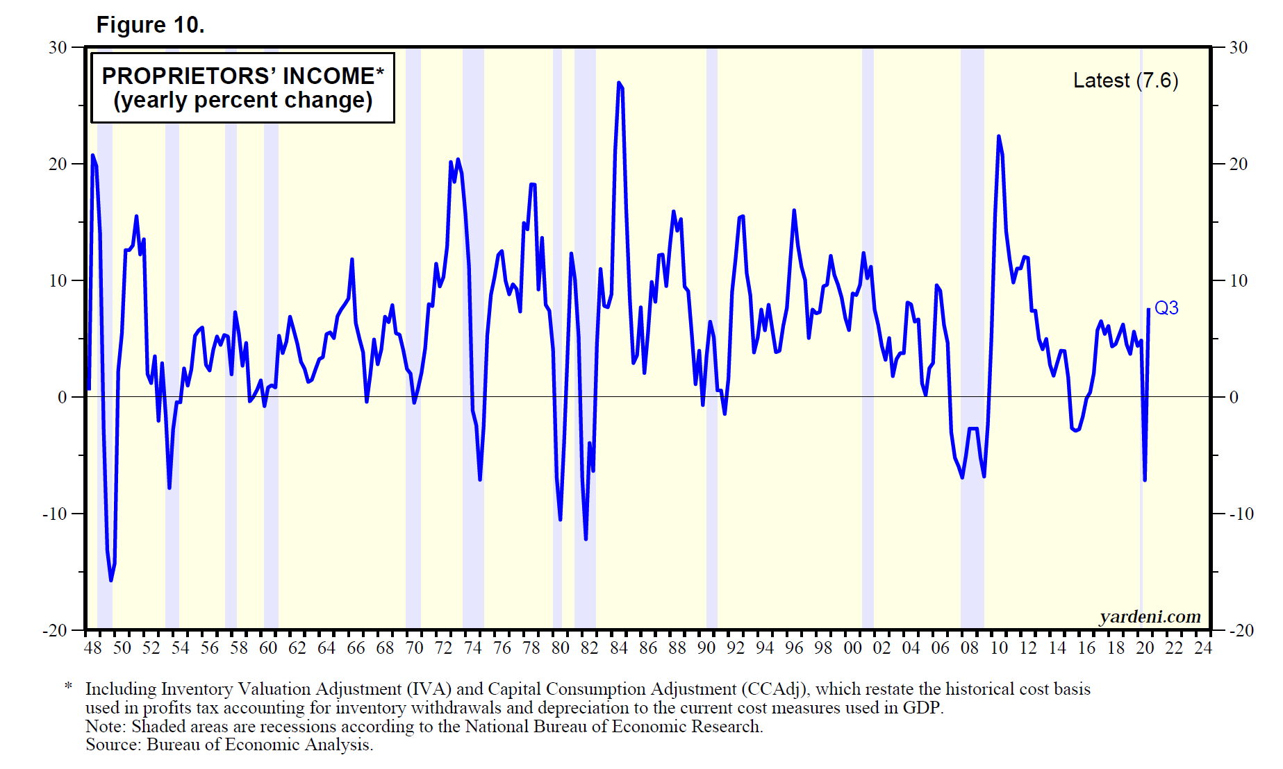 (4) Impact on capital spending. Nonfinancial noncorporate businesses accounted for 14.5% of capital spending in nominal GDP during Q3-2020 (Fig. 11 and Fig. 12).