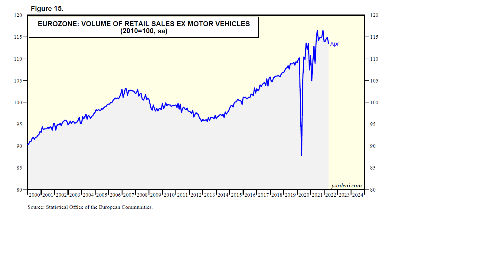 (8) Inflation is turning out to be transitory. There can be no debate about the transitory nature of goods inflation since H2-2020. It was back down to 0.0 y/y during November (Fig. 16). It turned out to be mostly attributable to the shocks and aftershocks of the pandemic, which have been dissipating since the end of the pandemic.