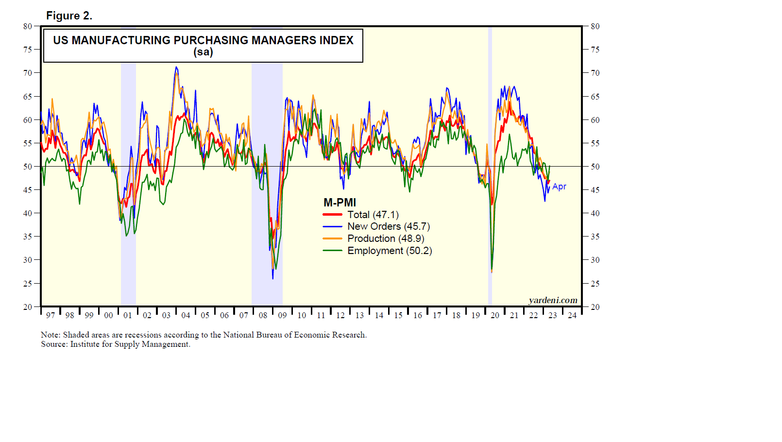 Executive Summary: Stock market bears have long expected a recession, but now the prospective credit crunch that could cause one seems more plausible after the SVB crisis. … We expect that the Fed and FDIC will contain the crisis. But we do see regional banks paying higher deposit rates now to prevent disintermediation. That’s likely to hurt their profitability and prompt more cost-saving M&A activity among them. … Also: The latest batch of economic indicators supports a soft-landing scenario.