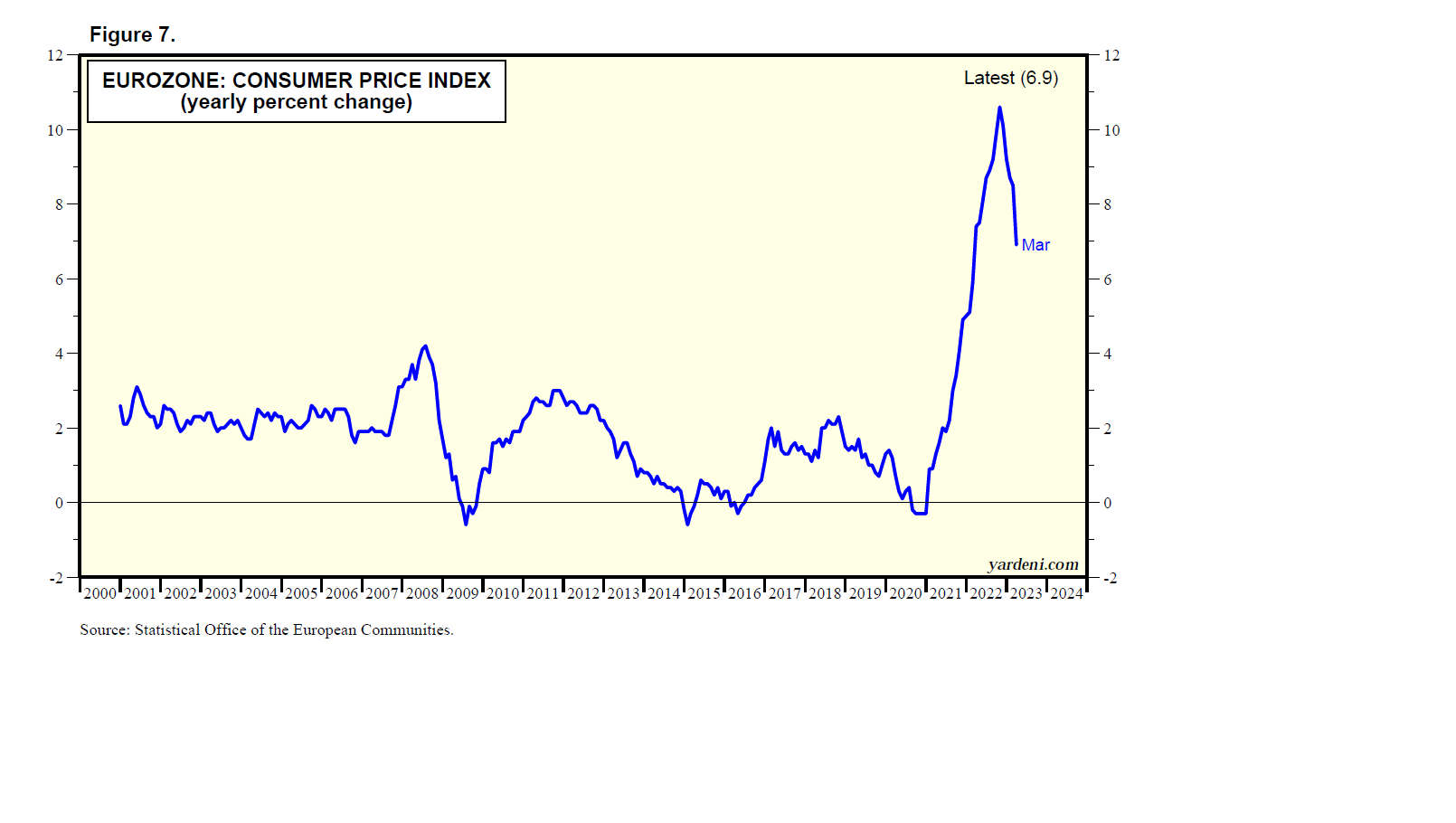 We believe that the upcoming earnings season will be especially important during the second and third weeks of April, when most of the big banks report their results. Their profits are likely to be depressed by increases in their provisions for loan losses. Given the recent banking crisis, even if bank managements aren’t that concerned about loan losses, they might still want to show the banking regulators that they are being prudent. Then again, the Fed’s weekly H.8 report on the assets and liabilities of commercial banks is still showing modest increases in their allowances for bad loans. They might prefer to downplay the impact of the banking crisis on their profitability to calm the nerves of their investors, or at least not to overdramatize it.