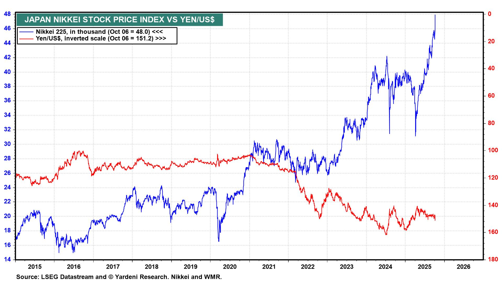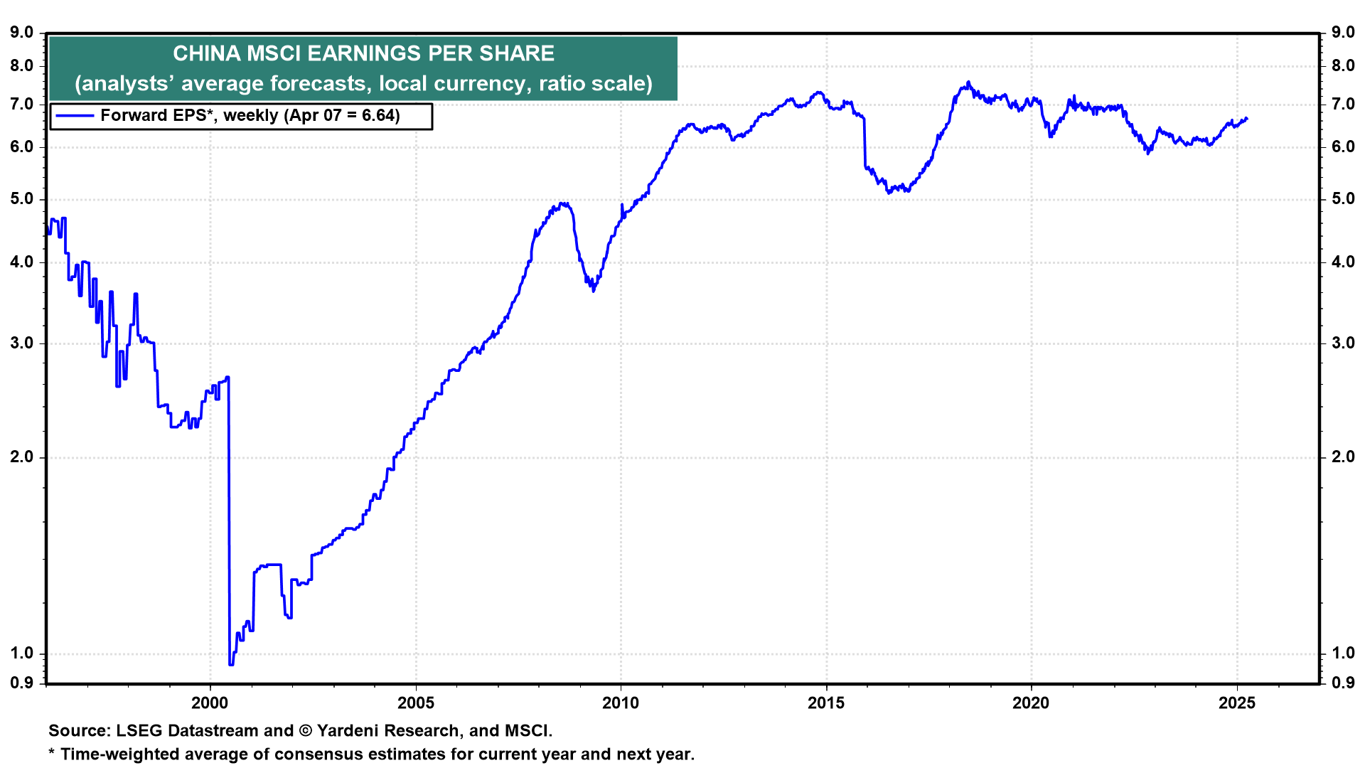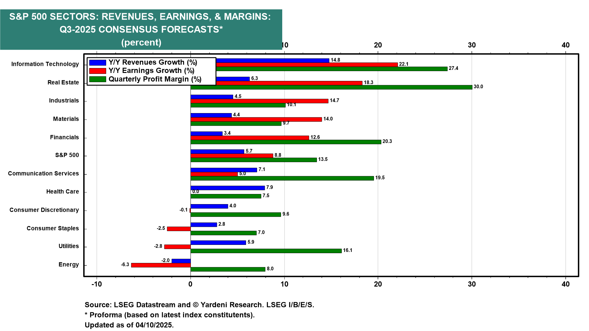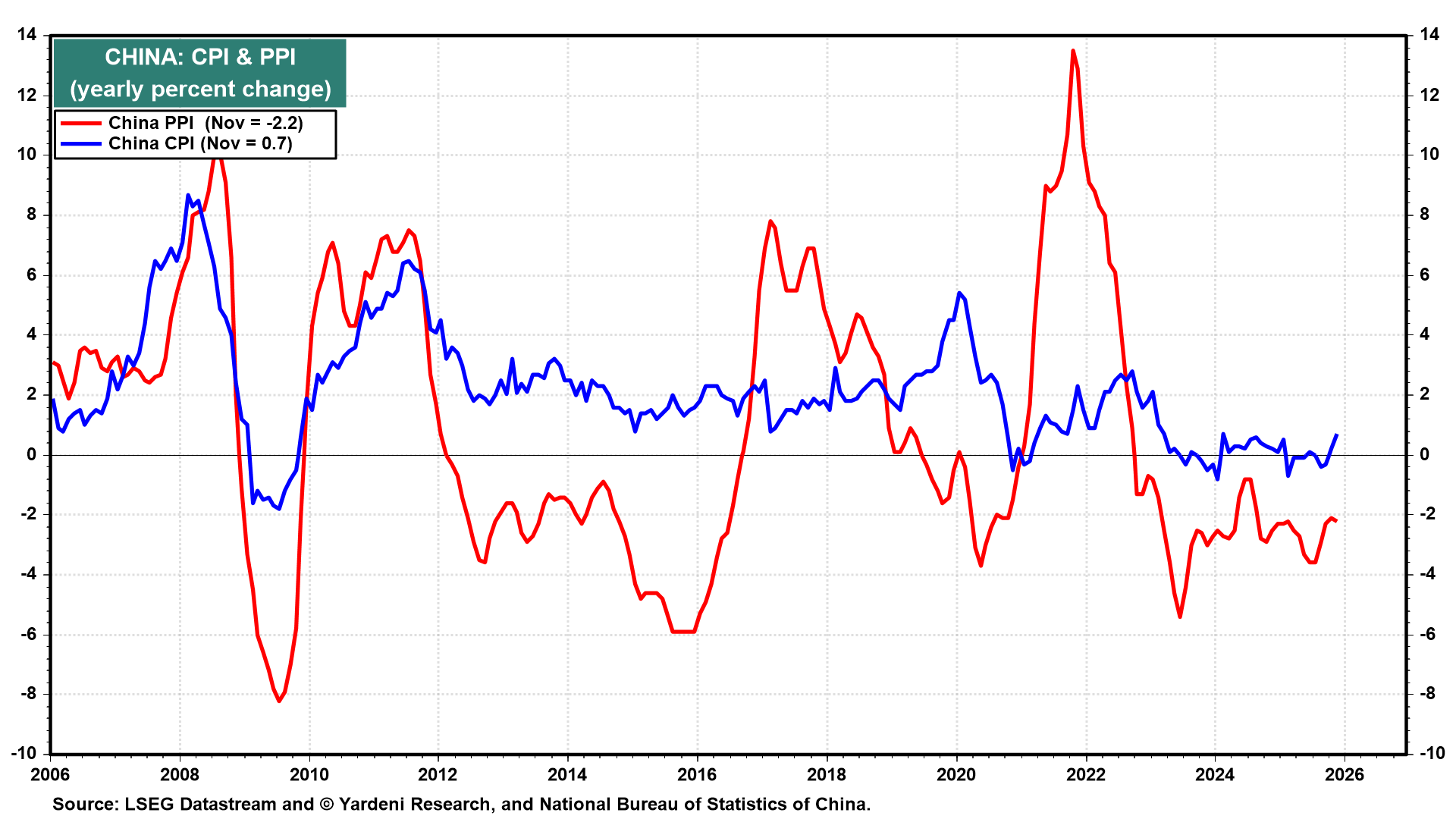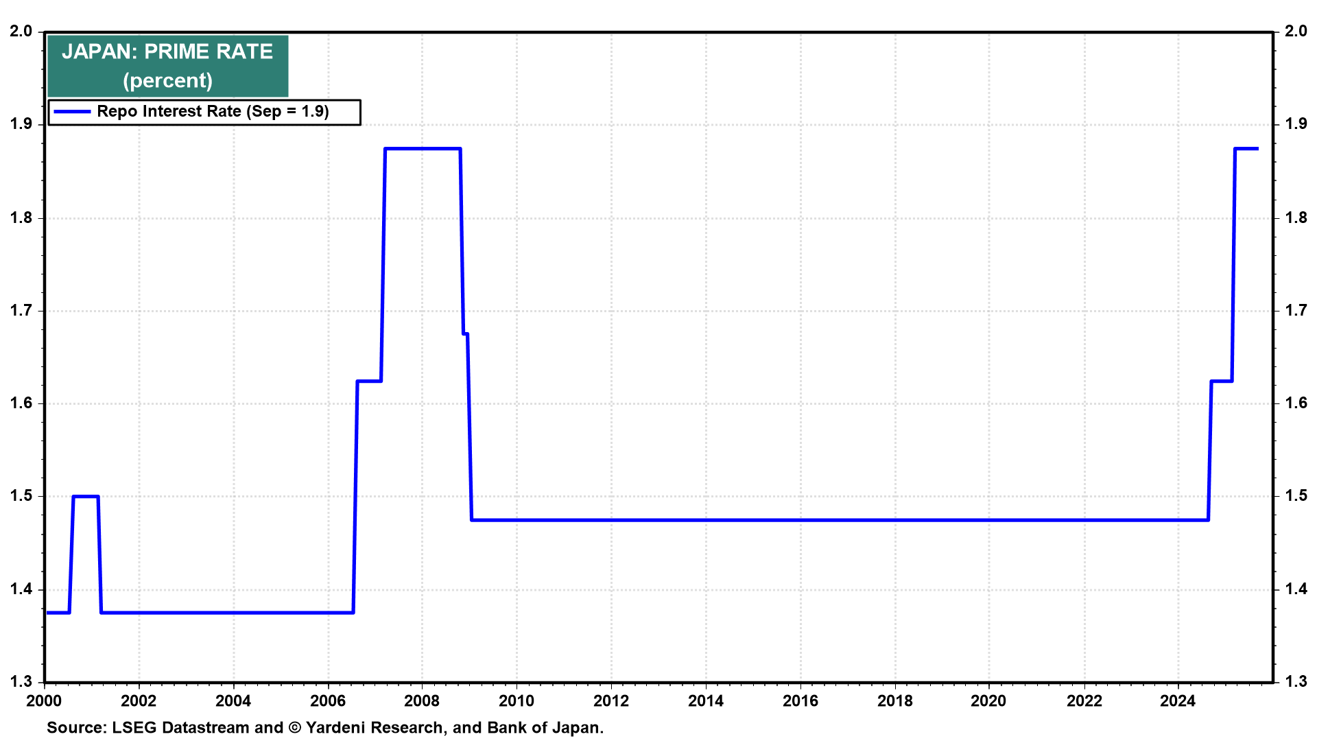 (1) India leads Asian economies. The Reserve Bank of India (RBI) expects India’s real GDP growth to approach the government’s 7.0% target during its fiscal year 2025-26 (Fig. 11). The region remains the world’s fastest growing economy. With the India MSCI trading at 22.6 times forward earnings, however, investors certainly are paying for that growth.