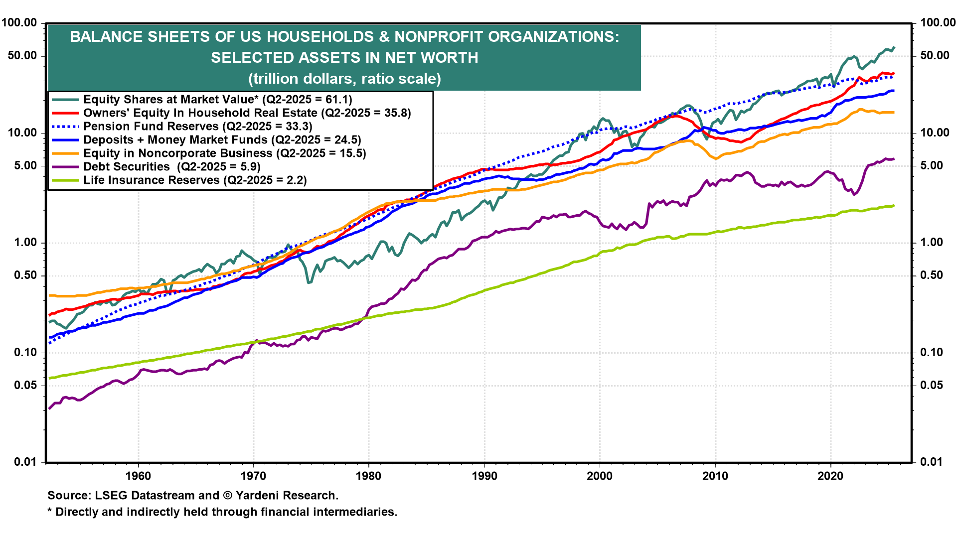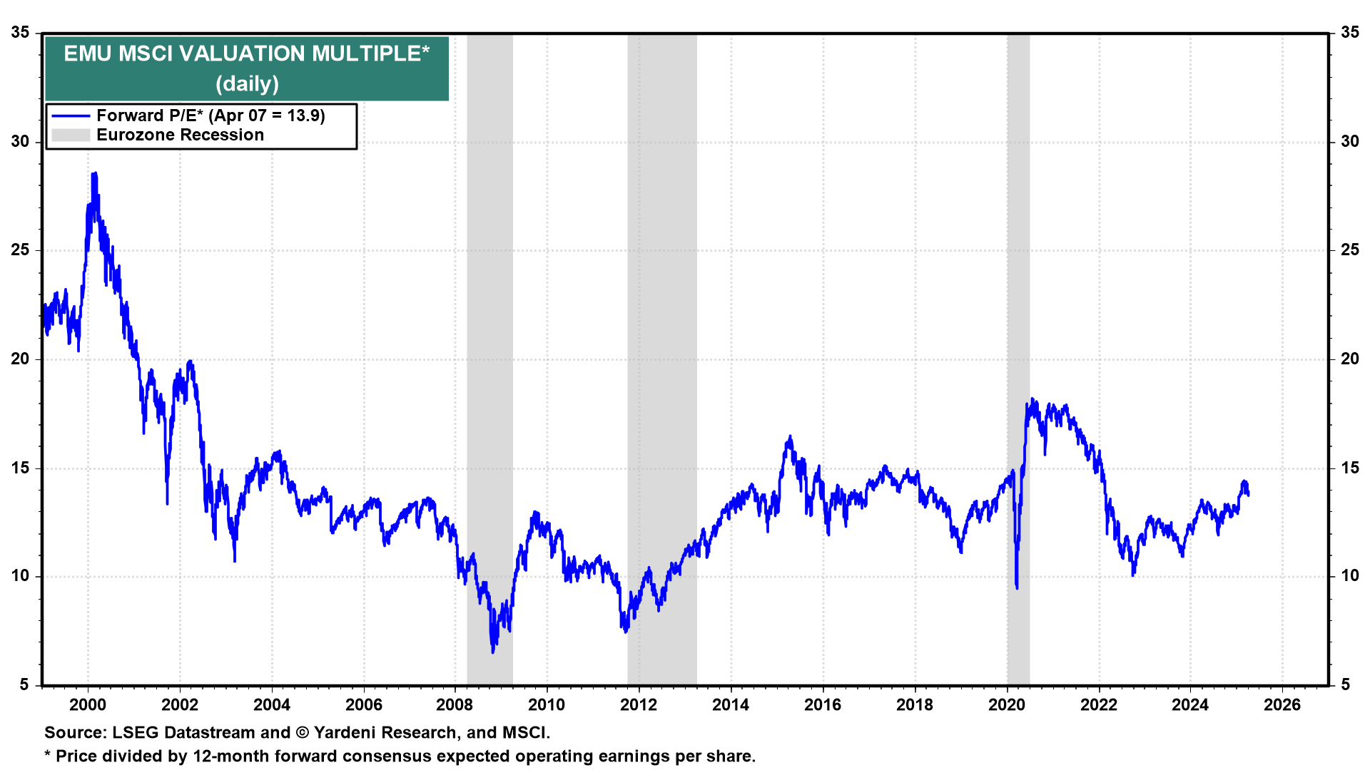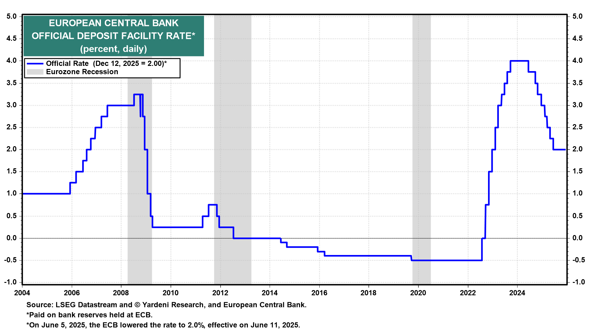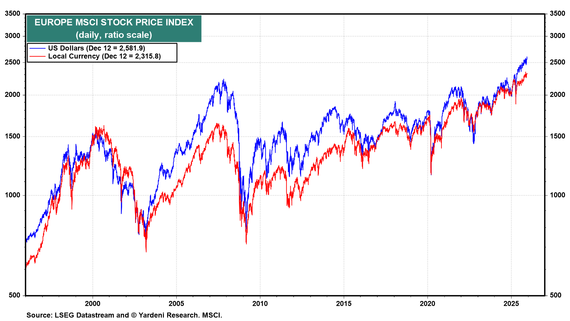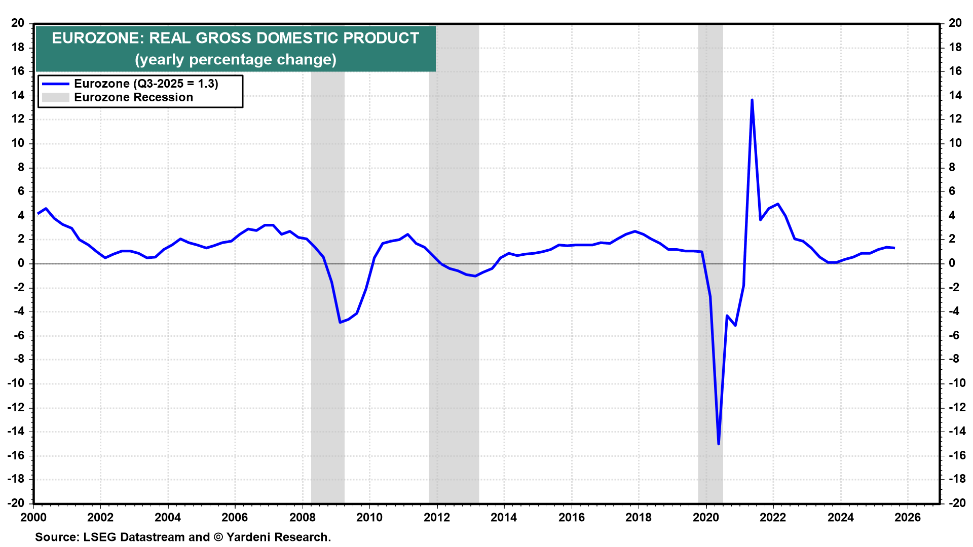 (1) India leads Asian economies. The Reserve Bank of India (RBI) expects India’s real GDP growth to approach the government’s 7.0% target during its fiscal year 2025-26 (Fig. 11). The region remains the world’s fastest growing economy. With the India MSCI trading at 22.6 times forward earnings, however, investors certainly are paying for that growth.