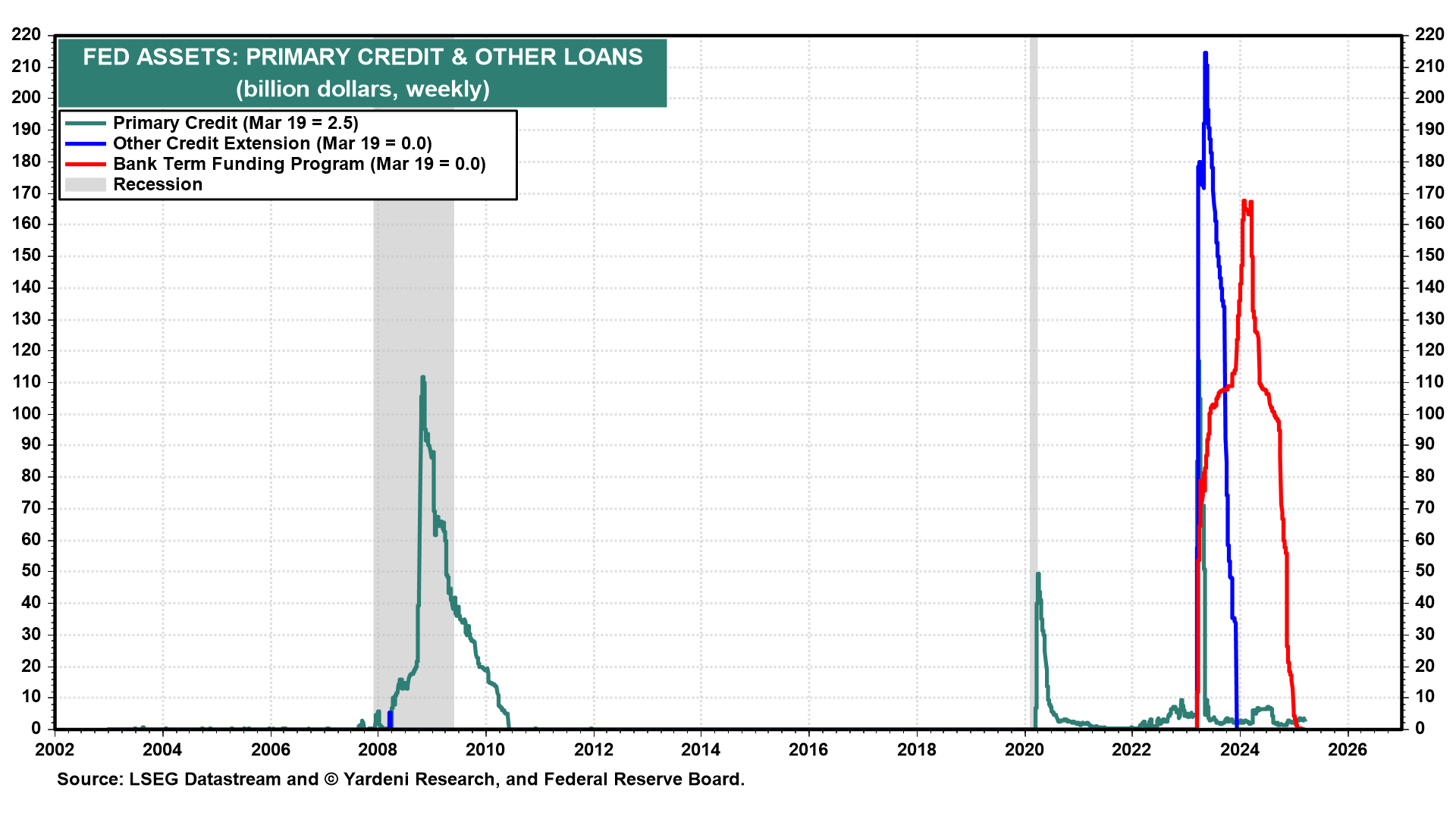 While the S&P 500 Financials’ stock price index has lagged the S&P 500 so far this year, it’s still the index’s fourth best-performing sector ytd through Tuesday’s close: Communication Services (32.7%), Information Technology (26.7), S&P 500 (16.3), Industrials (16.0), Utilities (12.2), Financials (9.9), Health Care (8.6), Energy (5.9), Consumer Discretionary (4.0), Materials (2.9), Consumer Staples (1.3), and Real Estate (-0.3) (Fig. 1).