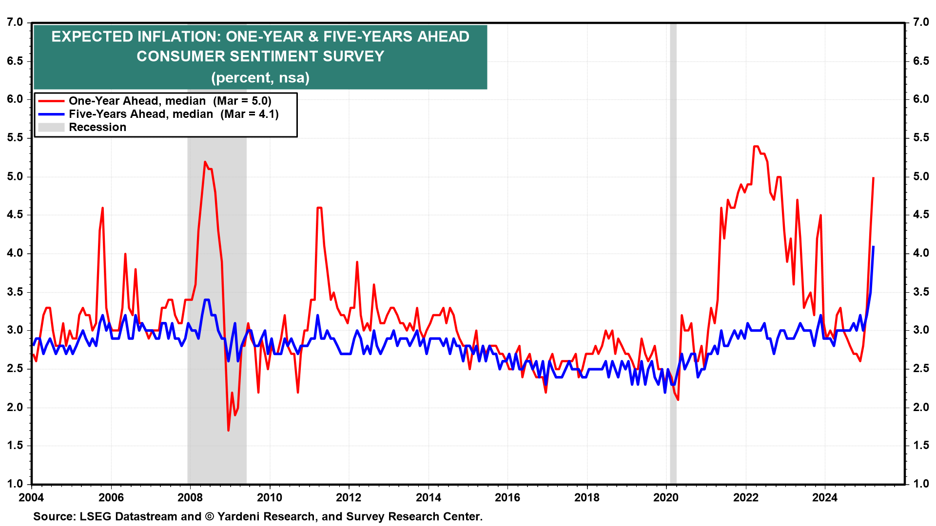 The most widely unanticipated scenario is that Trump 2.0 will cause stagflation. That would be a bearish scenario for stocks, for sure. We include it in our bucket of bearish risks to which we assign a 20% subjective probability.