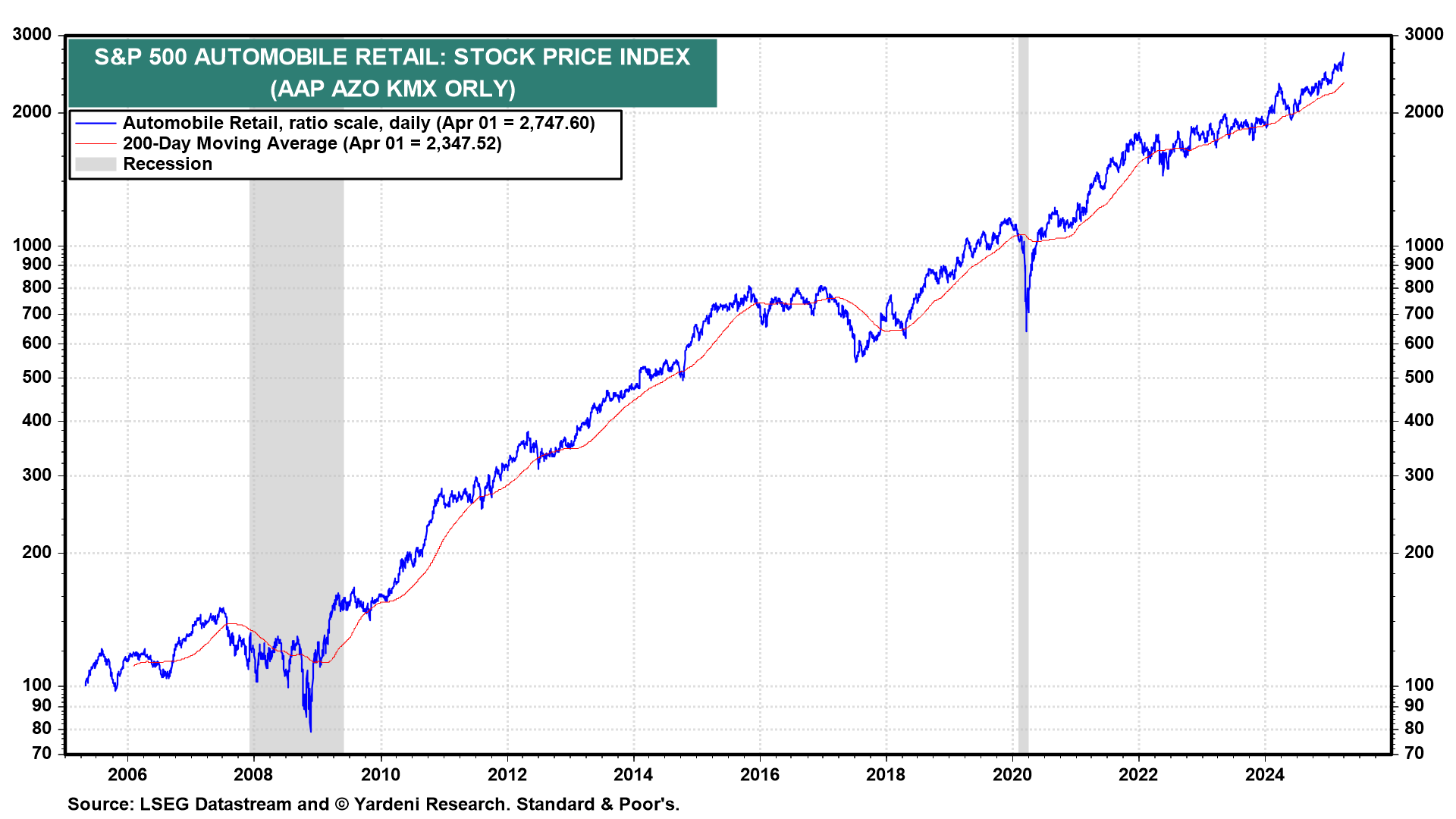 Consumers are still spending. The Redbook retail sales series shows a solid increase of 5.5% y/y through the week of December 27, 2024 (Fig. 11). It has a good correlation with the comparable growth rate for monthly retail sales excluding food services. Consumers also responded to auto dealer discounts. The seasonally adjusted annualized rate for total new-vehicle sales rose to an estimated 17.2 million units in December, up from 16.6 million in November (Fig. 12).