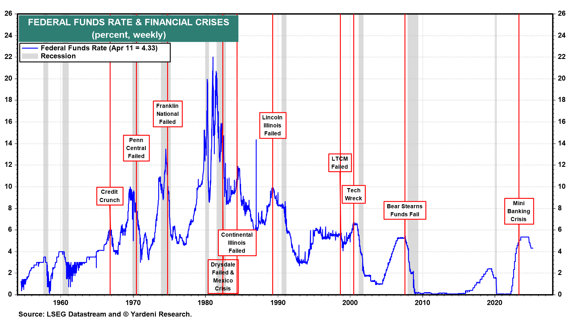 The risk for stocks is that the Bond Vigilantes will be right, sending the yield back to 5%, which was last year’s high. In this scenario, the Fed might be forced to raise the federal funds rate, reviving fears of a recession. Valuation multiples would surely melt down quickly in that case. Again, we put this scenario in the 20% risk bucket.