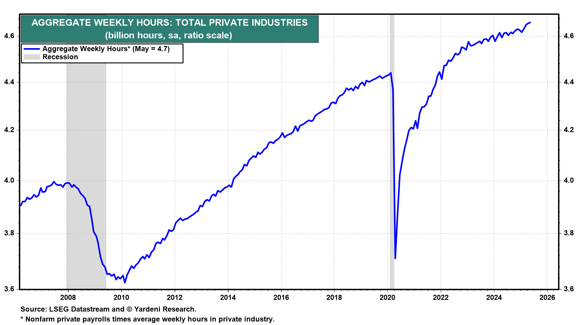 (1) Productivity versus labor force. Productivity increases when workers produce more output for every hour they work. That productivity rate times the number of hours worked equals real GDP growth. Increasing hours worked was a major contributor to strong real GDP growth over the past two years (Fig. 11).