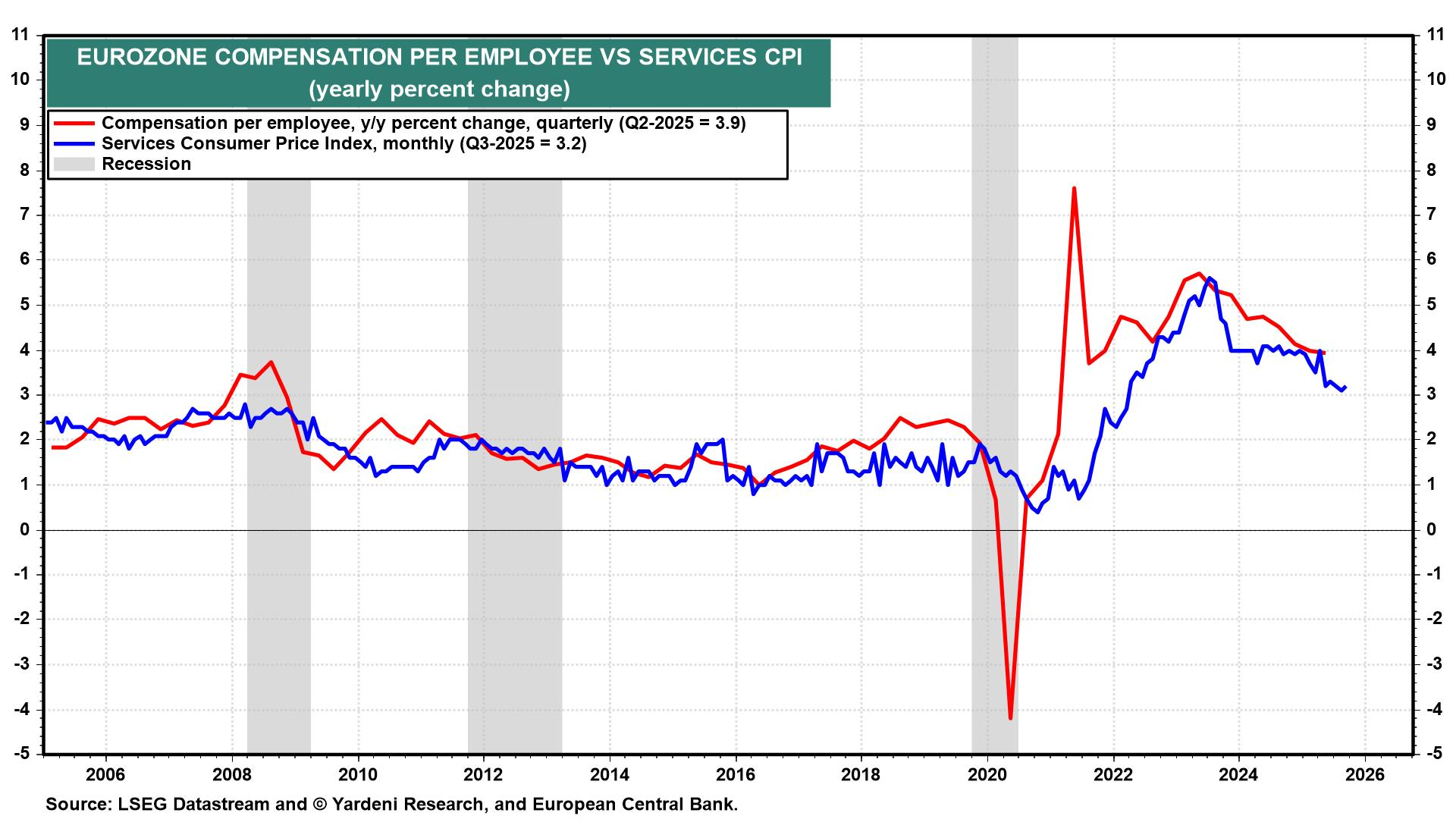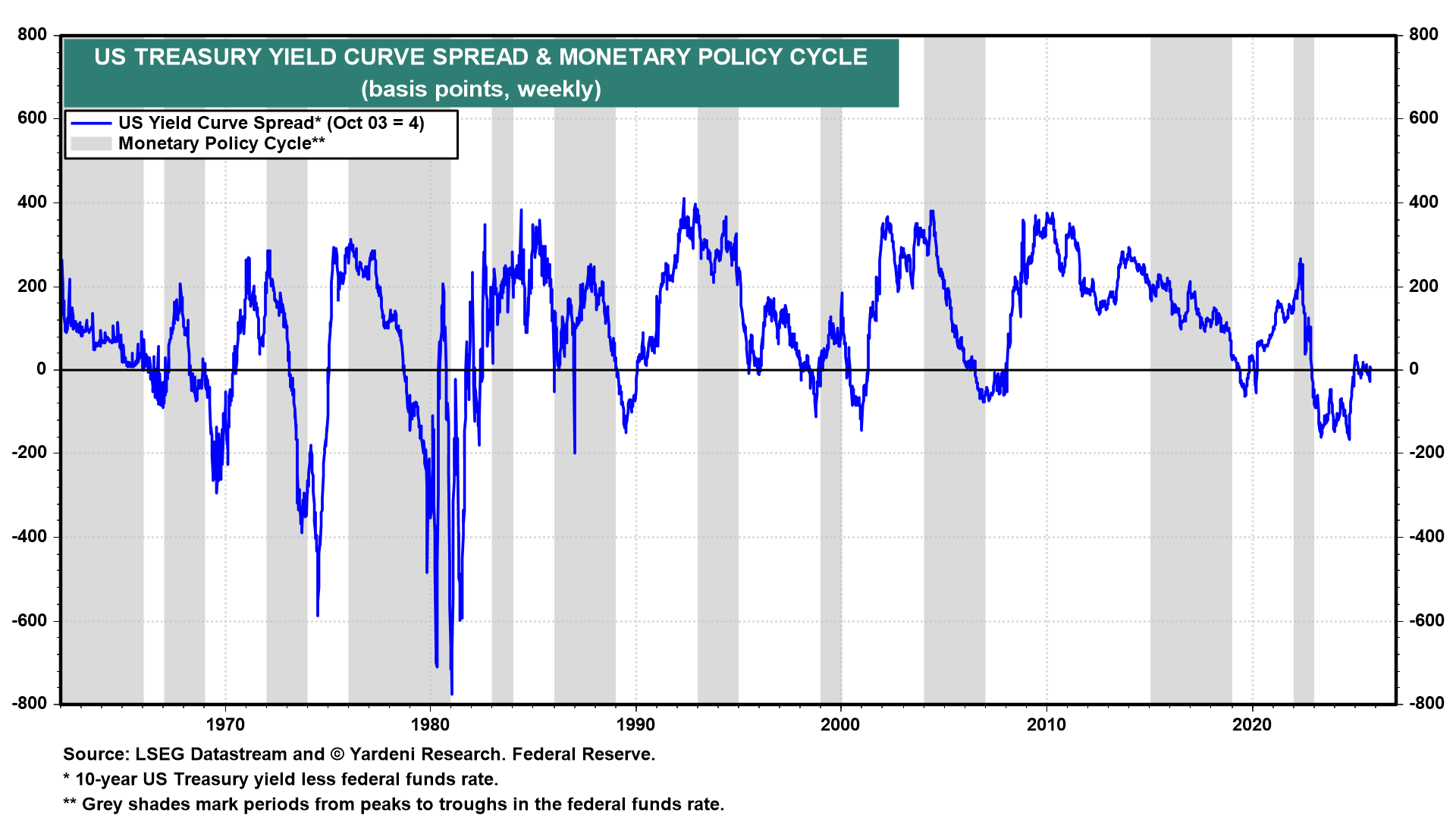 The Fed: Powell’s Hawkish Dovishness. In Federal Reserve Chair Jerome Powell’s latest speech, on Tuesday in Philadelphia, he acknowledged that the labor market faces rising risks to employment. He also maintained that current monetary policy is restrictive, with the federal funds rate above its neutral level, restrictive enough to keep inflation on course to drop to the Fed’s 2.0% y/y goal. Moreover, the balance-sheet runoff—a form of quantitative tightening—may be nearing completion, as reserves are approaching appropriately “ample” levels.