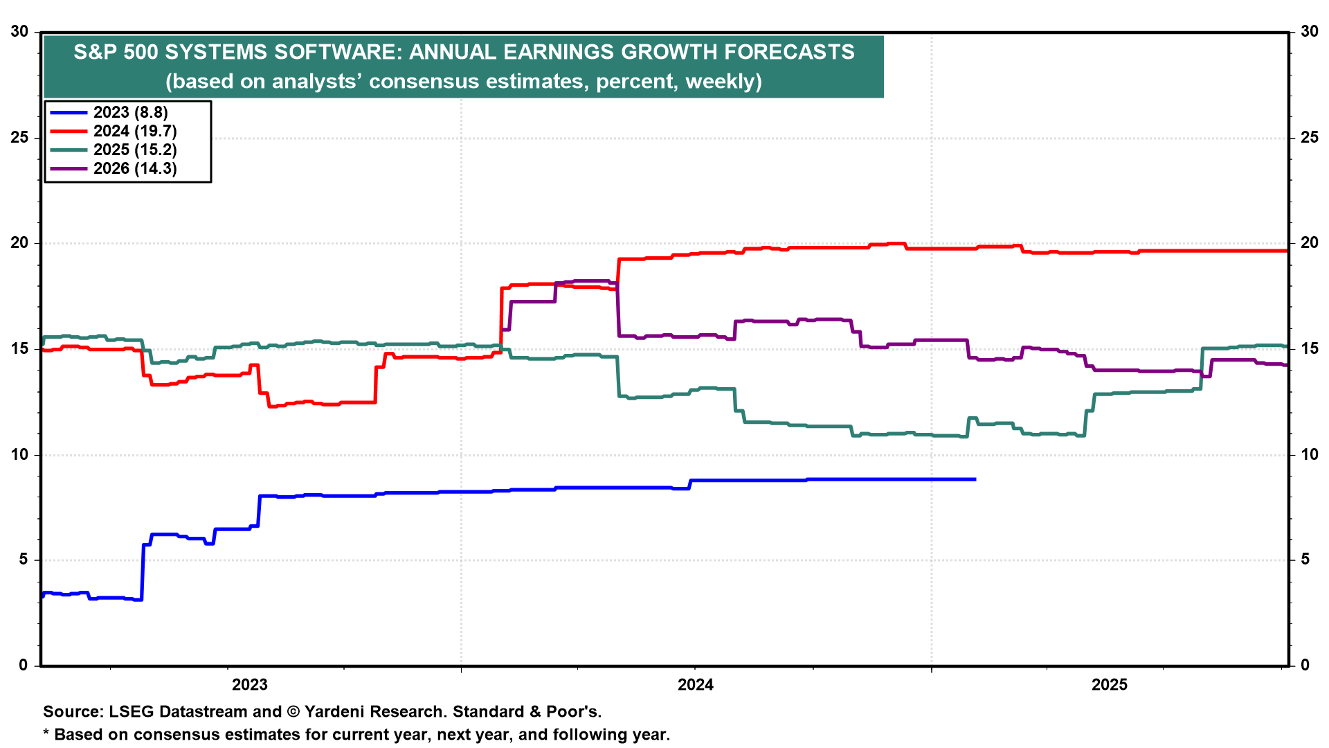 Executive Summary: Fed Chair Powell came across as hawkishly dovish in his latest public remarks, observes Melissa. He noted risks to the labor market, the near completion of the Fed’s quantitative tightening, and inflationary pressures that are only temporary—all dovish points. But he warned of risks in whatever action the Fed takes. Other Fed officials speaking recently echoed Powell’s measured approach. … Also: William discusses the risks posed by the yen carry trade, a strategy that gains appeal as the yen falls. If this speculative trade fails, it puts markets everywhere at risk. … And: Joe analyzes S&P 500 companies’ estimate revisions data, which he finds to be impressively strong for most sectors.