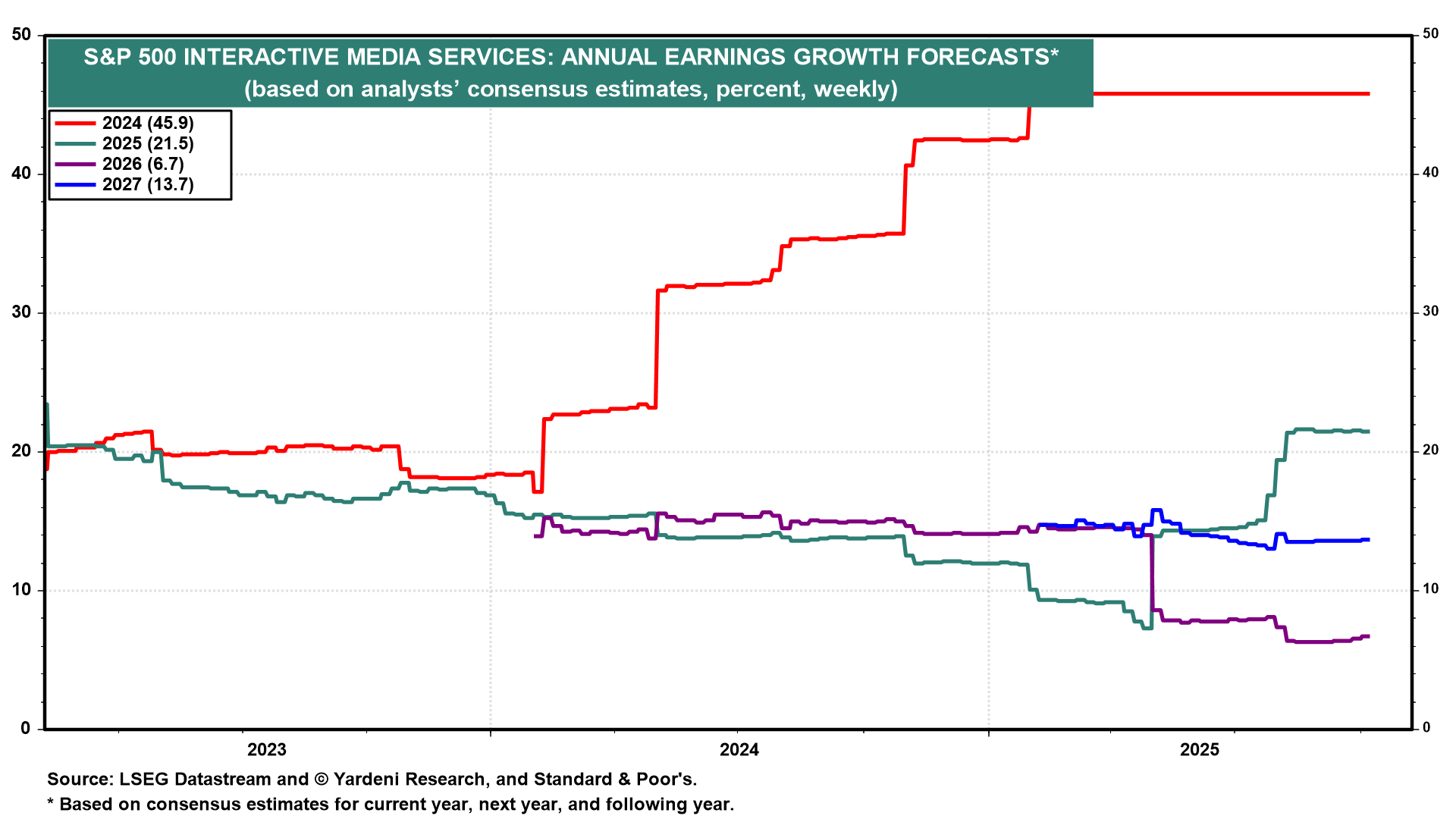 (4) April 28, 2025: “The recent stock market correction partly reflects late January’s revaluation of tech stocks in reaction to the Deep Six ramifications. Now investors may be embracing the Mag-7 once again.”