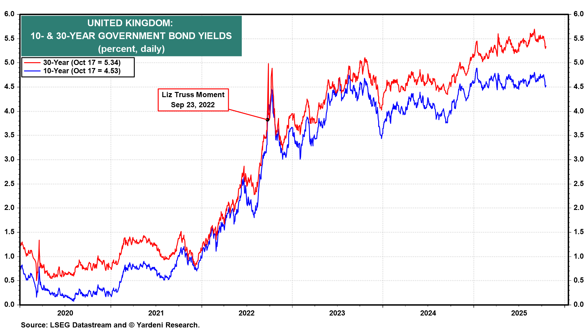 (2) London’s baggage. Then there’s the baggage London carried into this global moment. Three-plus years on, the trauma from the Liz Truss crisis remains. In late 2022, then Prime Minister Truss’ fiscal loosening plan triggered an epic surge in bond yields.