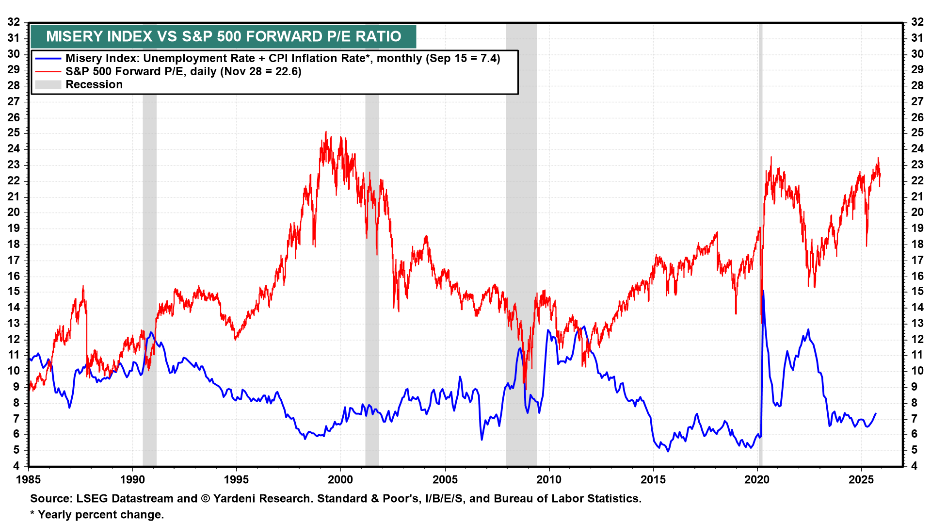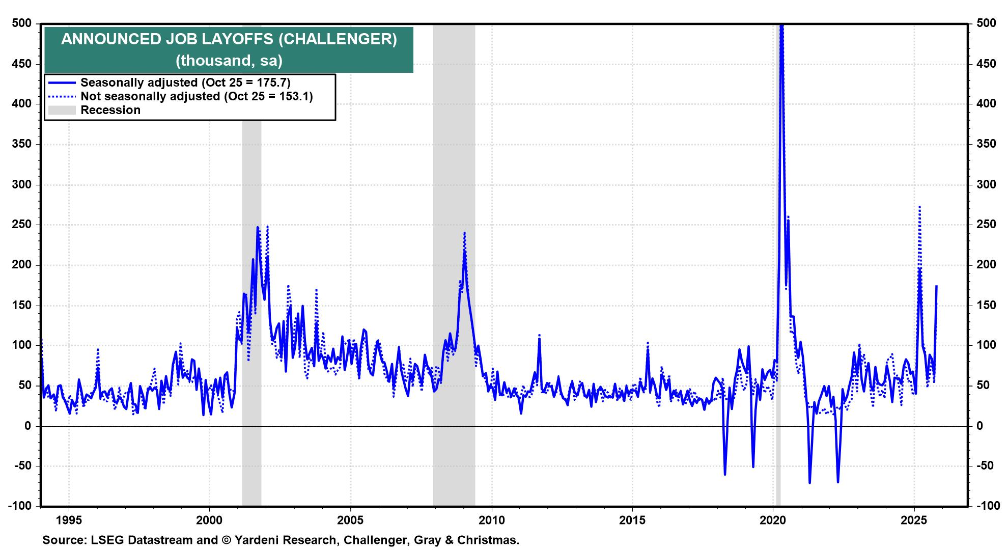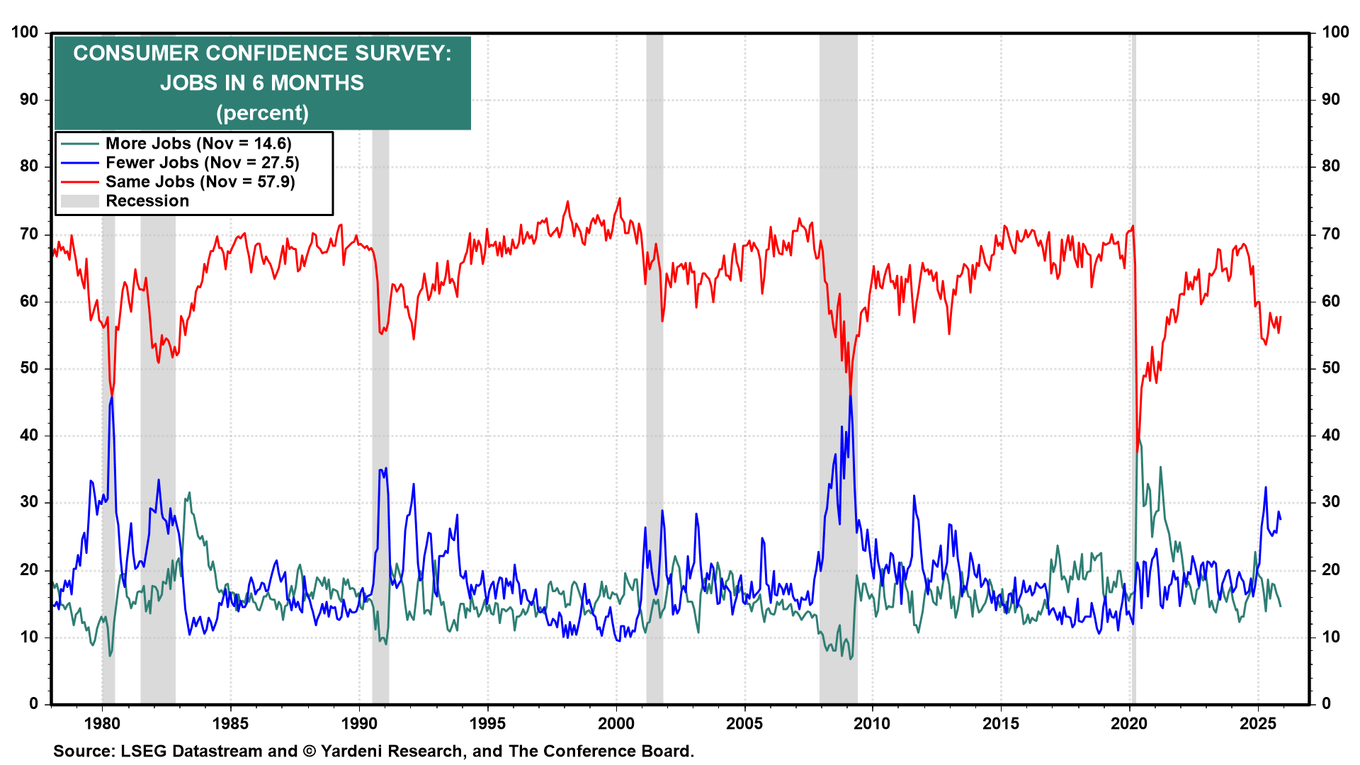 (4) Eye-popping US data. Still, Australia’s 2026 is looking very different from the US’s. Recession talk is hard to shake. In mid-November, Fed Governor Christopher Waller said he saw “eye-popping” signs the economy is “significantly slowing.”