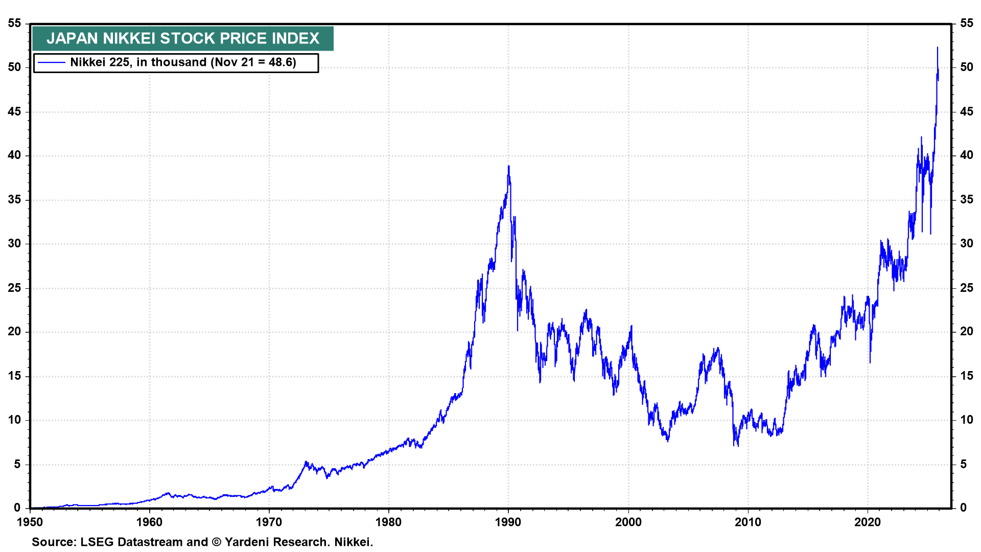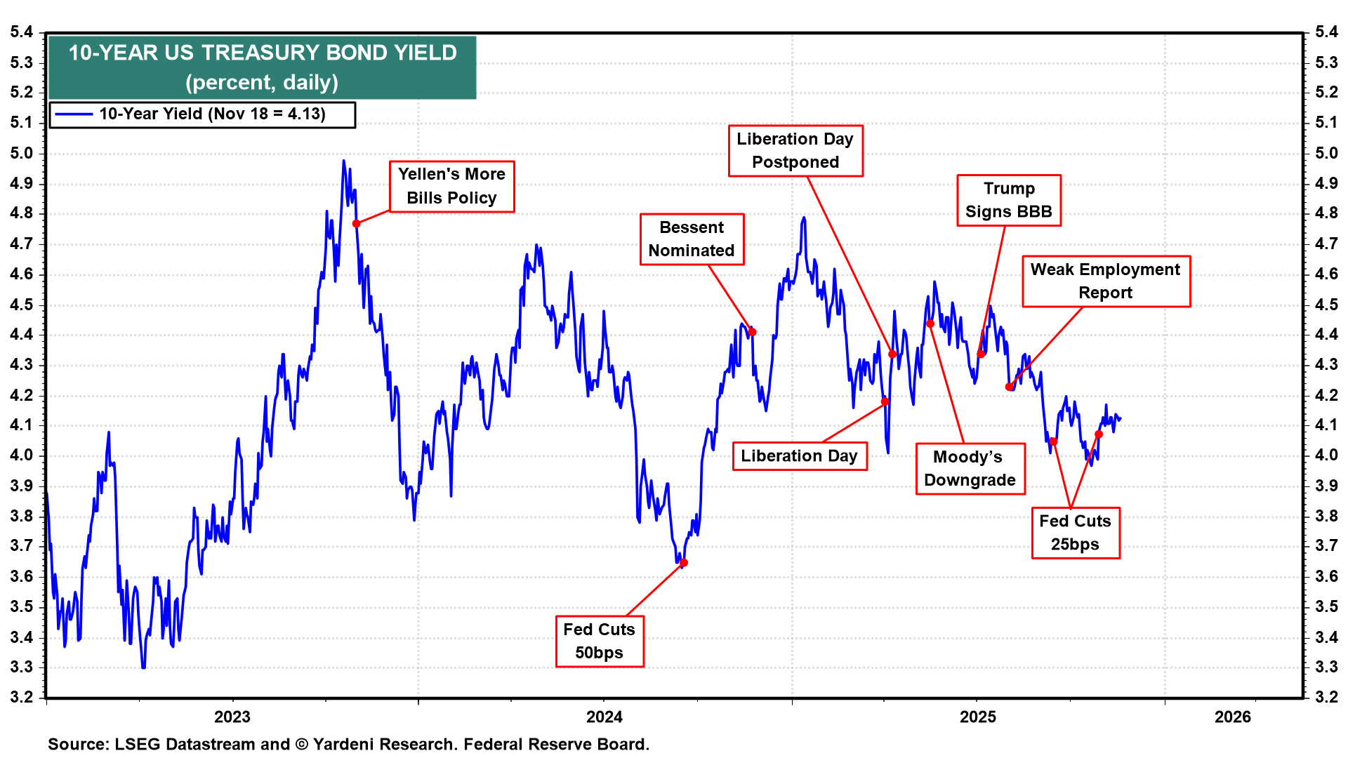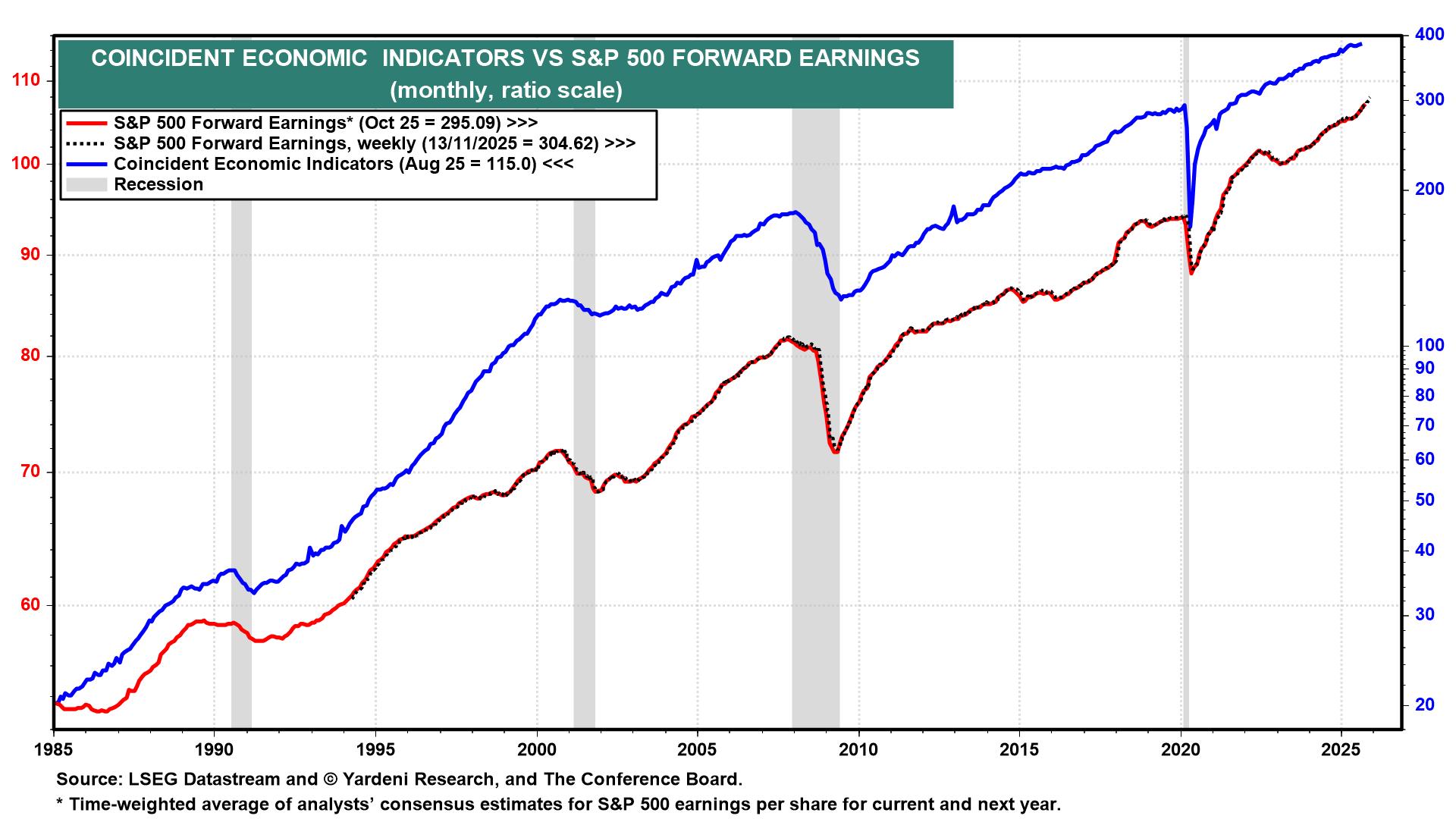 (4) Eye-popping US data. Still, Australia’s 2026 is looking very different from the US’s. Recession talk is hard to shake. In mid-November, Fed Governor Christopher Waller said he saw “eye-popping” signs the economy is “significantly slowing.”