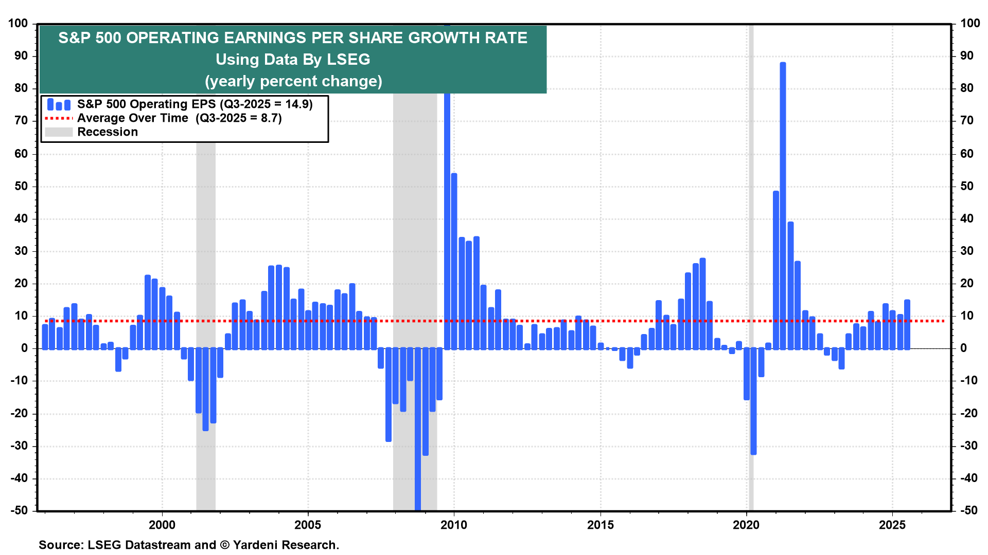 (3) YRI’s optimistic scenario. But while Burry flags hidden excesses and HSBC outlines a funding gap, the macro backdrop still argues for a multi-year run of stronger productivity and profits. That’s the crux of our Roaring 2020s scenario, which we believe is solidly underway.