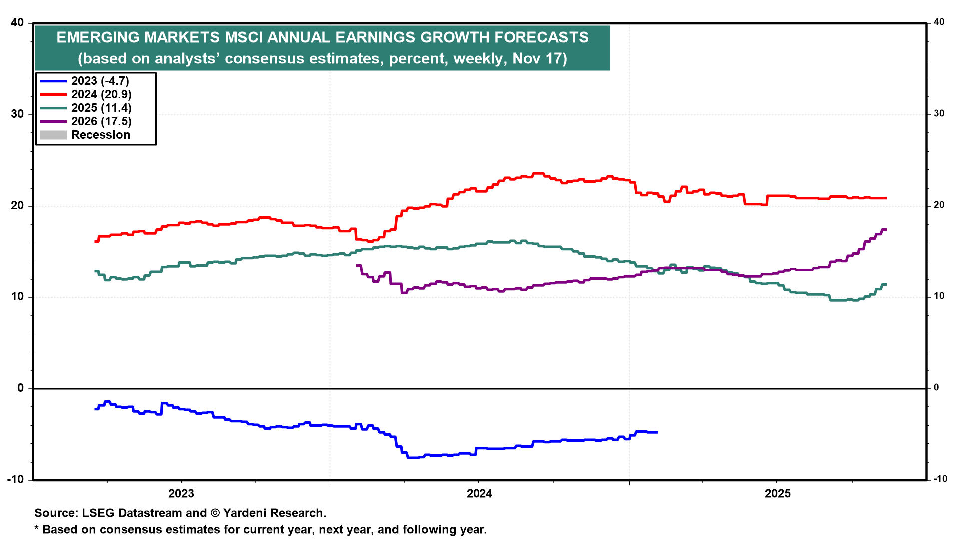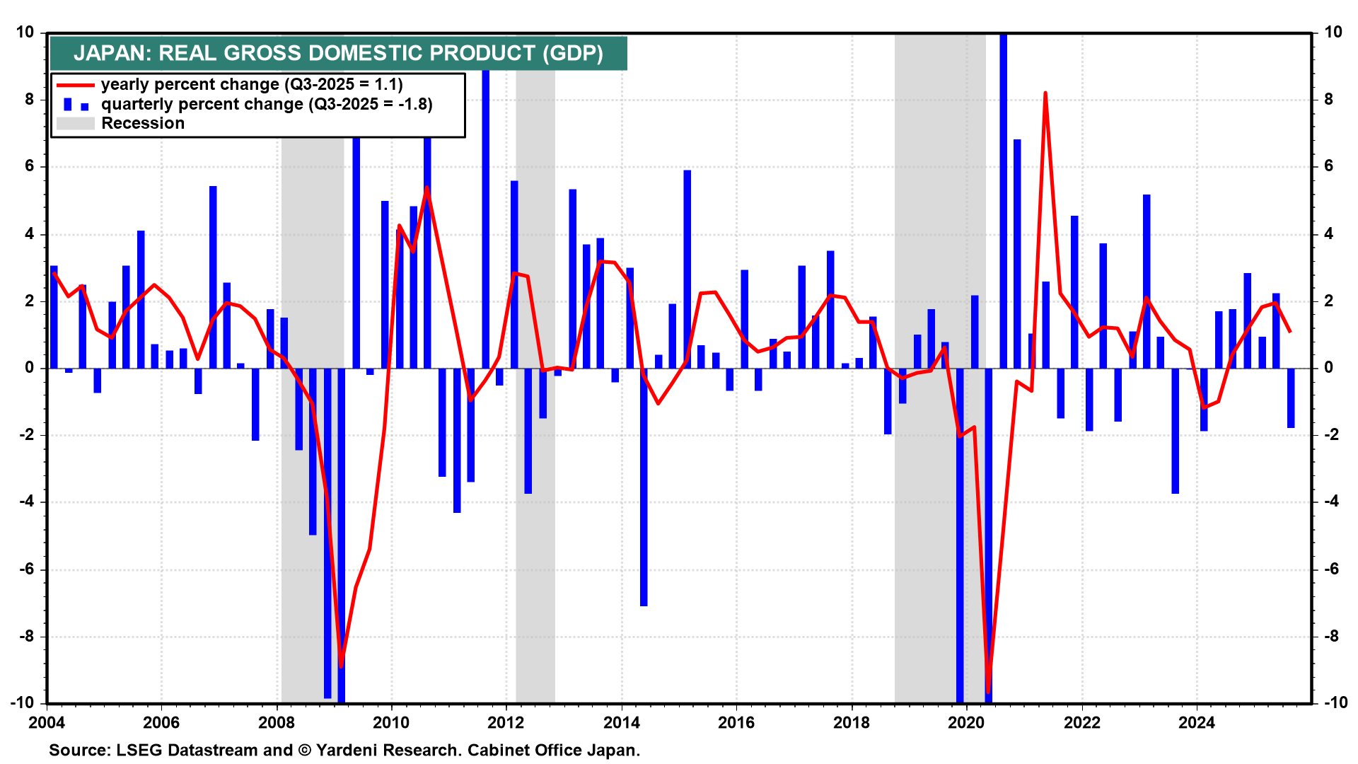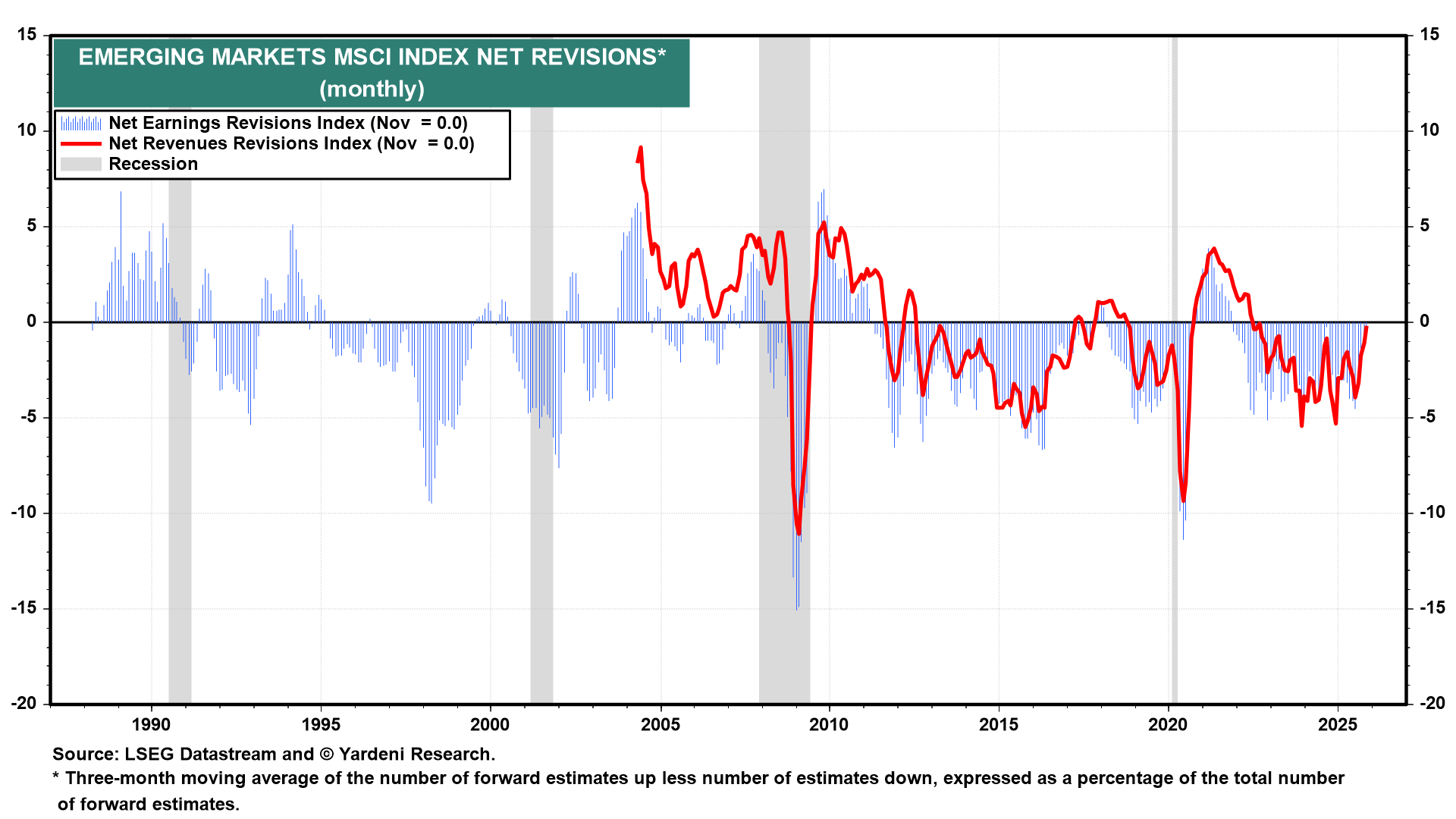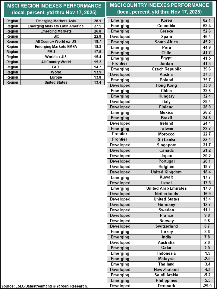 Even China’s economy could be about to surprise to the upside. In yesterday’s Morning Briefing, we discussed Goldman Sachs’ expectation that GDP in Asia’s biggest economy could accelerate to 6% in 2026 from around 5% this year (Fig. 9).