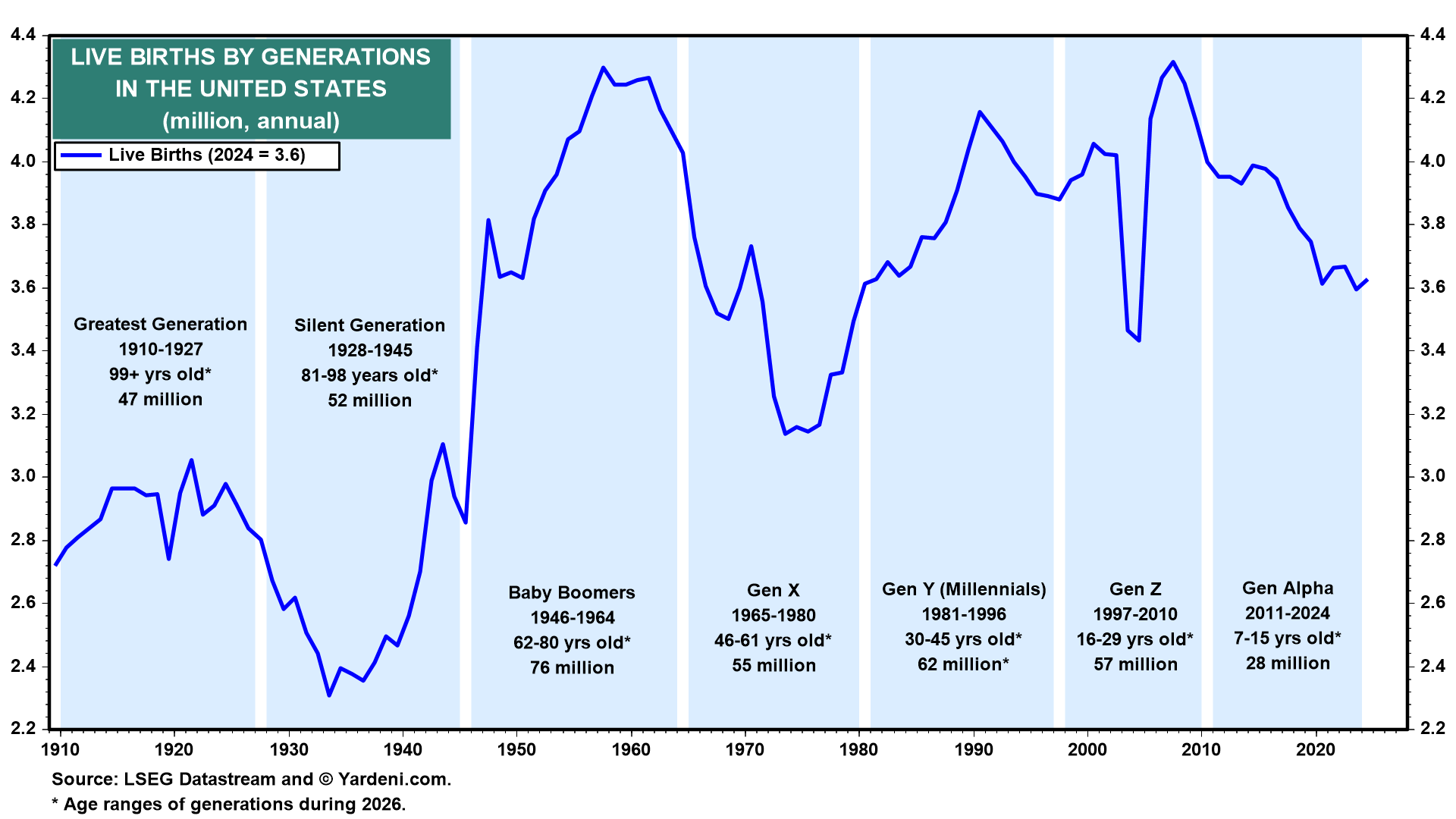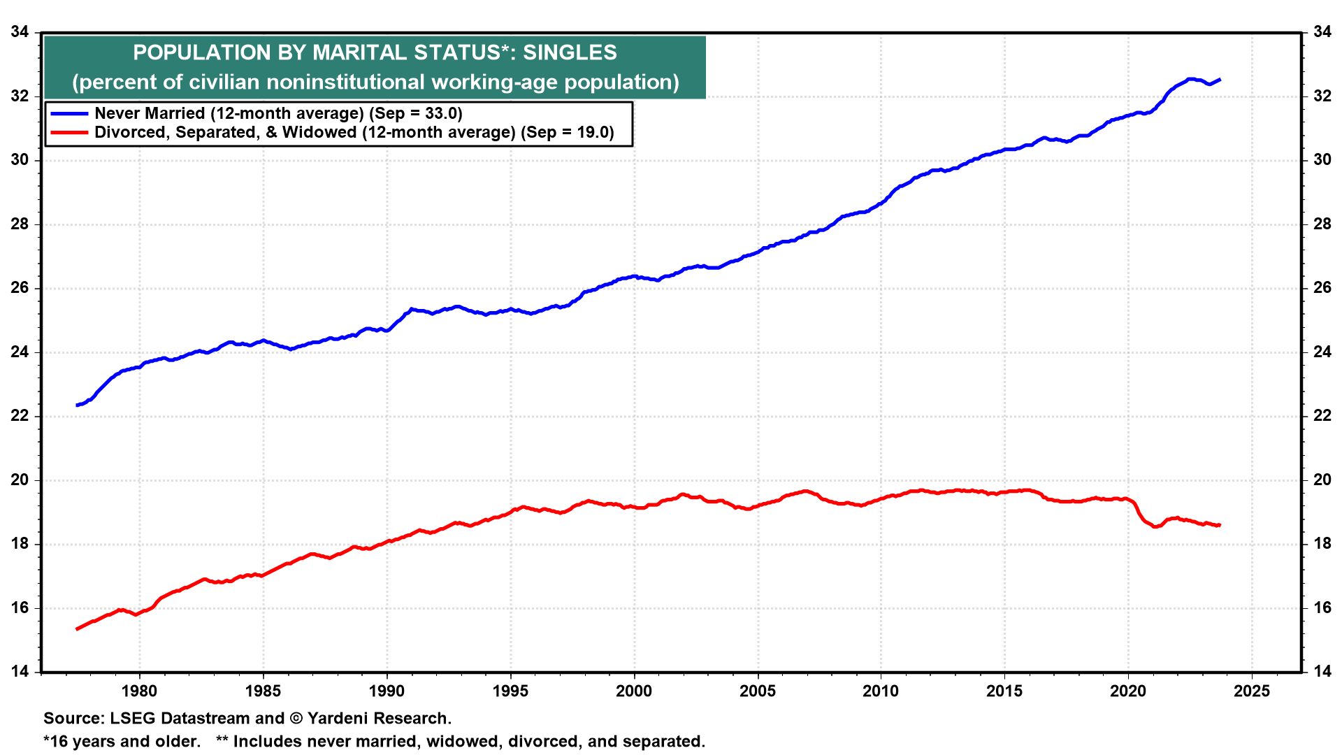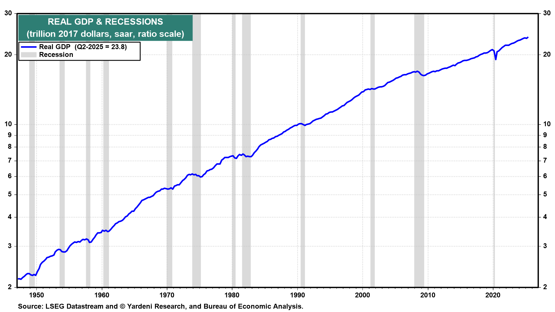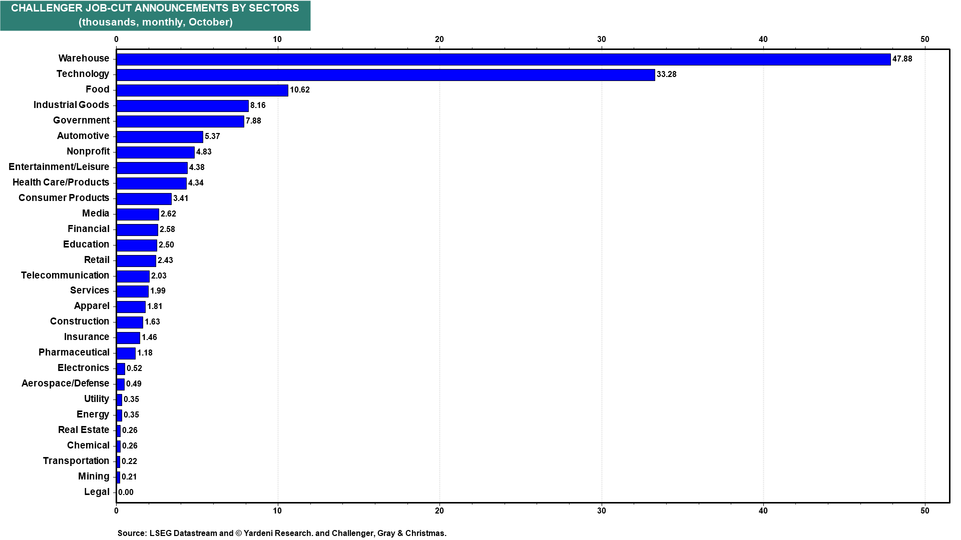 (3) Productivity doubling. Widespread adoption of technologies like AI, automation, robotics, and perhaps quantum computing should continue to make workers more productive and offset the much slower labor force growth. Why do we expect companies to invest heavily in new tech? The shortage of skilled workers creates an investment imperative to augment current staff. It's one of the positive symptoms of a full-employment economy.
