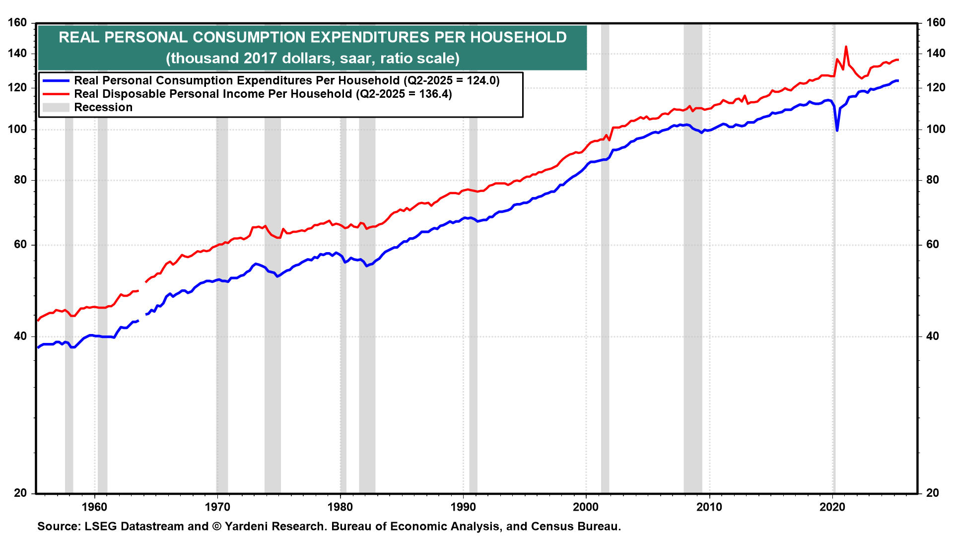 (1) 2026 revenues are rising now. The S&P 500’s consensus aggregate 2026 revenues forecast is unchanged ytd and improved after being down 1.6% ytd at the end of July. Typically, the following calendar year forecasts would be about 1%-2% lower by now.