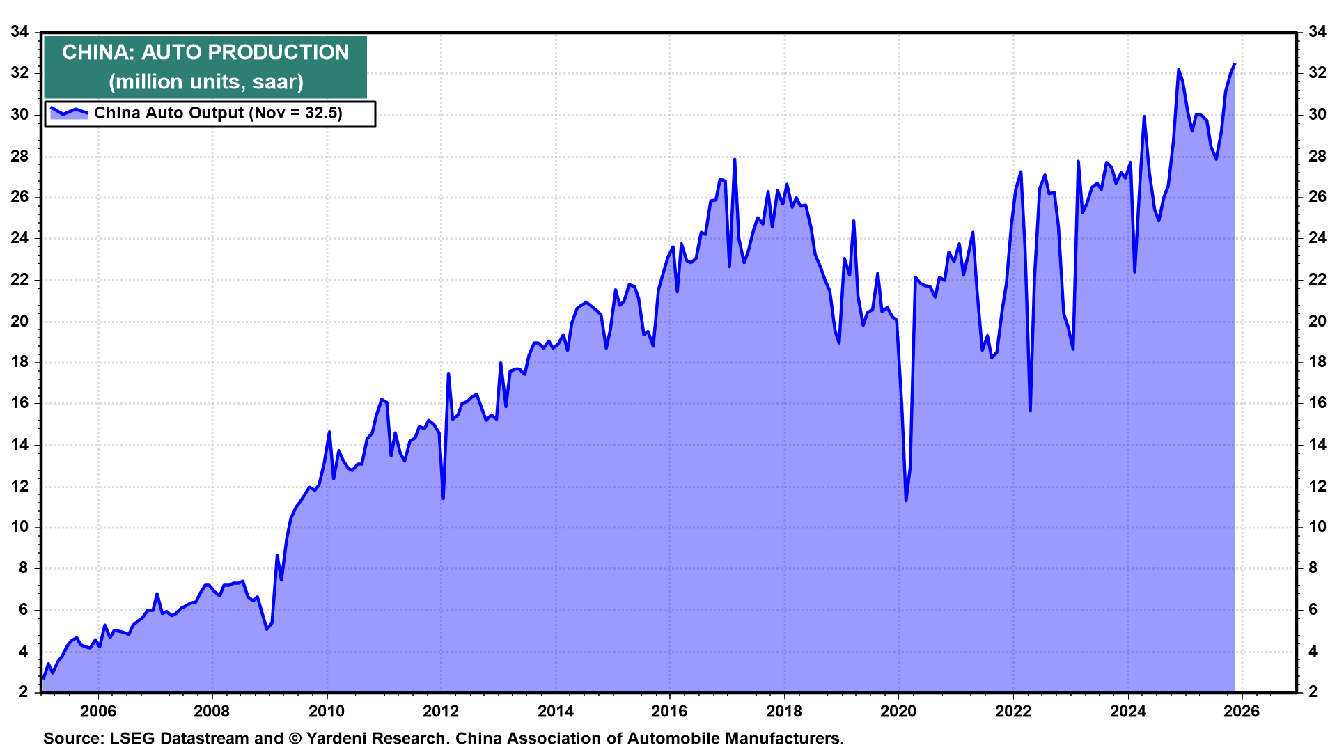 While most Asian products will see Mexican tariffs capped at 35%, certain categories, including autos, will face the full 50% rate. That is intentionally aimed at China’s vehicle exports, which in total have scaled rapidly to record levels (Fig. 11). In the first half of 2025, China’s auto exports to Mexico climbed about 31% y/y.