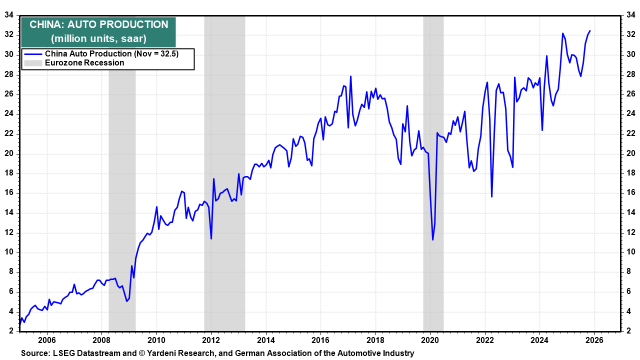 (4) Chinese overcapacity. By announcing its own heavy tariffs on Chinese imports, Mexico isn’t just currying favor with the US but also is trying to avoid becoming the dumping ground for Chinese overcapacity as US policymakers work to limit US demand for Chinese goods through new tariffs and barriers to trade (Fig. 10). Mexico’s new tariff law effectively names the pressure points, including autos and auto parts.