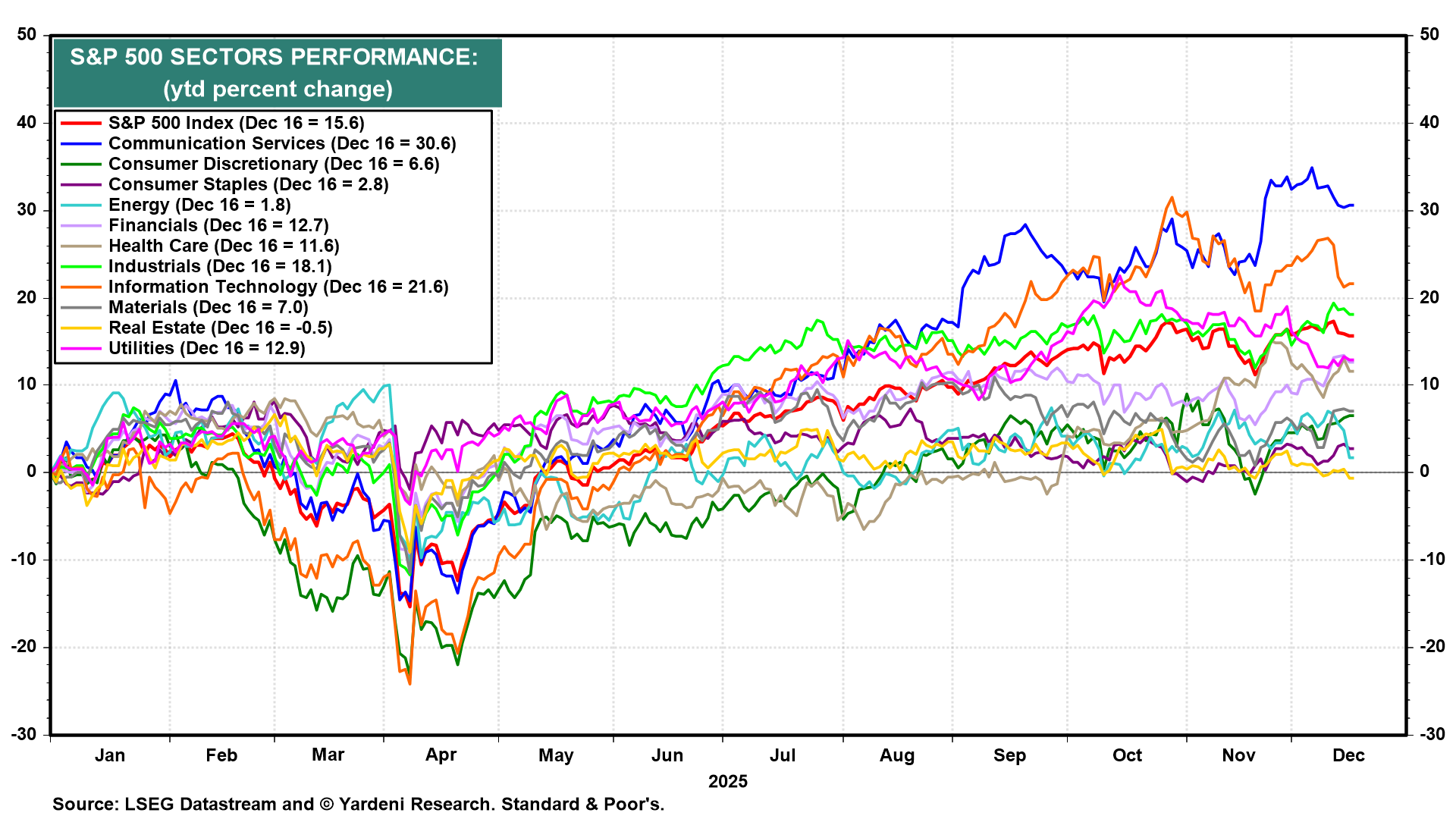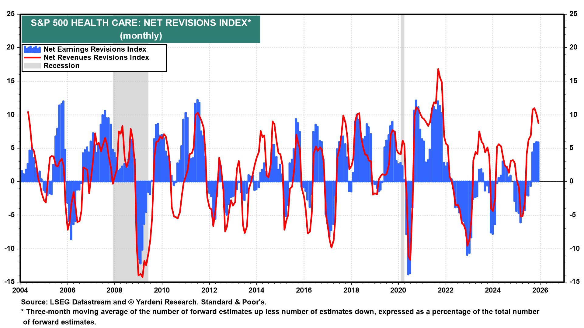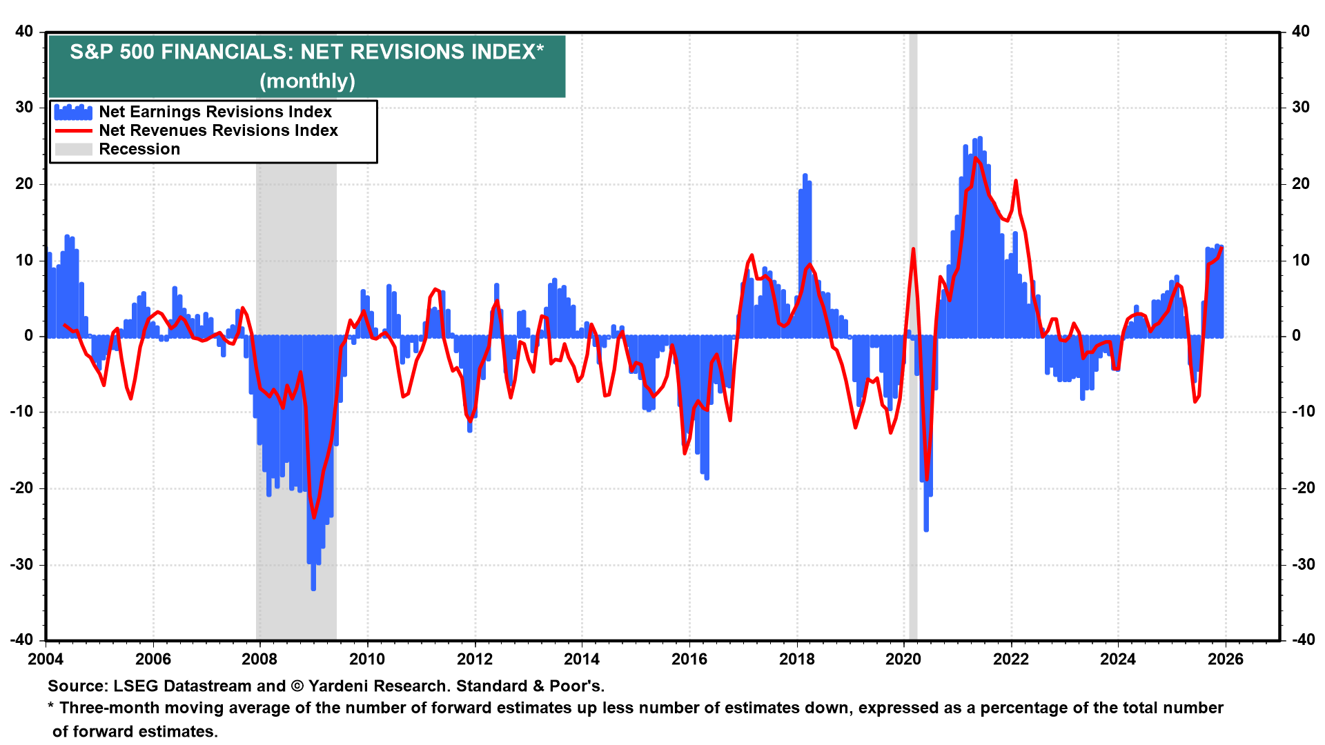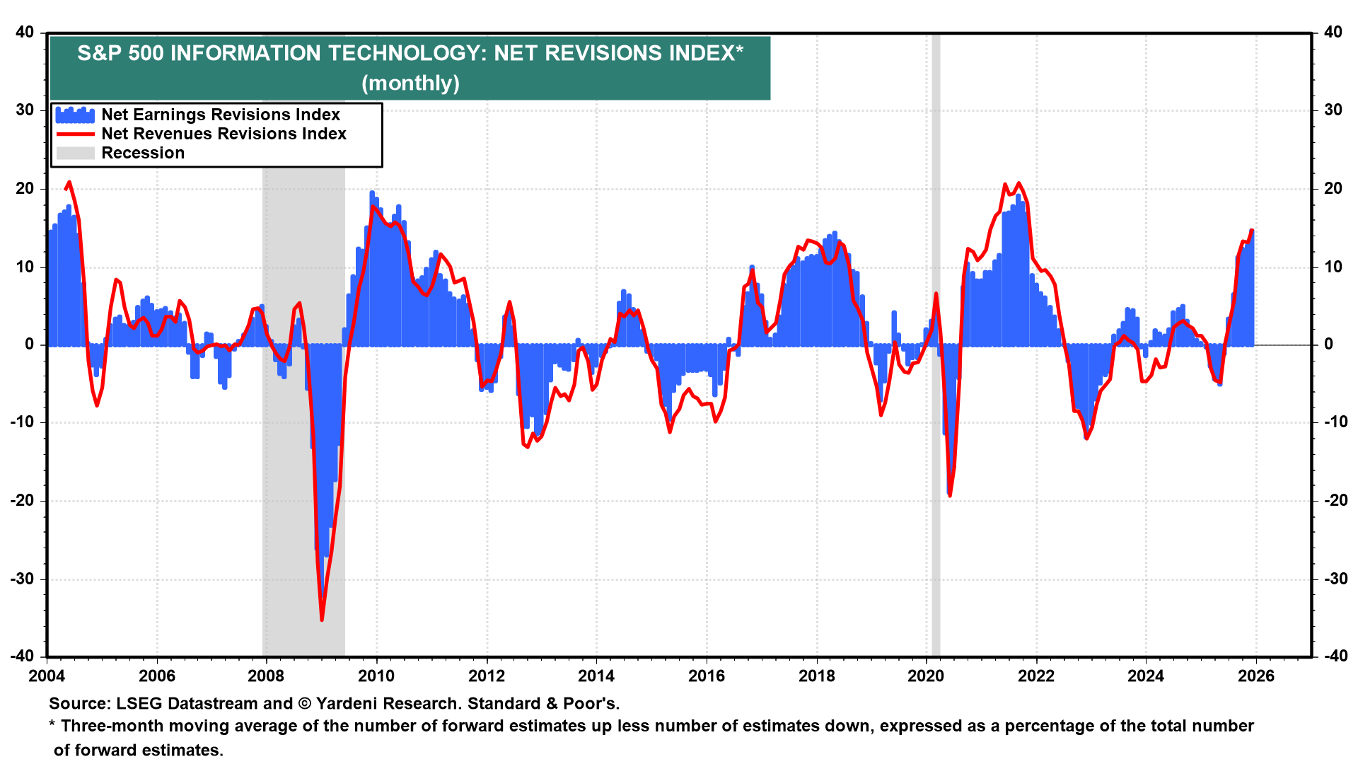 (2) Many sectors have positive NERI. Seven S&P 500 sectors recorded positive NERI for a fourth straight month in December, the most since August 2024 and up from five sectors in August. That’s a notable improvement from May, when only Utilities’ NERI was positive.