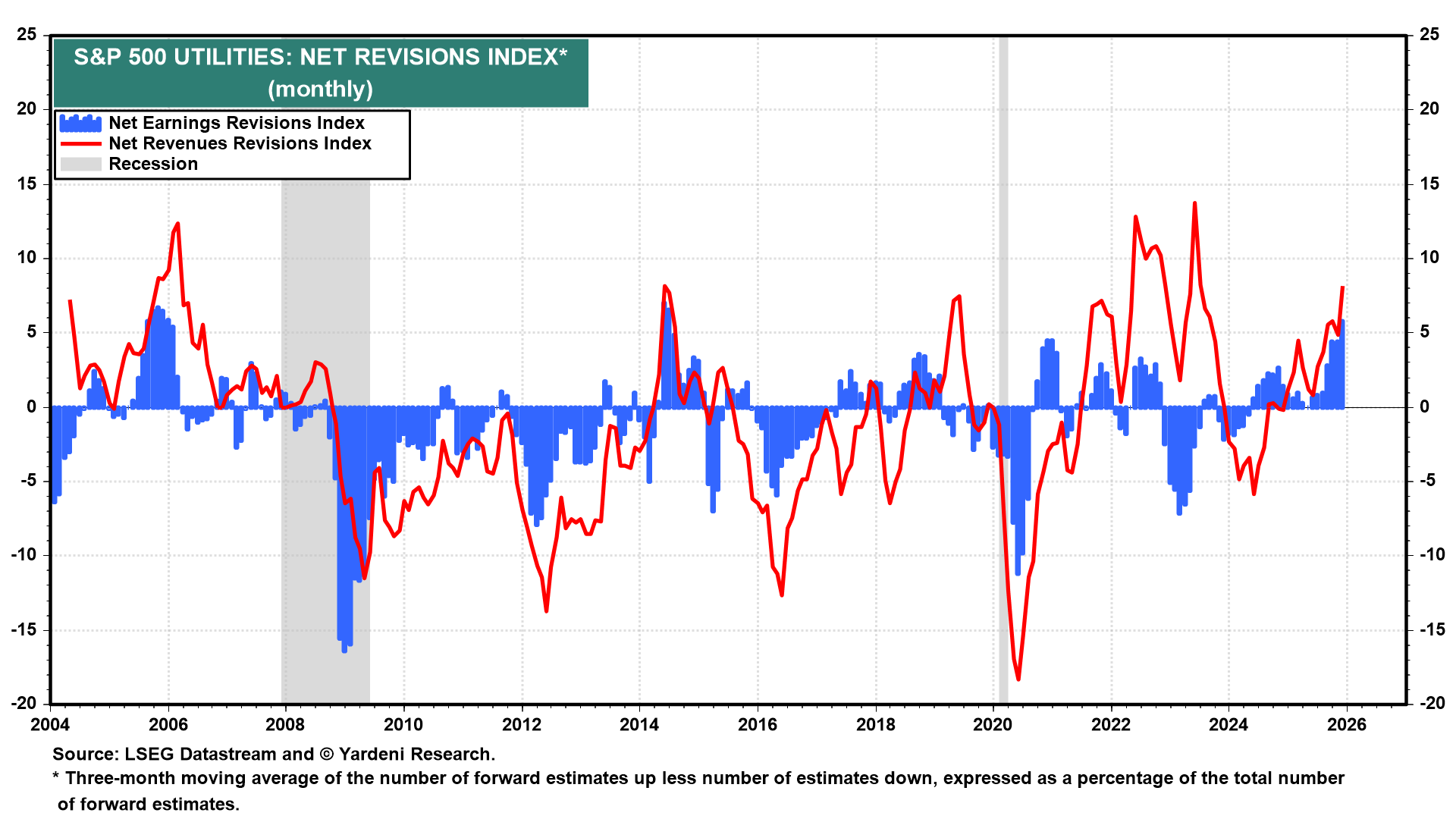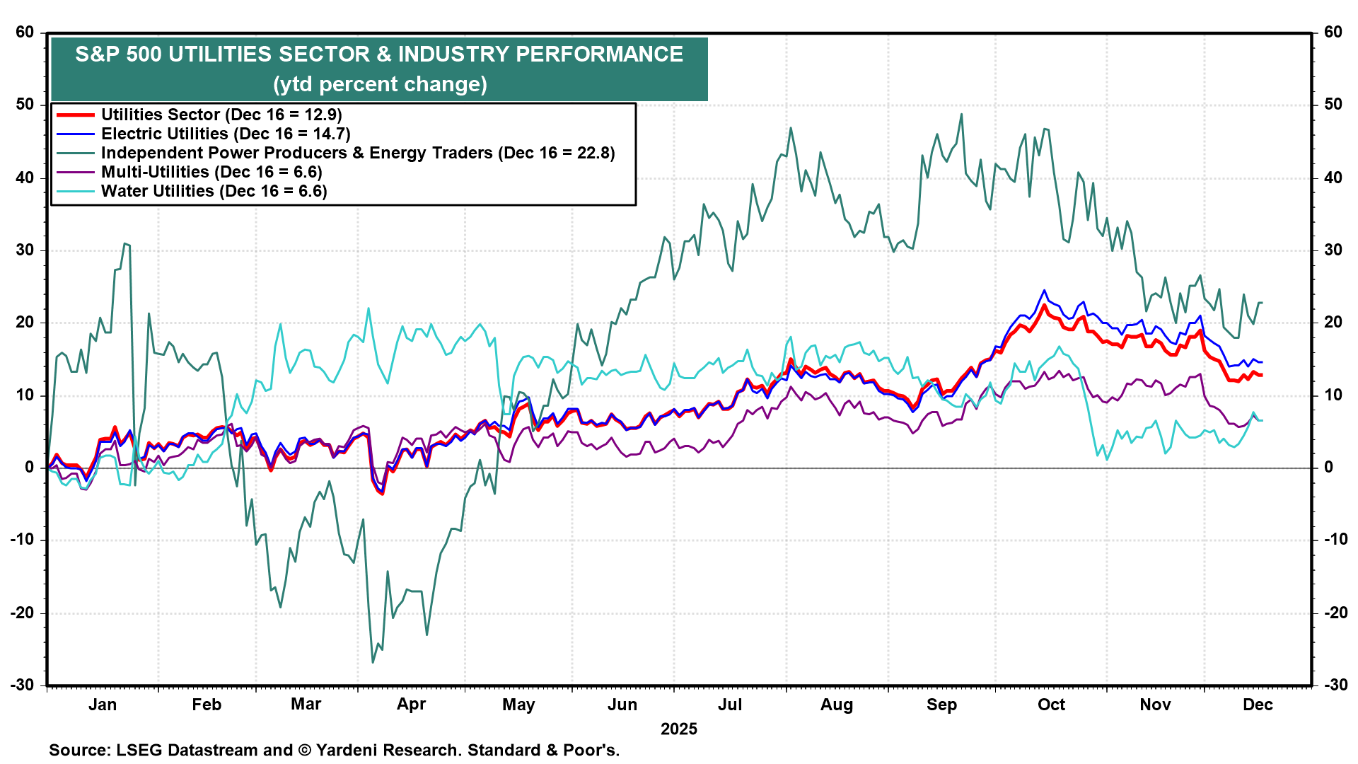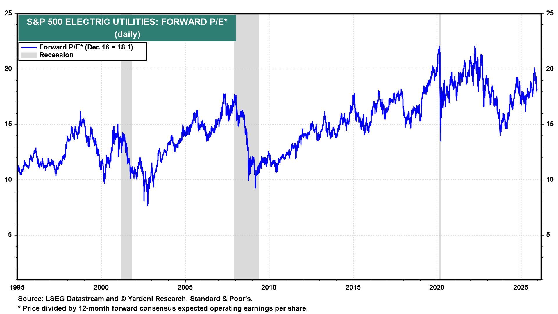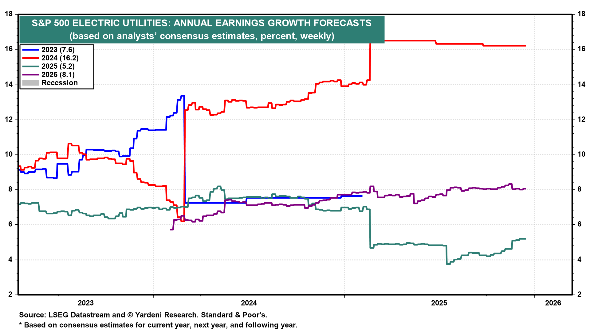 (3) What could dim the lights? Even the traditionally safe utilities sector has clouds on the horizon that should be watched. The largest appears to be growing consumer outrage over higher utility bills. Consumers don’t care that data center demand has increased, pushing up electricity prices. They see an increase in their monthly bill, and they’re letting politicians and regulators know that they’re madder than heck.