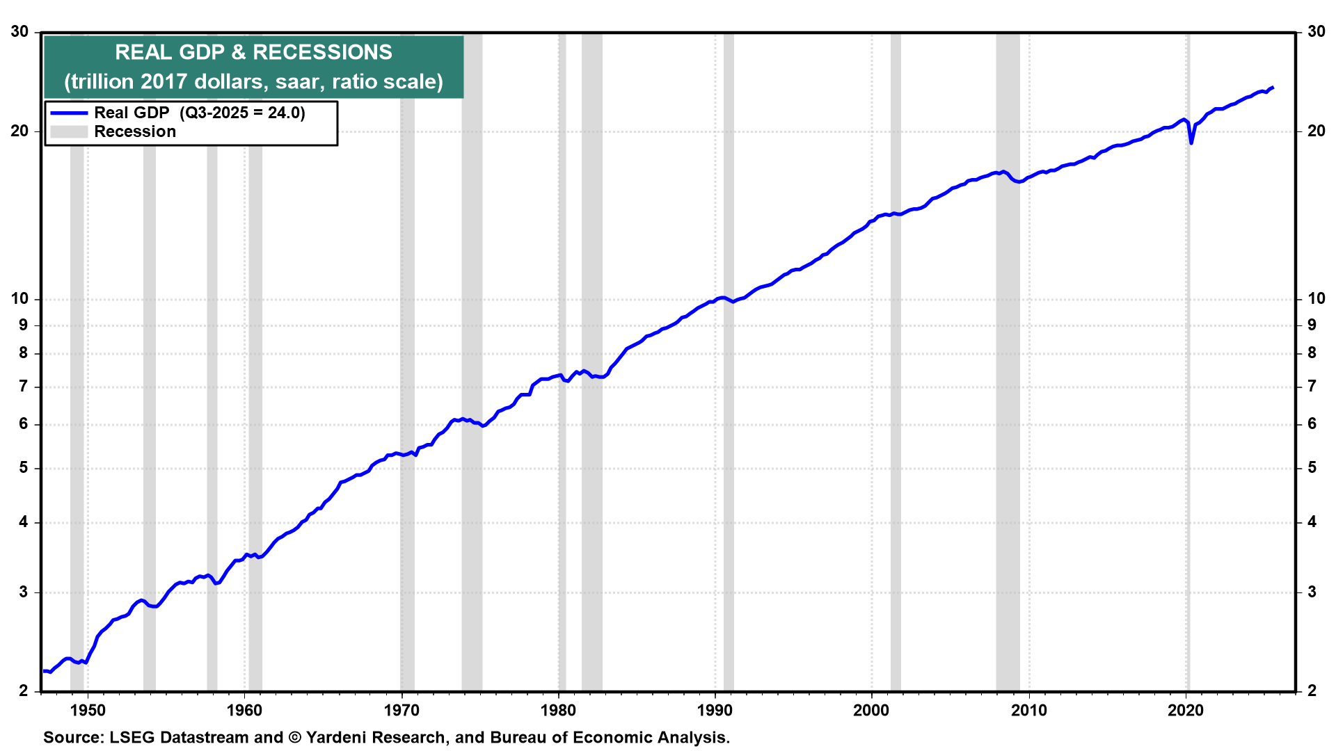 Strategy: Ten Straight Quarters of Earnings Growth! Here we are in “confession season,” and you can hear a pin drop. Typically, this is the time that managements warn the Street that analysts’ estimates are too high, and down they come. Not this time. Having over-cut estimates when management guidance was absent during Trump’s Tariff Turmoil, analysts have been finetuning their estimates higher in recent quarters—that’s why Q2 and Q3 earnings warnings likewise were sparse. Might this be setting the stage for yet another epic earnings surprise in Q4?
