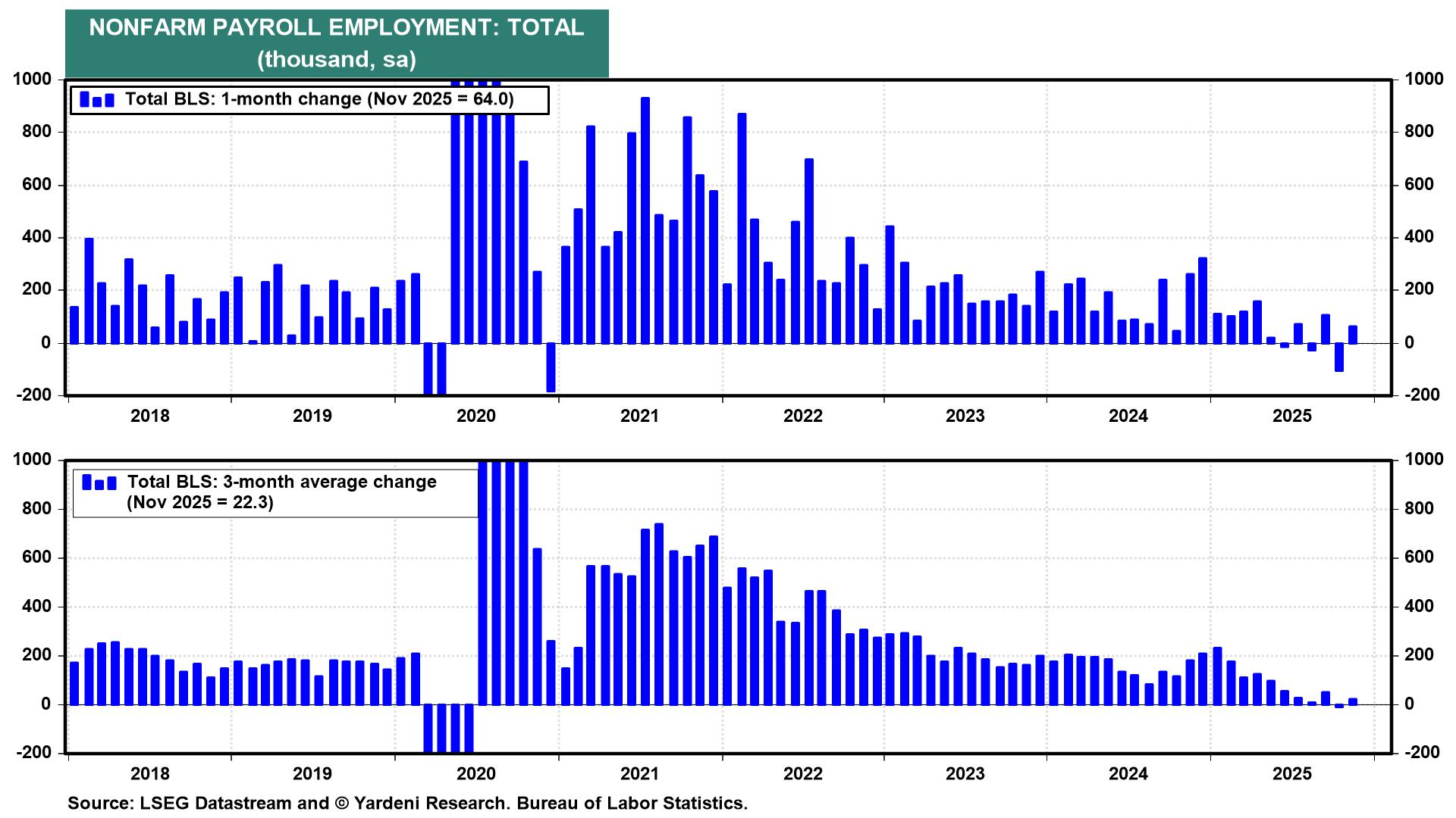While some of these applications may be for single-person businesses, applications for businesses that the Census Bureau deems to have a high propensity to hire paid employees surged to a near-record high in November (Fig. 9). The Birth/Death adjustment could very well support our expectation for the three-month gain in payroll employment to increase to 200,000 by January's employment report.