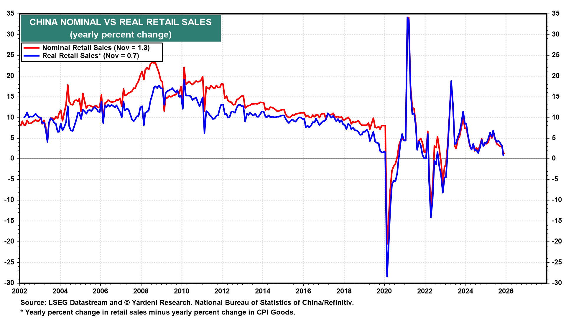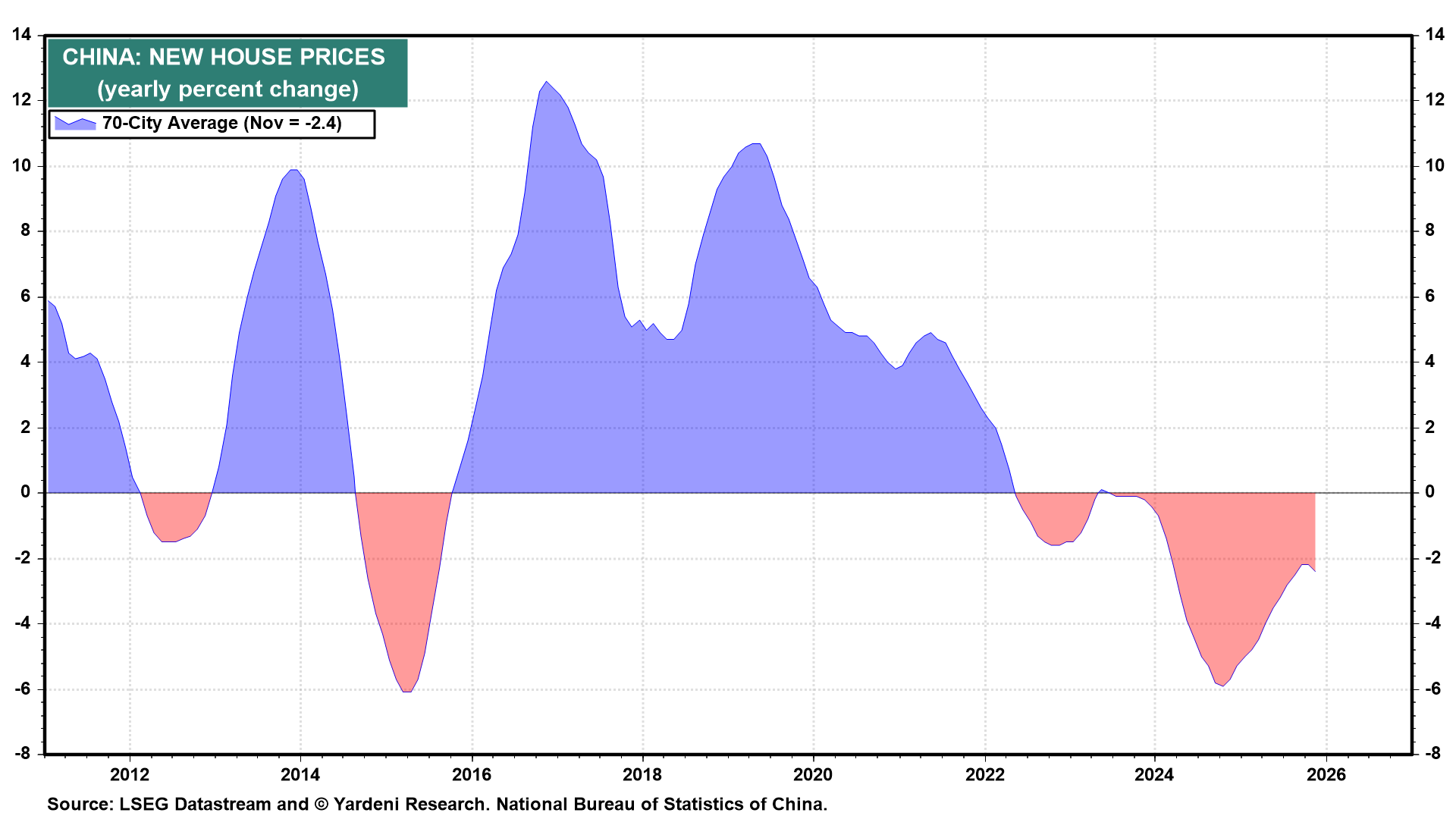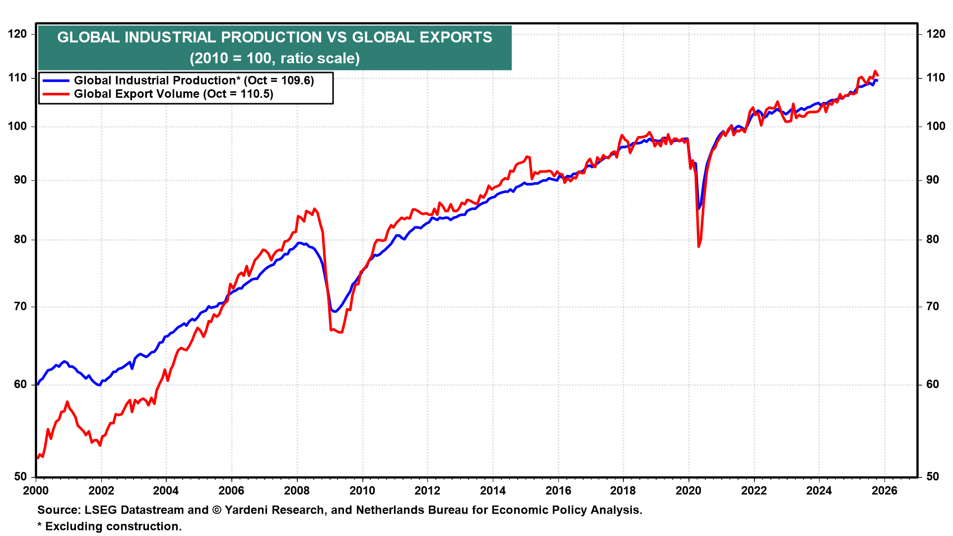 (1) Carveouts galore. Recent weeks saw fresh headlines about carveouts and delays. On New Year’s Eve, a Trump executive order delayed a planned increase in the import tax on kitchen cabinets from 25% to 50% until January 1, 2027. Import duties on upholstered furniture also received a reprieve from plans to increase tariffs from 25% to 30%. The news calmed nerves in China and Vietnam. Italy got calming news too: The Commerce Department is scaling back planned tariffs on 13 pasta makers.